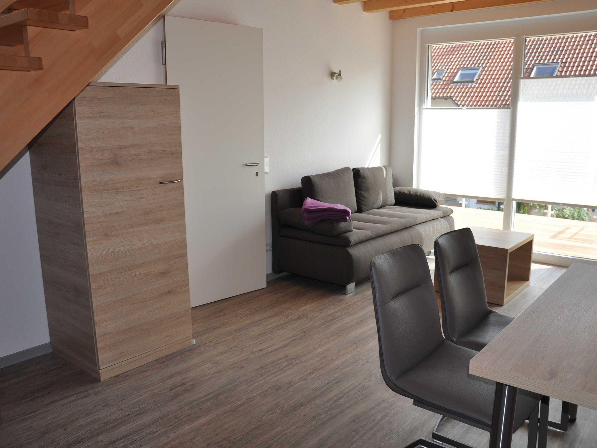 Die Ferienwohnung Trollinger verfügt über eine Küche mit offenem Wohnzimmer und einem zusätzlichem Schlafsofa. Für einen erholsamen Schlaf steht ein Doppelbett mit einer Größe von 2x2 m bereit, ein zusätzliches Schlafzimmer mit zwei Einzelbetten steht auch zur Verfügung. Die hochwertige Küche mit Herd, Backofen, Mikrowelle, Kühlschrank und Spülmaschine lädt zum Kochen ein. Im Sommer genießen Sie Ihre Speisen und den Wein aus dem HeilbronnerLand auf der Terrasse.