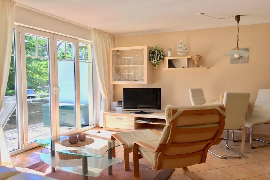 Unsere Ferienwohnung "Meeresbrise" liegt direkt an einem der schönsten Strände auf der Insel Rügen! Von der Ferienwohnung aus können Sie bequem zu Fuß den Strand erreichen und dort die Sonne genießen, im Meer schwimmen oder lange Spaziergänge entlang der Küste unternehmen. Auch zahlreiche Restaurants, Cafés und Einkaufsmöglichkeiten befinden sich in unmittelbarer Nähe. Lassen Sie ihr Auto einfach in der Tiefgarage stehen und erkunden Sie die Gegend. Zwei Fahrräder stehen zur kostenfreien Benutzung bereit. Die Ferienwohnung Meeresbrise ist somit eine perfekte Wahl für einen erholsamen Urlaub in Baabe direkt an der Ostsee. Eine Komplettausstattung sowie zwei große Balkone in herrlicher Süd- und Westlage sorgen für einen angenehmen Aufenthalt.