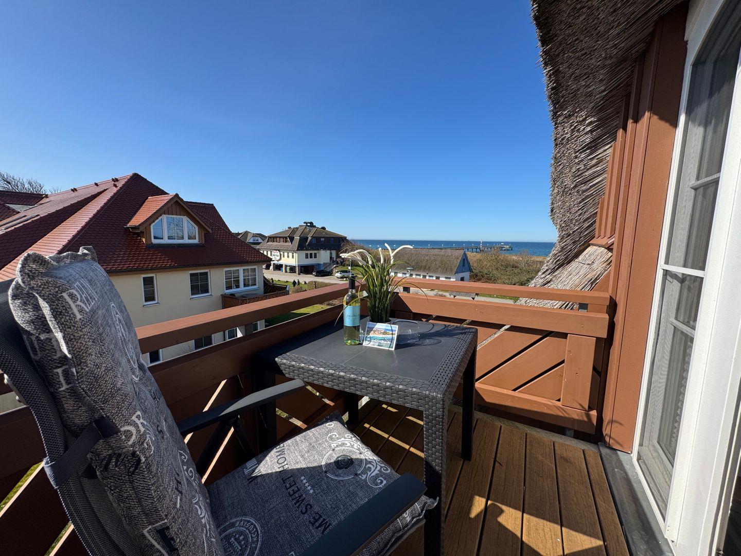 Kleine Ferienwohnung unter Reet mit Balkon und Ostseeblick