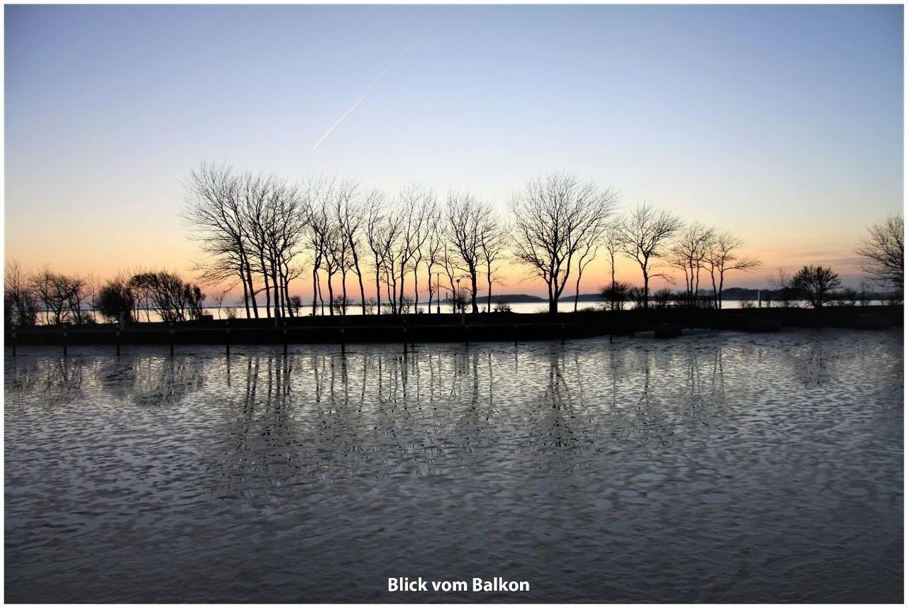 Hafenblick Orth: Modernes Apartment mit gutem Meerblick, Balkon und Fitnessraum