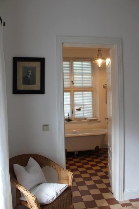 Die Ferienwohnung hat drei Zimmer auf rund 85 qm und ist ausgestattet mit vielen Möbeln aus der Epoche.
