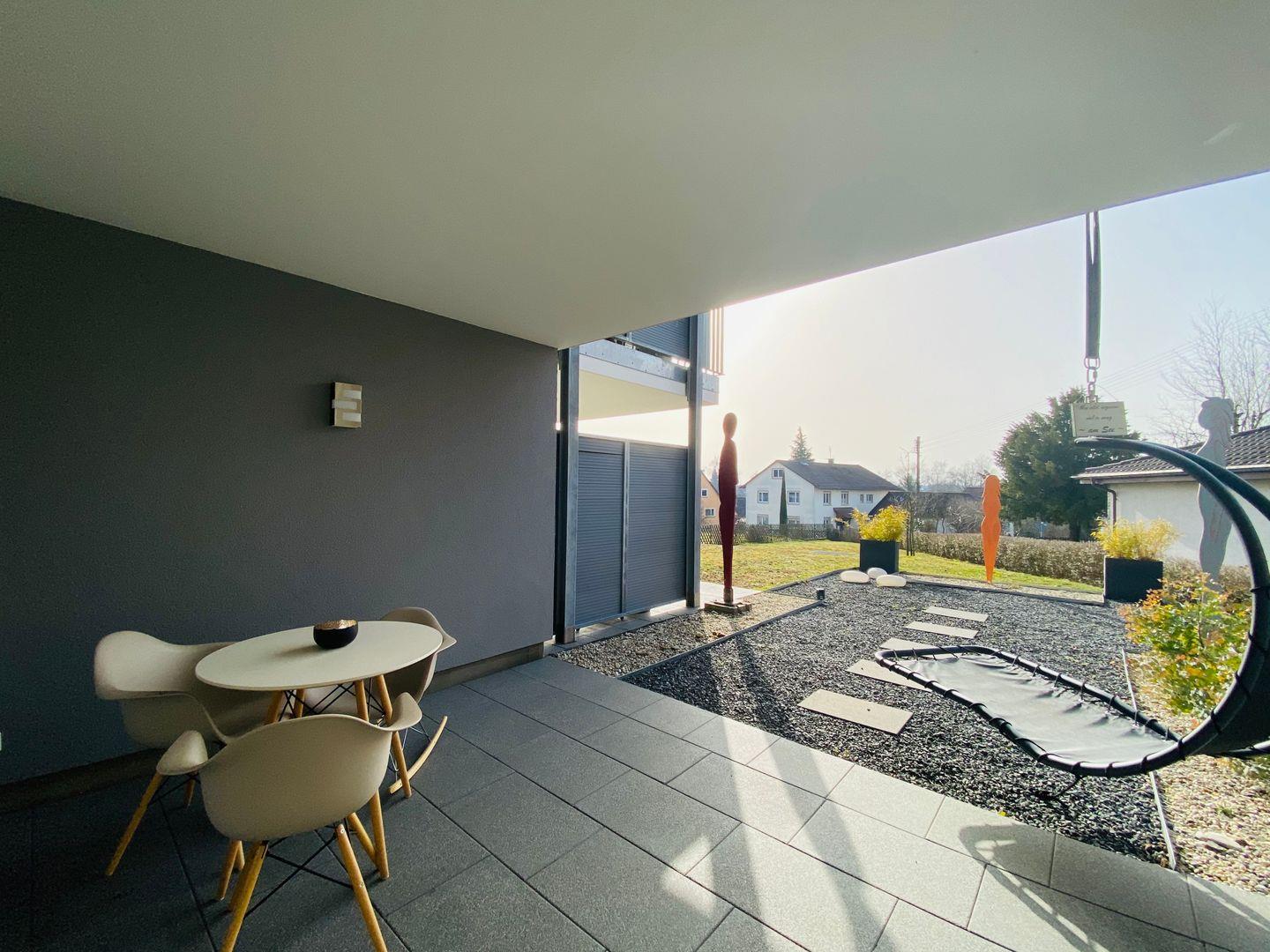 Die Wohnung bietet einen PKW-Stellplatz und befindet sich im Erdgeschoss eines neu errichteten Mehrfamilienhauses in Owingen, etwa 7 Kilometer von Überlingen entfernt. Dieses beschauliche Dorf, eines der ältesten im Linzgau, bietet nicht nur einen Ort für entspannten Urlaub, sondern auch für Golfer und Naturfreunde. Mit dem Fahrrad gelangen Sie schnell nach Überlingen und somit direkt an den Bodensee.