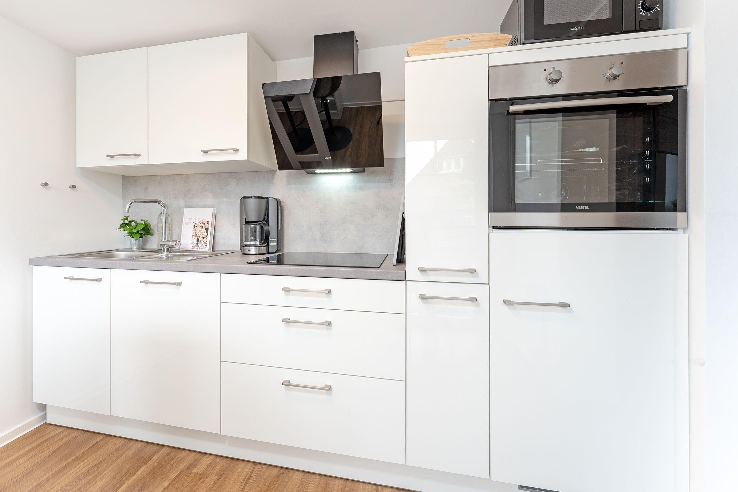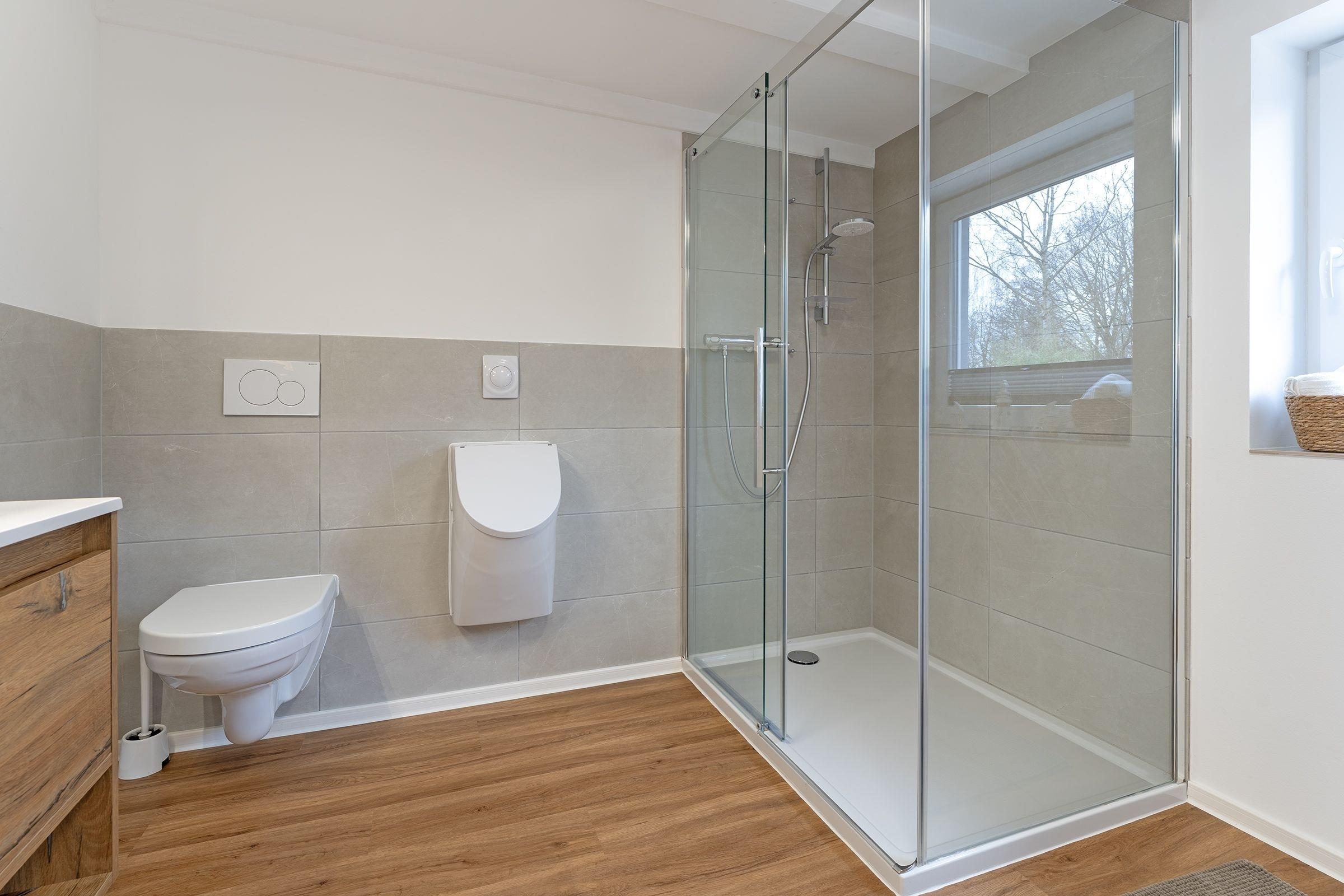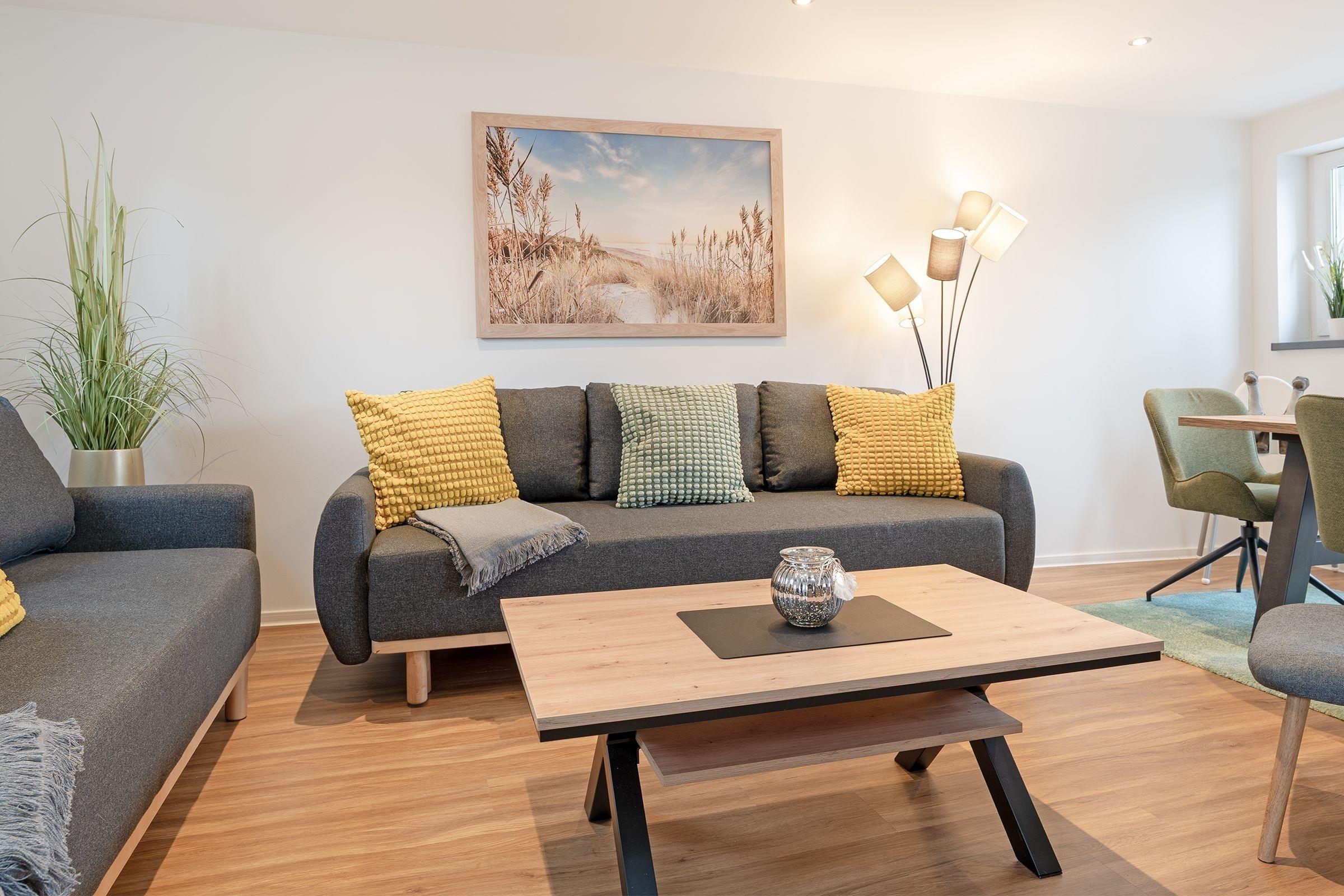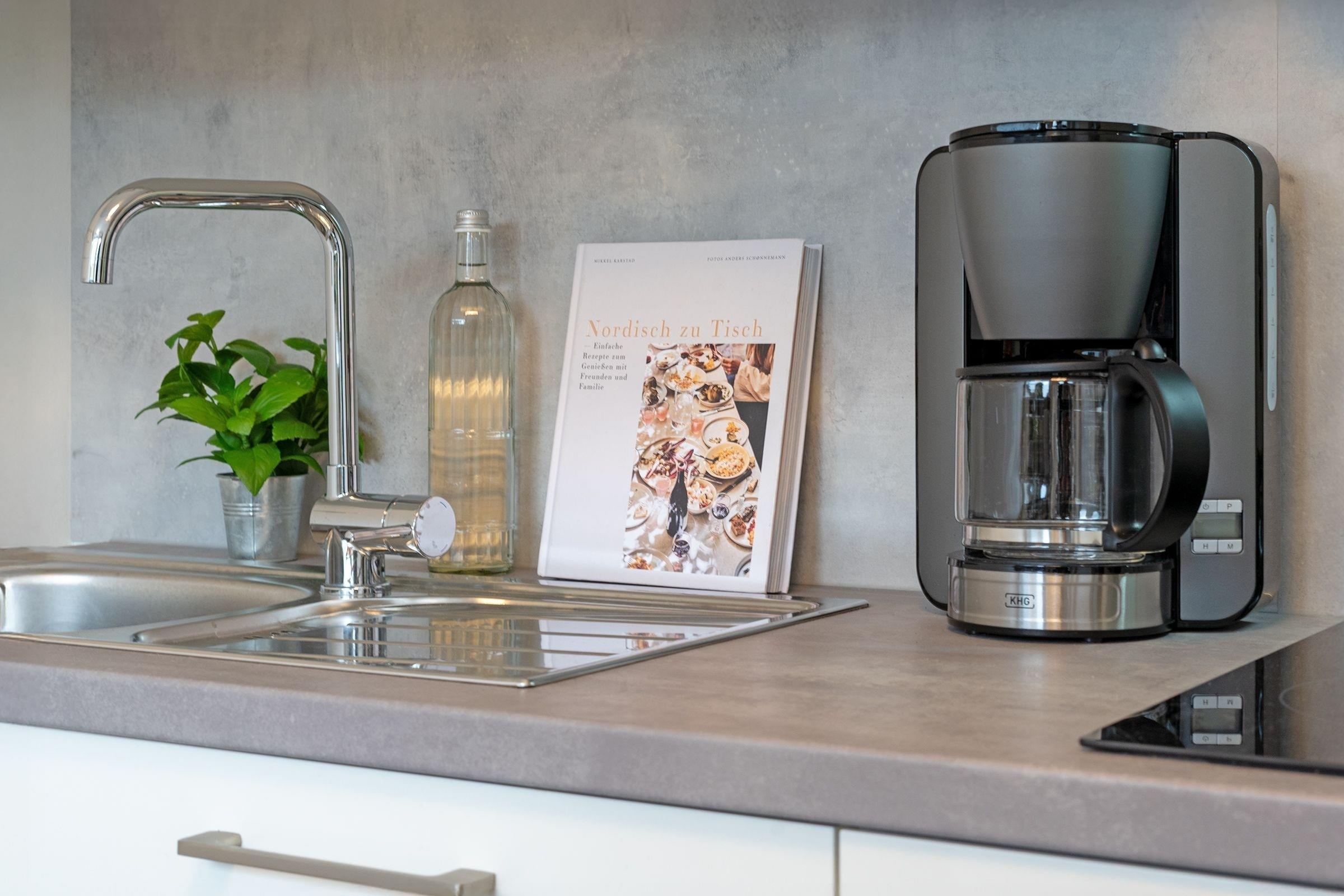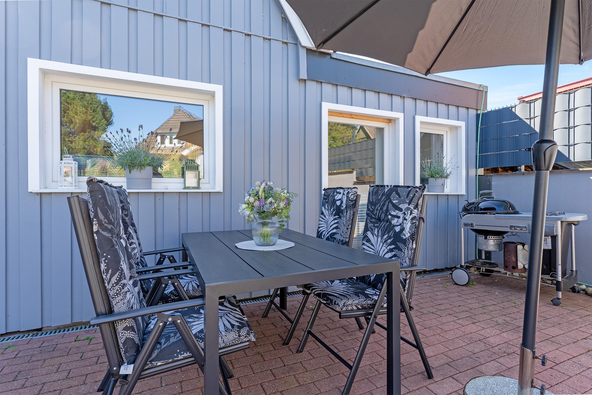 Willkommen in Ihrem Feriendomizil an der schönen Ostseeküste Schleswig-Holsteins! Dieses geschmackvoll eingerichtete Ferienhaus bietet Ihnen eine ideale Ausgangslage für erholsame Urlaubstage am Meer. Genießen Sie die frische Meeresbrise auf der Terrasse, die nach Nordwesten ausgerichtet ist und mit Gartenmöbeln und Grill ausgestattet ist – perfekt für entspannte Stunden an der frischen Luft. Der individuell gestaltete Wohnbereich empfängt Sie mit einer gemütlichen Atmosphäre. Kuschelige Sitzmöbel laden zum Entspannen ein. Das Sofa kann mit wenigen Handgriffen in einen Schlafplatz für zwei Personen (ca. 140x200cm) verwandelt werden. Die offene Küche grenzt direkt an den Wohnbereich und bietet Ihnen alles, was Sie für die Zubereitung köstlicher Mahlzeiten benötigen. Die moderne, zeitlose Ausstattung wird Sie begeistern. Das kuschelige Schlafzimmer erreichen Sie über eine kleine Treppe und sorgt mit seinen Dachschrägen für Behaglichkeit. Hier können Sie in einem komfortablen Doppelbett (2x 90x200cm) erholsame Nächte verbringen. Das großzügige Tageslichtbad im Erdgeschoss ist mit einer großen Dusche ausgestattet und bietet den Komfort, den man sich im Urlaub wünscht.