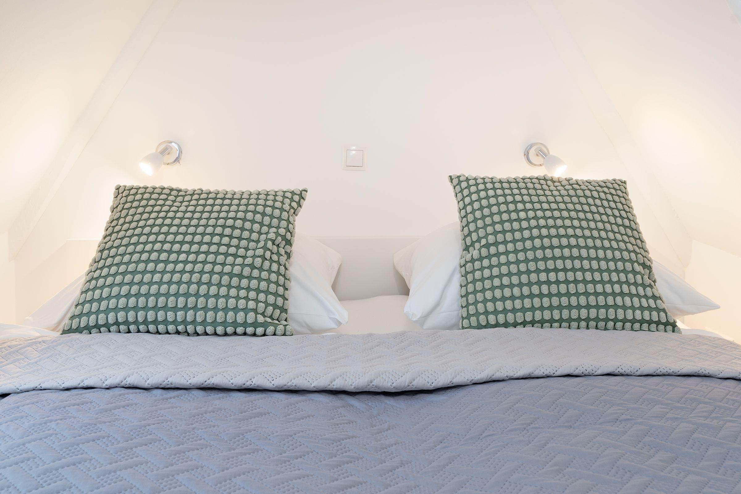 Schlafzimmer: Doppelbett (2x 90x200cm), Verdunkelung: Plissees, Platz für Kinderreisebett vorhanden