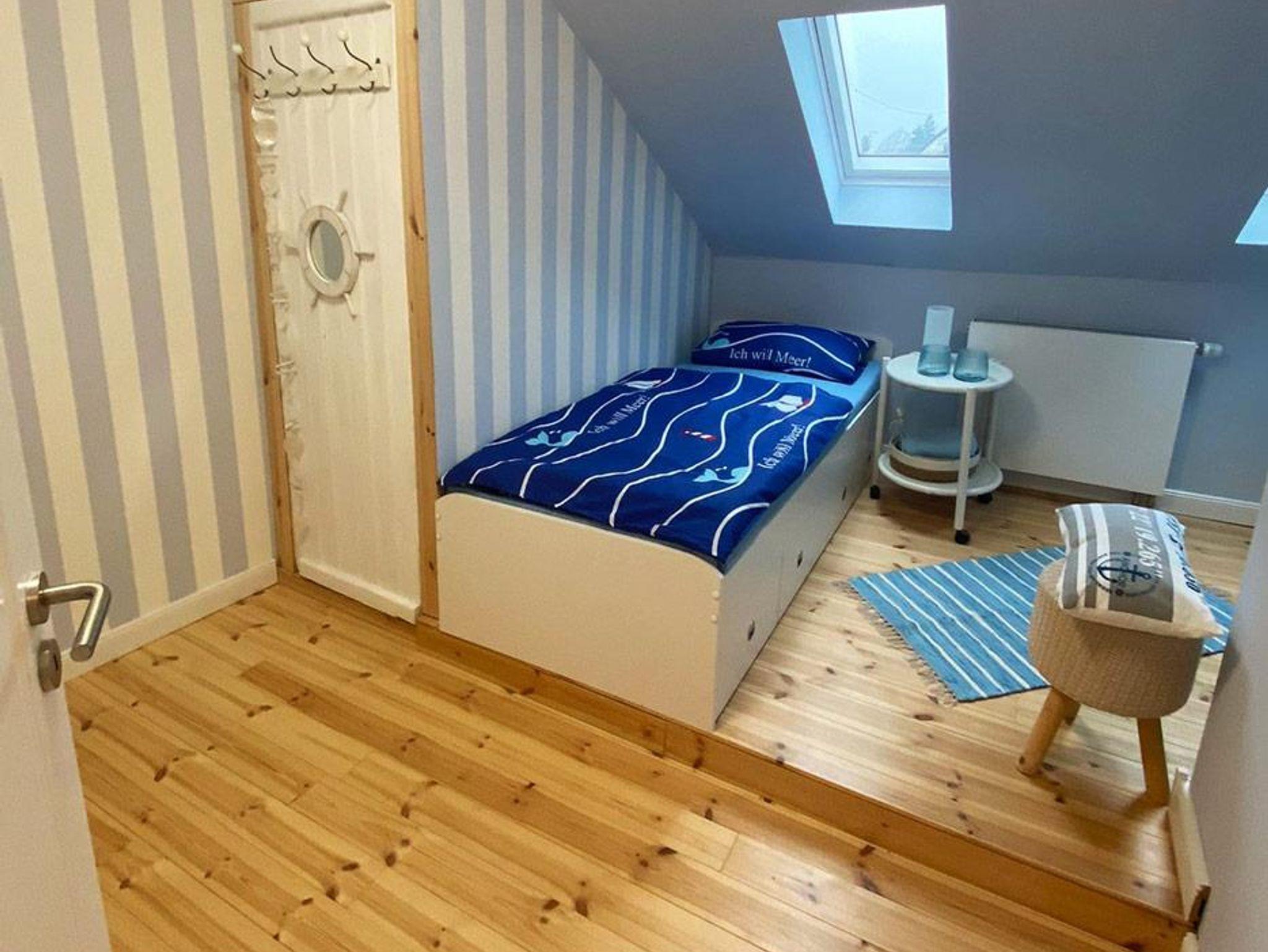 OG: ein weiteres Bad mit Dusche/WC. Drei Schlafzimmer (Ein Bett 1,80 x 2,00 m, ein Bett 1,60 x 2,00 m und zwei Einzelbetten 0,90 x 2,00 m mit TV).