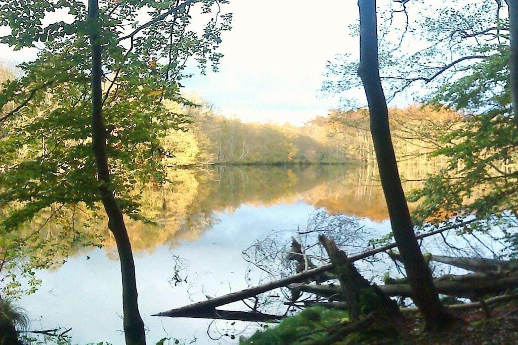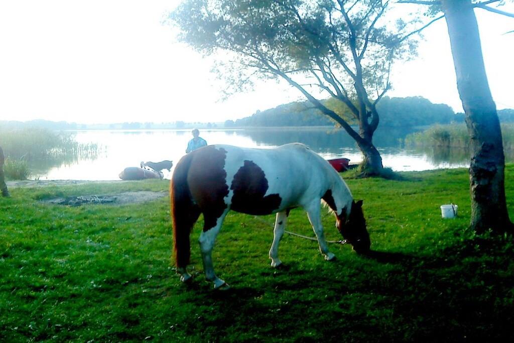 Our holiday apartment is 34 m² and suitable for two people. It features a combined living room and kitchen (TV, radio) including a sofa bed, a kitchenette (two-burner induction cooktop, refrigerator, coffee maker, toaster, kettle, dishes), a bedroom with a double bed, and a bathroom with shower and toilet. You can enjoy the sunset on the terrace or in the garden, which also has a ping-pong table. A barbecue grill is available for our guests to enjoy pleasant evenings outdoors. Bicycles for our guests of all ages, as well as the boats on the large Präßnicksee lake, are available for free use. The lake is about a 10-minute walk away and is perfect for swimming and fishing.