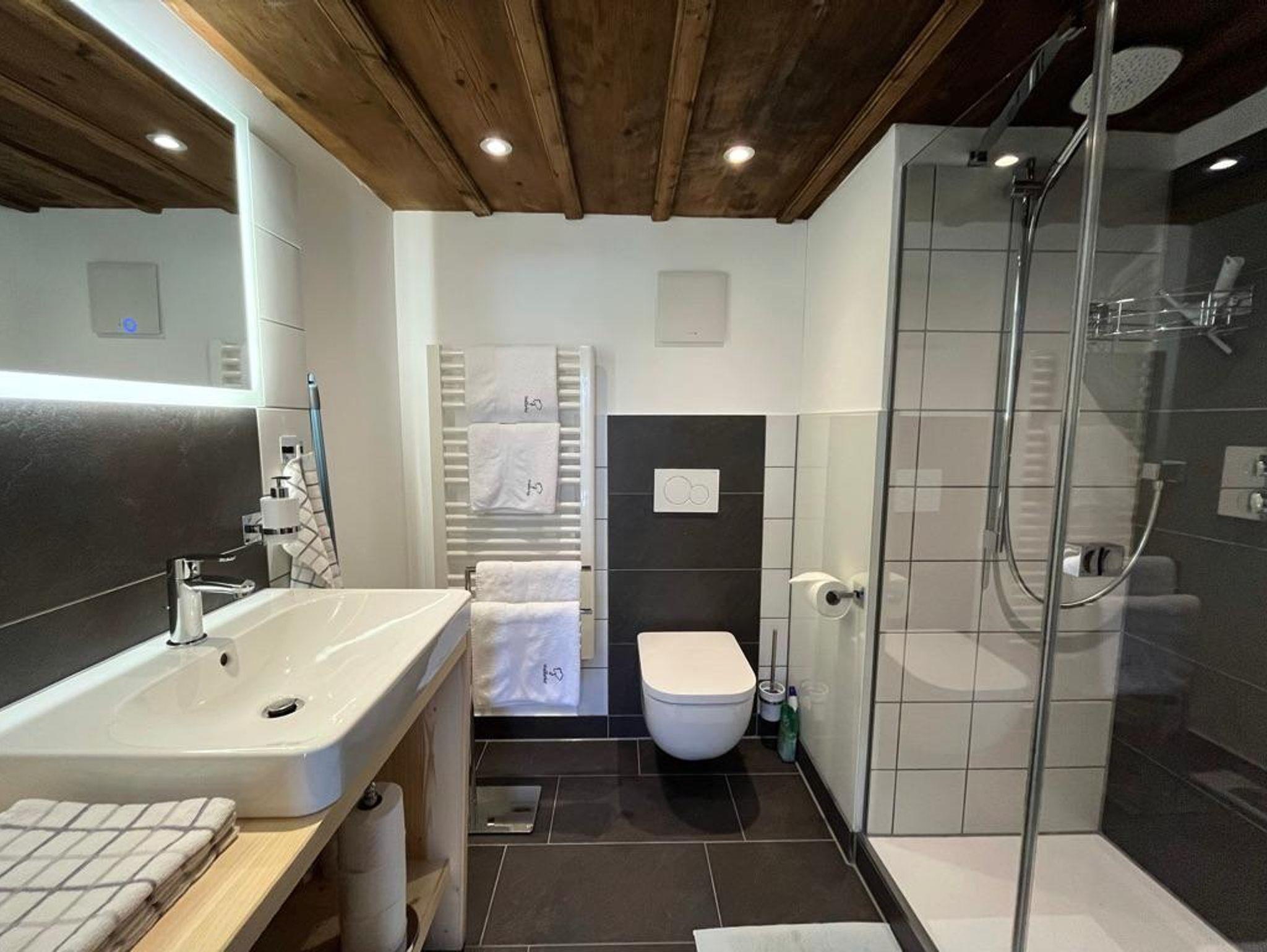 In dieser Ferienwohnung lädt eine große Couch im Wohnzimmer zum gemütlichen Fernsehabend ein. Die beiden großen Doppelbetten (200×200/180×200) sorgen für erholsamen Schlaf und den richtigen Start in den Tag. Die Küche ist vollausgestattet mit hochwertigen Küchengeräten (Ofen, Geschirrspüler, Kaffeemaschine, Toaster, Wasserkocher). Das Bad ist in modernem Design gehalten und bietet eine Dusche.