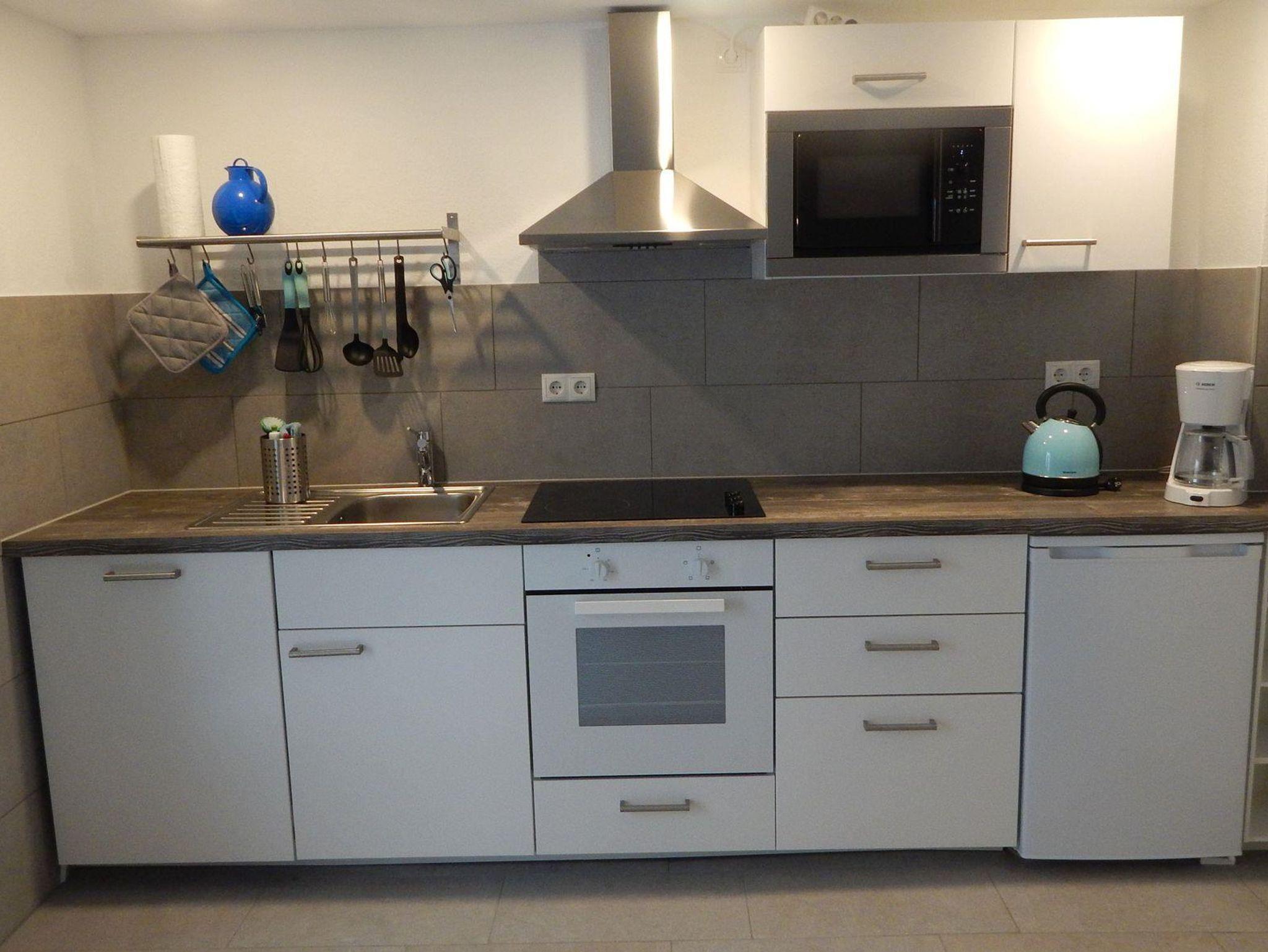 Einbauküche, Ceranfeld, Ofen, Mikrowelle, Dunstabzug, Wasserkocher, Kaffeemaschine, Spühlmaschine, Kühlschrank, Waschmaschine