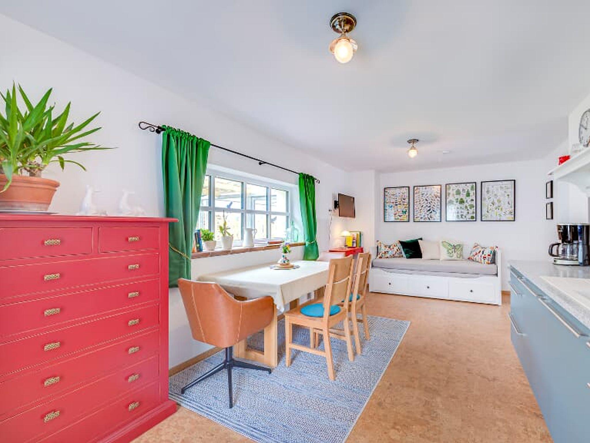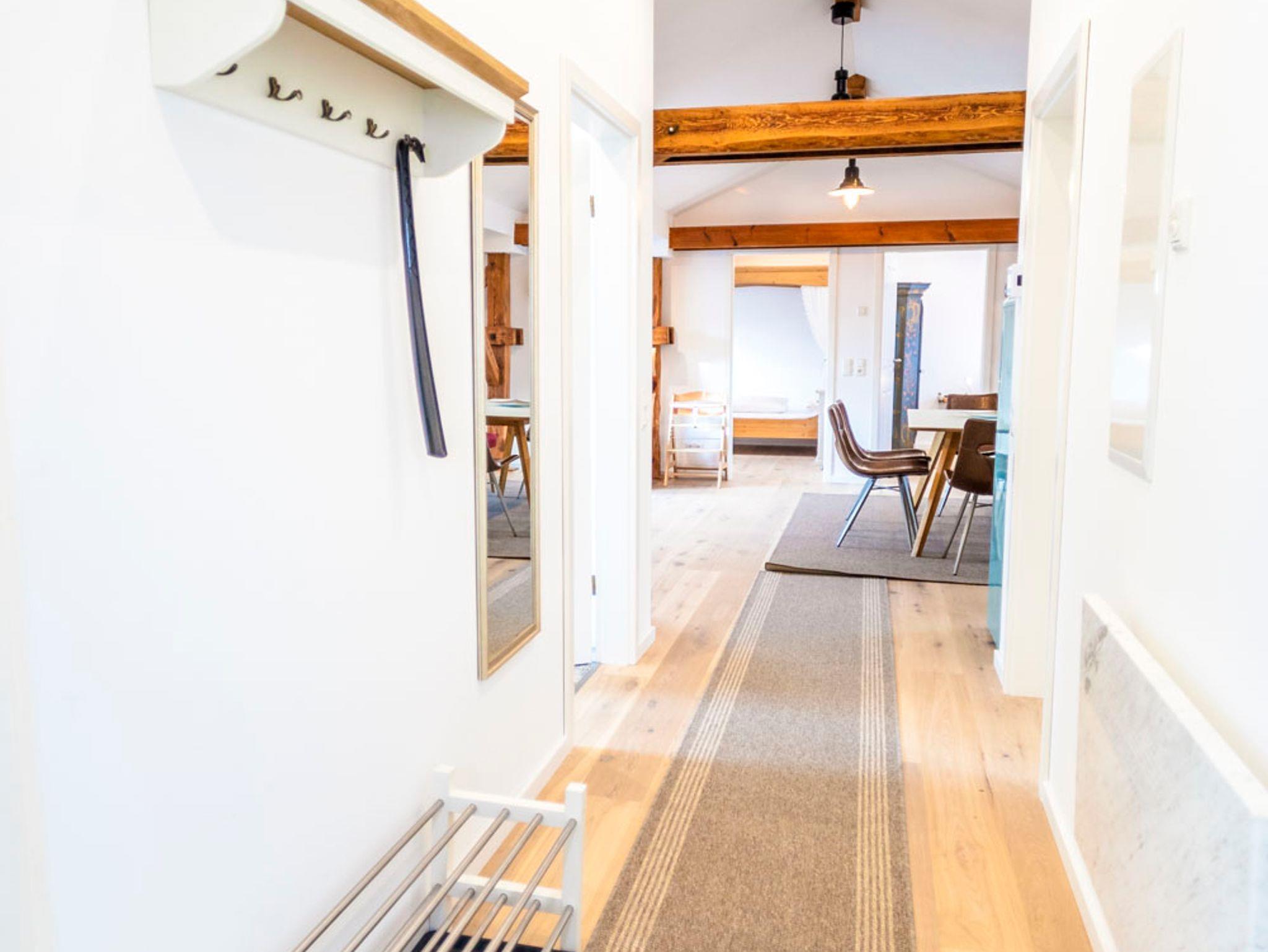 Im Jahr 2019 ist im ehemaligen Getreidelager die große Ferienwohnung Eiche entstanden. Über eine separate Eingangstreppe mit angrenzendem, großzügigen Balkon, gelangen Sie in eine optisch offen gehaltene Wohnung. Es erwarten Sie hier 3 Schlafzimmer, ein Bad mit freistehender Emailbadewanne und Dusche, separaten WC mit Waschmaschine, sowie eine komplett eingerichtete Küche mit großem Esstisch und angrenzendem, gemütlichen Wohnbereich.