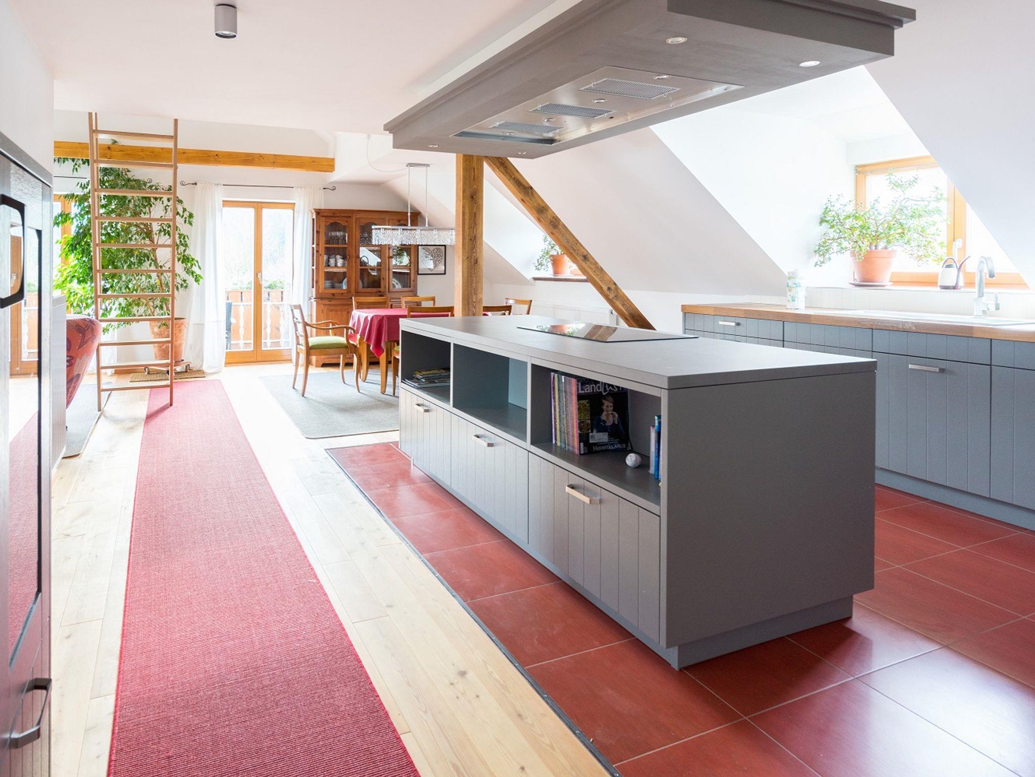 Die erste von unseren Ferienwohnungen wurde 2015 unter dem Dach des Bauernhauses fertiggestellt. Auf 86 qm erwarten Sie 2 Schlafzimmer, ein offener Wohn- und Eßbereich mit Gallerie, sowie eine Küche mit Kochinsel, die kaum Wünsche offen lassen kann. Das Bad lädt mit einer Lärchenholzbadewanne zu Ruhe und Entspannung ein. Vom Balkon schweift ihr Blick auf Wald und das Pfreimdtal. Seit 2018 ist die Wohnung mit 4 Sternen vom Deutschen Tourismusverband ausgezeichnet.