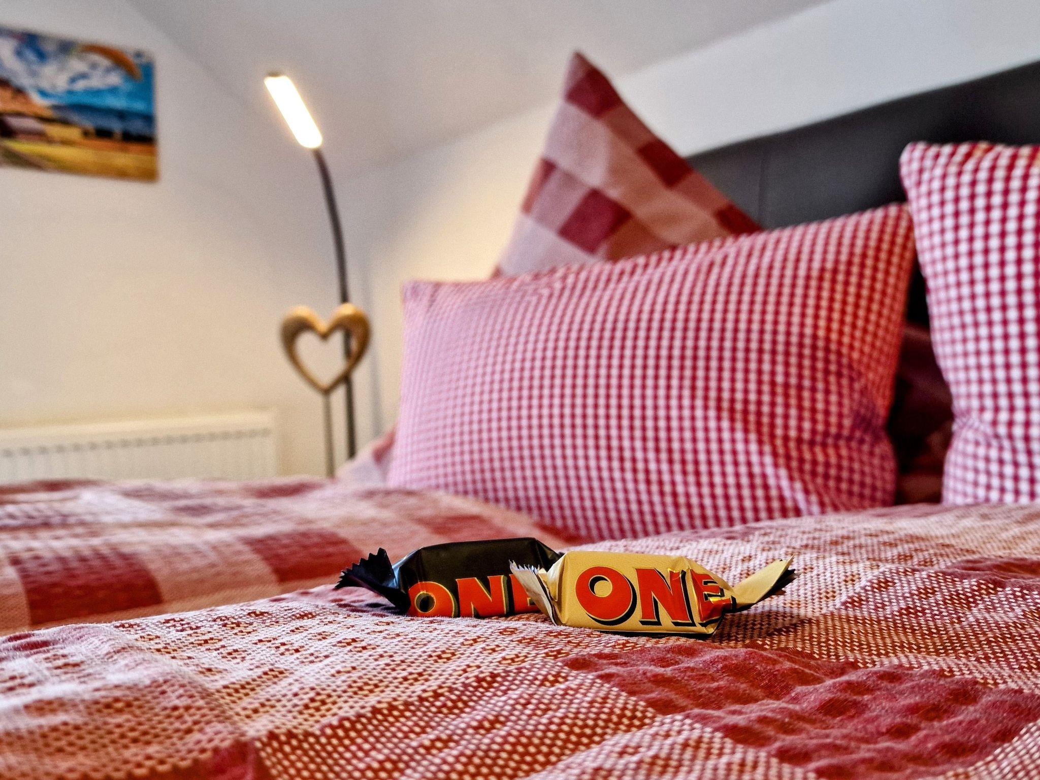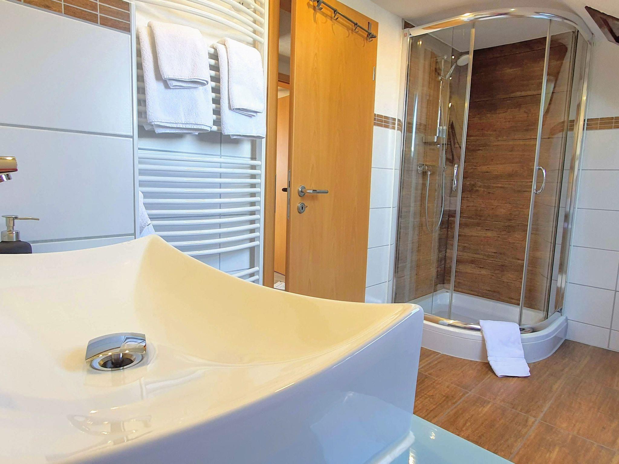 Inside, you will find a cosily furnished holiday flat with two bedrooms, each with a smart flat-screen TV. An additional baby cot is available for the youngest guests. The living room is furnished with a large, comfortable sofa, another Smart flat-screen TV and a kitchenette with dining area, ideal for shared meals. Self-caterers will appreciate the well-equipped kitchen. The spacious bathroom has two skylights, a round shower with shower master and a washing machine, alongside a separate WC for your convenience.