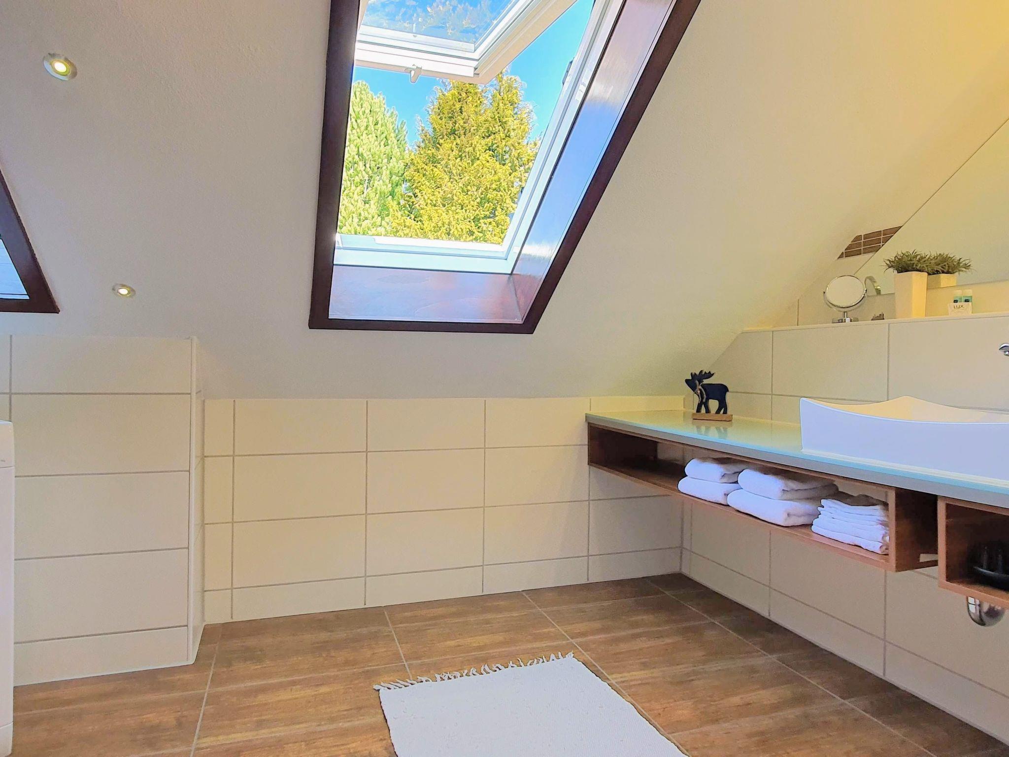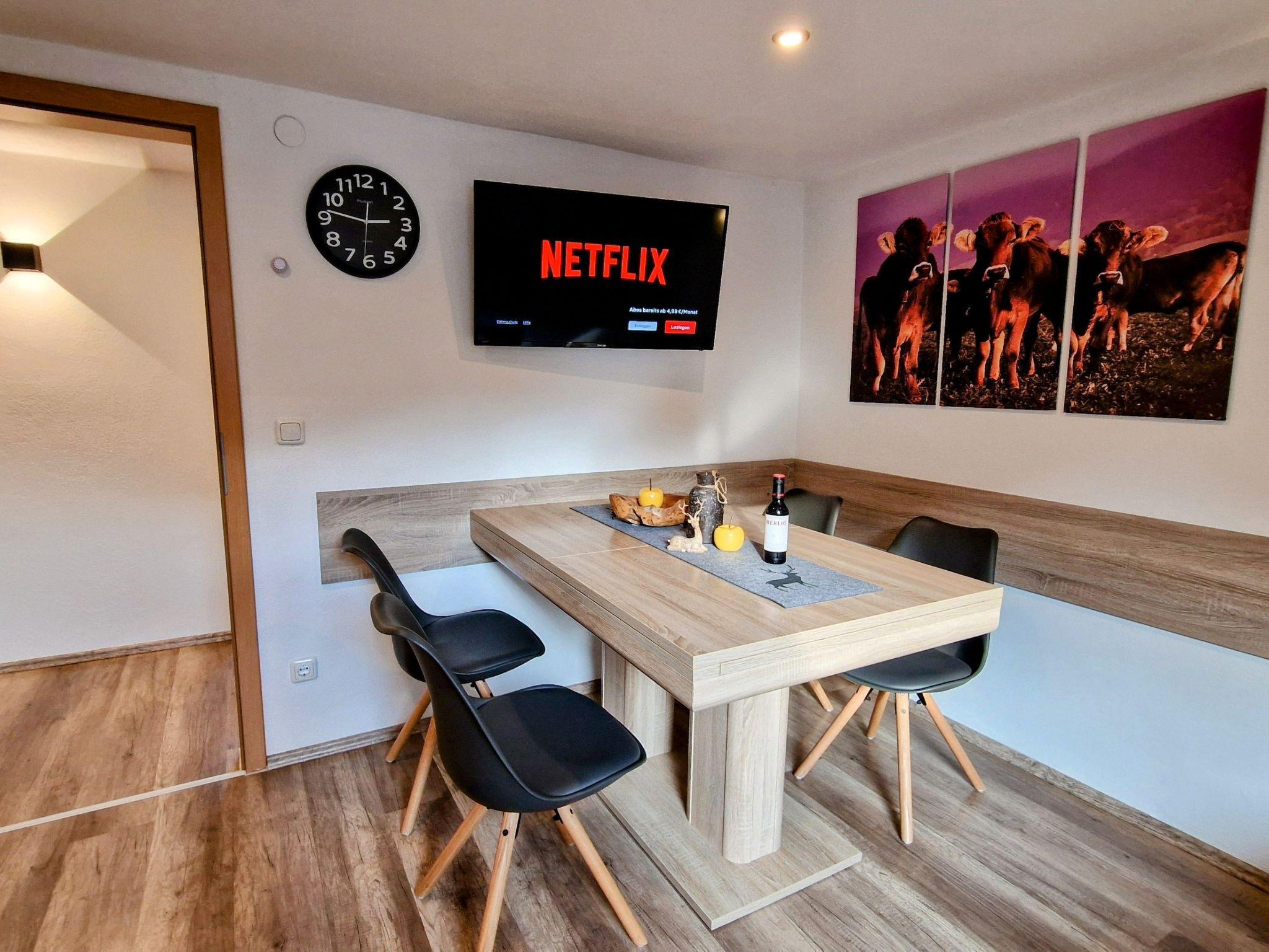 The "Falkenstein" holiday flat benefits from its fantastic location with panoramic skylights offering views of the Breitenberg, Kienberg, Falkenstein and other majestic peaks. Although quiet and sunny, the flat is centrally located with short distances to the mountain railways (10 minutes), the cross-country ski trail just around the corner and the centre, which is only a 5-minute walk away. There you will find the railway station, bus stop, bakeries, doctors, pharmacies and shopping facilities.