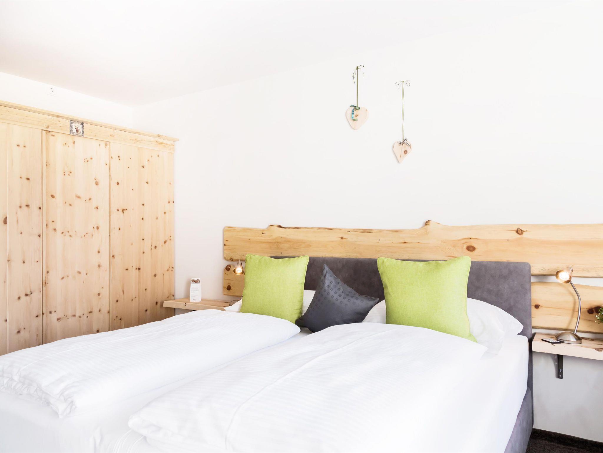 Moderne Wohnkultur mit traditionellem Alpencharme machen diese Ferienwohnung für zwei Personen (weitere Personen auf Anfrage) zur perfekten Heimat auf Zeit. Für Sie und Ihre Lieben legen wir höchsten Wert auf eine komfortable Ausstattung. Die wildgrünen Zirbenholzelemente, das hochwertige Boxspringbett, die moderne Küche und natürliche, alpenländische Dekoration sorgen für die einzigartige Wohlfühlathmosphäre die unsere Gäste so schätzen.