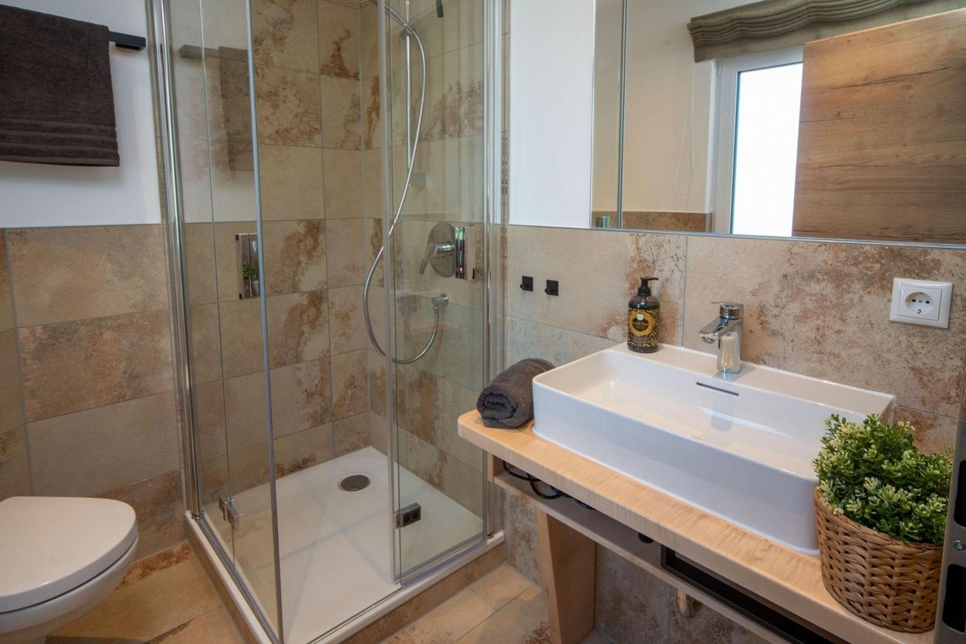 Im Vorderhaus ist eine Hundedusche für Vierbeiner installiert. In nächster Nähe befinden sich tolle Spazierwege und zum Haus gehört auch ein Hang mit großer Wiese.