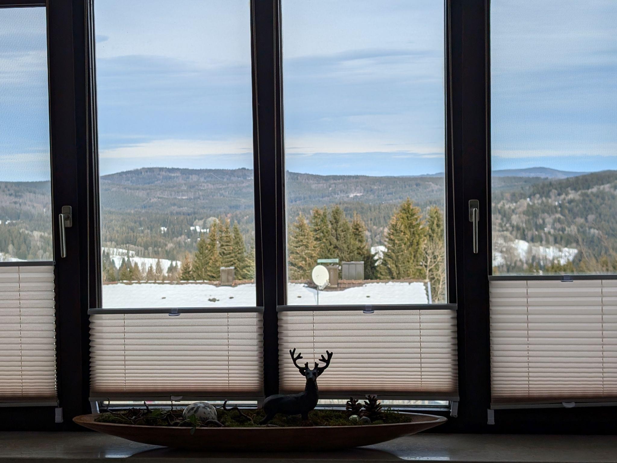 Der Balkon wurde mit einem natürlichen Belag aus Thermoesche versehen, der im Sommer auch zum Barfußgehen einlädt. Zwei Ropestühle bieten die Möglichkeit den Blick in die unberührte Ferne der Tschechei schweifen zu lassen.
