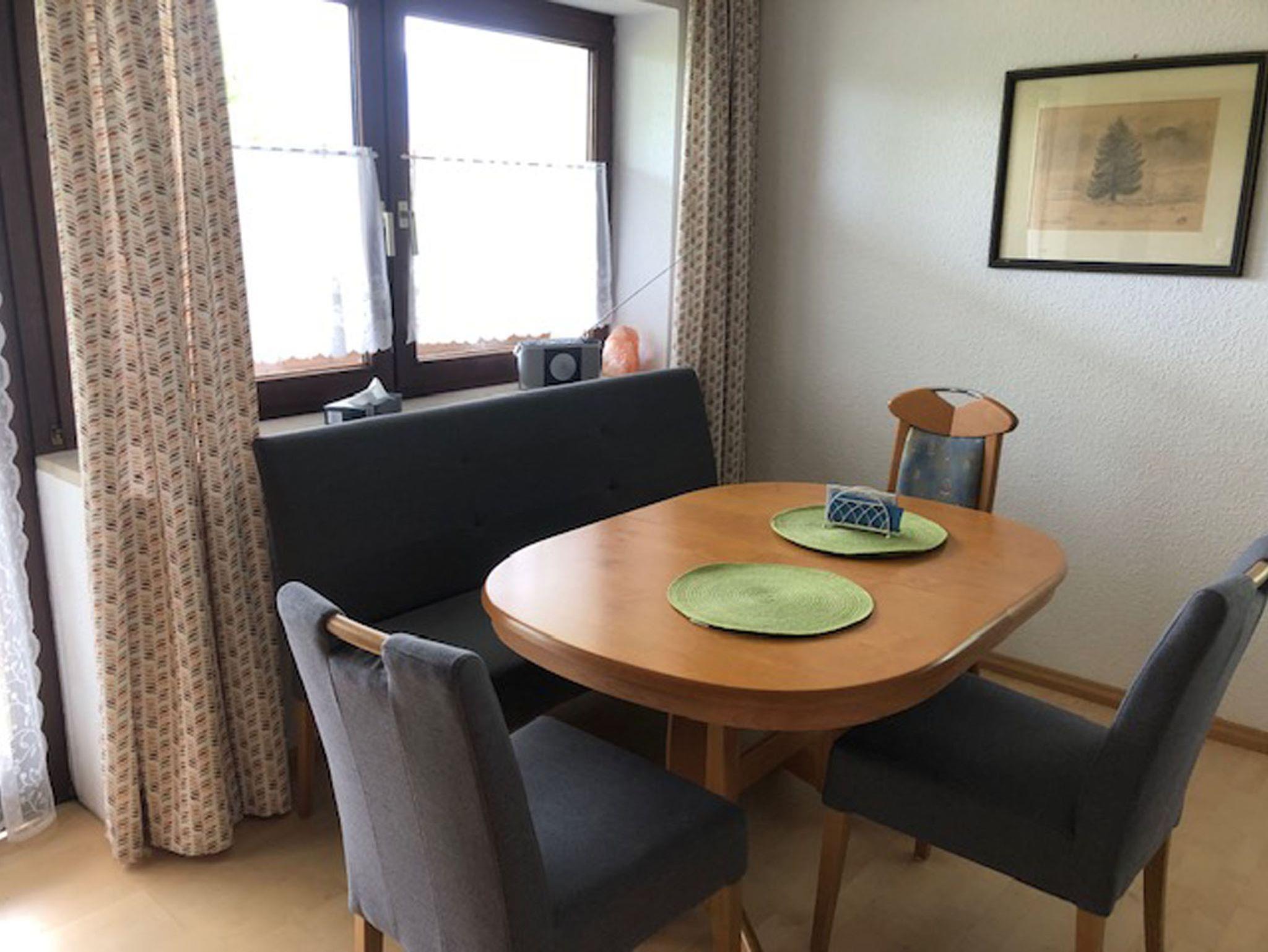 Erholen sie sich in unserer gemütlich eingerichteten Ferienwohnung für 1 - 3 Personen in ruhiger zentraler Lage. Die Ferienwohnung verfügt über ein geräumiges sonniges Wohnzimmer mit Esstisch und Tür zum Balkon, einer neuen Einbauküche gut ausgestattet mit Küchenutensilien, sowie Kaffeemaschine, Wasserkocher, Toaster, Mikrowelle, Geschirrspüler , großen Gefrier- und Kühlschrank, ein Doppelzimmer mit großem Schrank und Tür zum Balkon, sowie ein Einzelzimmer mit Sideboard und Schreibtisch. Im Bad steht Ihnen eine große Duschwanne, Waschmaschine und ein Haartrockner zur Verfügung. Ein großer Balkon mit Süd- und Westausrichtung lädt zum Verweilen ein. Ein Hochstuhl für Kleinkinder kann bereitgestellt werden.