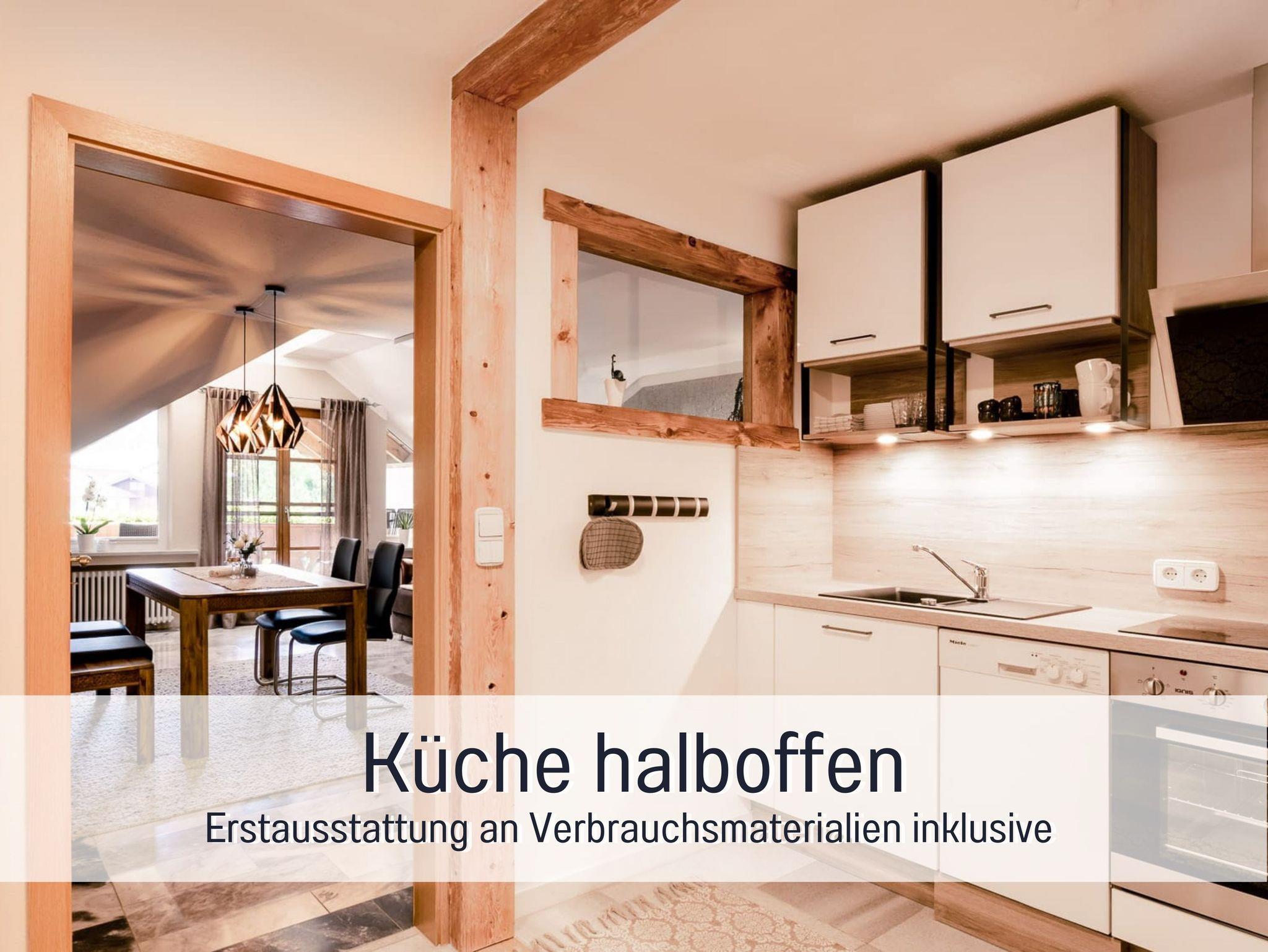 Ferienhaus Bauer in Piding, Fewo Schlossblick, schicke, moderne 5 Sterne 61 m², Küche, Schlafzimmer, Balkon