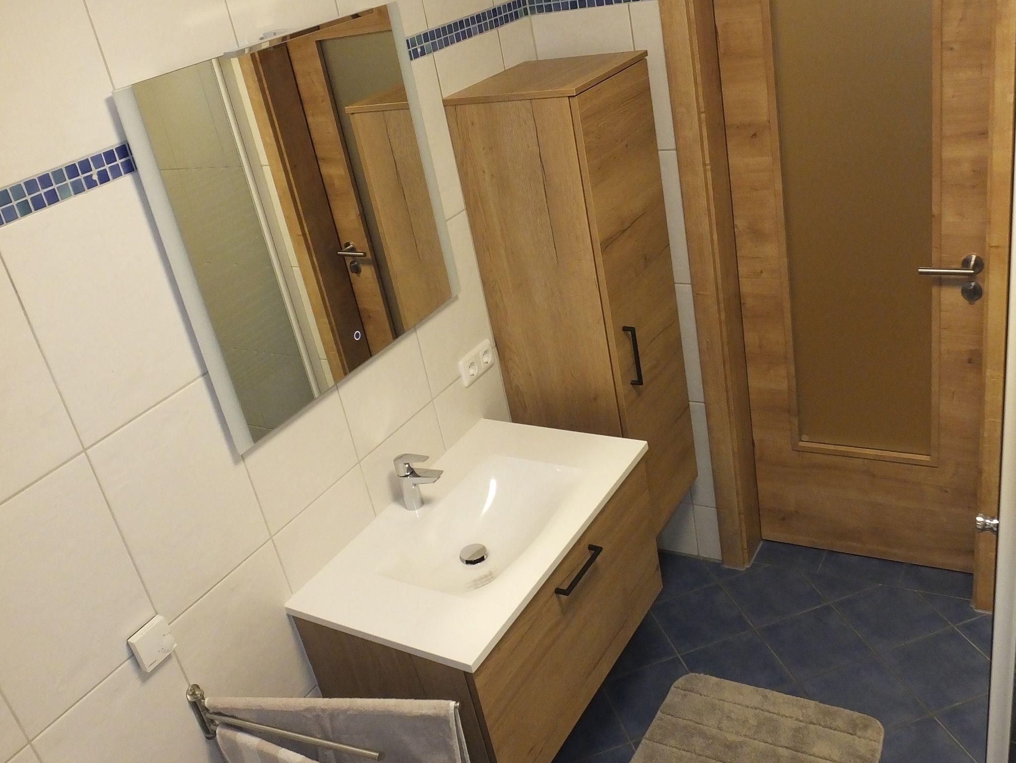 Die Küche ist modern im Holzstil gehalten und komplett ausgestattet, inklusive Spülmaschine, Backofen, Kühlschrank mit Gefrierfach, Tchibo-Kapselmaschine, Filterkaffeemaschine, Toaster und Wasserkocher. Die Schlafzimmer verfügen über Außenrollos und bieten ein Doppelbett mit Einbauschrank bzw. zwei Einzelbetten mit Stauraum. Bettwäsche und Handtücher sind inklusive.