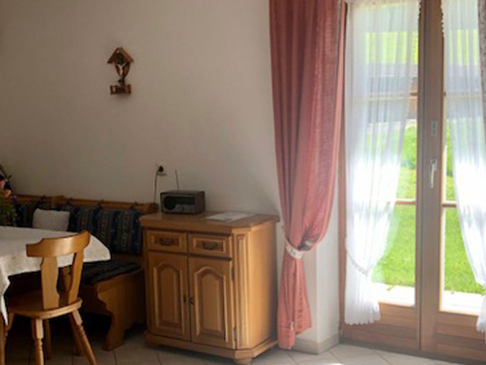 Die gemütlich eingerichtete Ferienwohnung 48 m² für 1 bis 4 Personen im Erdgeschoss besteht aus Wohnküche, Schlafzimmer mit Doppelbett, (Wohn- und Aufenthaltsraum mit Schlafmöglichkeit), Dusche/WC, Kabel-TV, Radio, Münzwaschmaschine im Keller, Herrlicher Blick von der Terrasse auf die schönen Wiesen und das Voralpenland. Hunde willkommen.