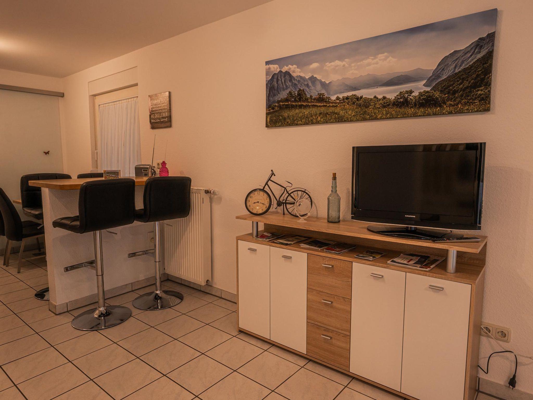 Die komplett geflieste Wohnung umfasst ein Wohnzimmer mit Kochnische, Essbereich und einer erhöhten Bar mit Barhockern – perfekt für entspannte Stunden. Das Schlafzimmer ist mit einem gemütlichen Doppelbett ausgestattet. Das Bad verfügt über eine moderne Dusche und WC. Auf Wunsch kann gegen Gebühr ein Schlafsofa für eine 3. und 4. Person bereitgestellt werden. Haustiere sind herzlich willkommen.