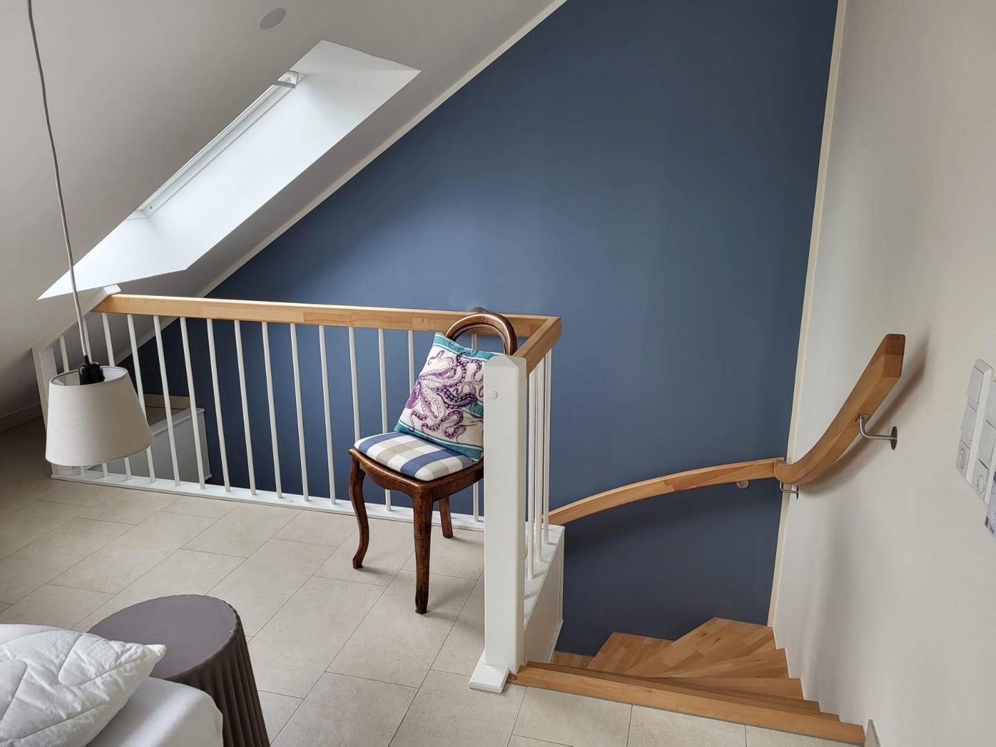 La Maisonette Pilsum ist eine charmante moderne Oberwohnung im neu renovierten Gulfhof Pilsum für 2(3) Personen. Die Wohnung wurde 2022 fertiggestellt. Kommen Sie herein! Vom Flur aus gelangen Sie in den Wohn-/Essbereich mit Küche. Zur linken kommen Sie in den gemütlichen Wohnbereich. Hier können Sie kuschelige Stunden verbringen. Liebevolle Details sorgen für Ihr Wohlsein. Ein Flachbild-TV ist vorhanden. In der Mitte des Raumes befindet sich die schöne moderne Küchenzeile, die alles hat, was der Hobbykoch benötigt, um leckere Speisen zuzubereiten. Gegenüber am Esstisch kann dann diniert und geklönt werden. Die große Fensterfront sorgt für viel Tageslicht. Von hier kommen Sie auf den innenliegenden Balkon, der ein besonderes Flair hat. Hier genießen Sie die Sonnenstrahlen und die Nordseeluft mit Blick ins Grüne. Auf dieser Ebene finden Sie ebenfalls das geräumige helle Duschbad und einen Abstellraum. Über eine Treppe gelangen Sie in den oberen Schlafbereich. Das Doppelbett lädt zum Träumen und Entspannen ein. Auf dieser Etage liegt auch das Gäste-WC. Eine Ausziehcouch im Wohnzimmer bietet Platz für eine weitere Person. WLAN und Stereoanlage sind verfügbar! Ein Parkplatz steht zur Verfügung. An einer Wallbox können Ihre E-Autos gegen Gebühr geladen werden. Zudem gibt es eine Fahrradbox, wo mitgebrachte Fahrräder abgestellt werden können. Ebenfalls können Ihre E-Bikes dort aufgeladen werden.