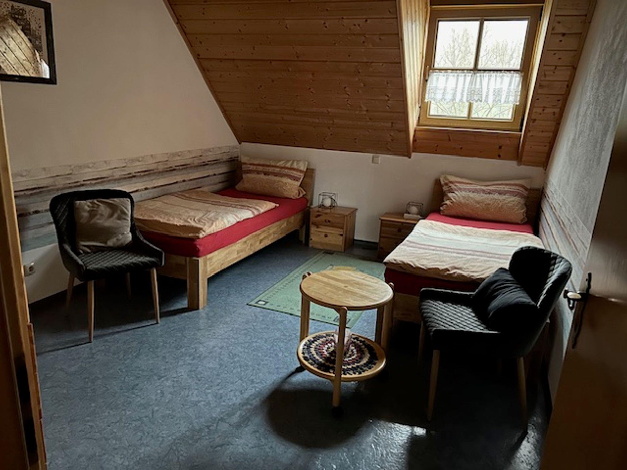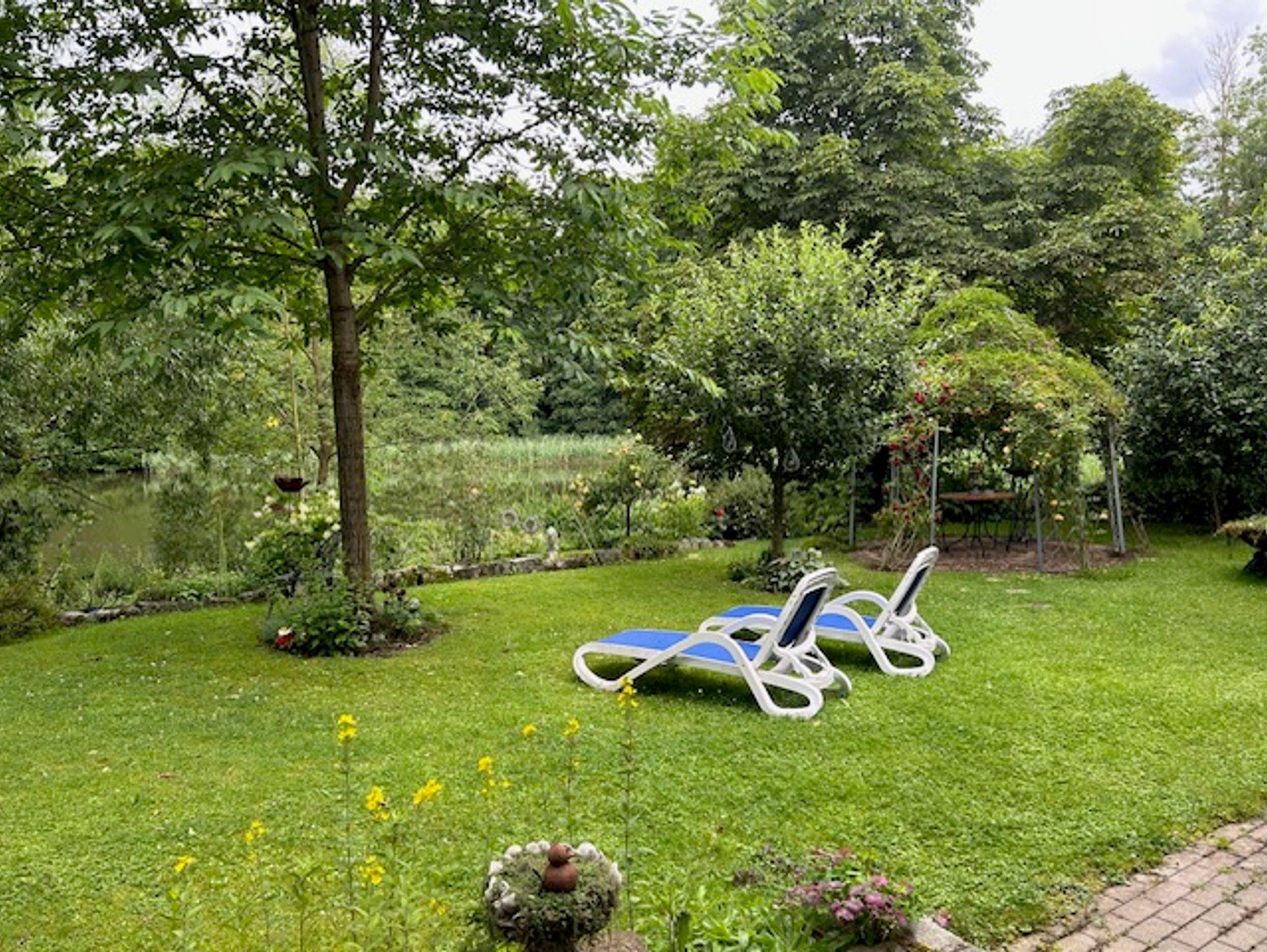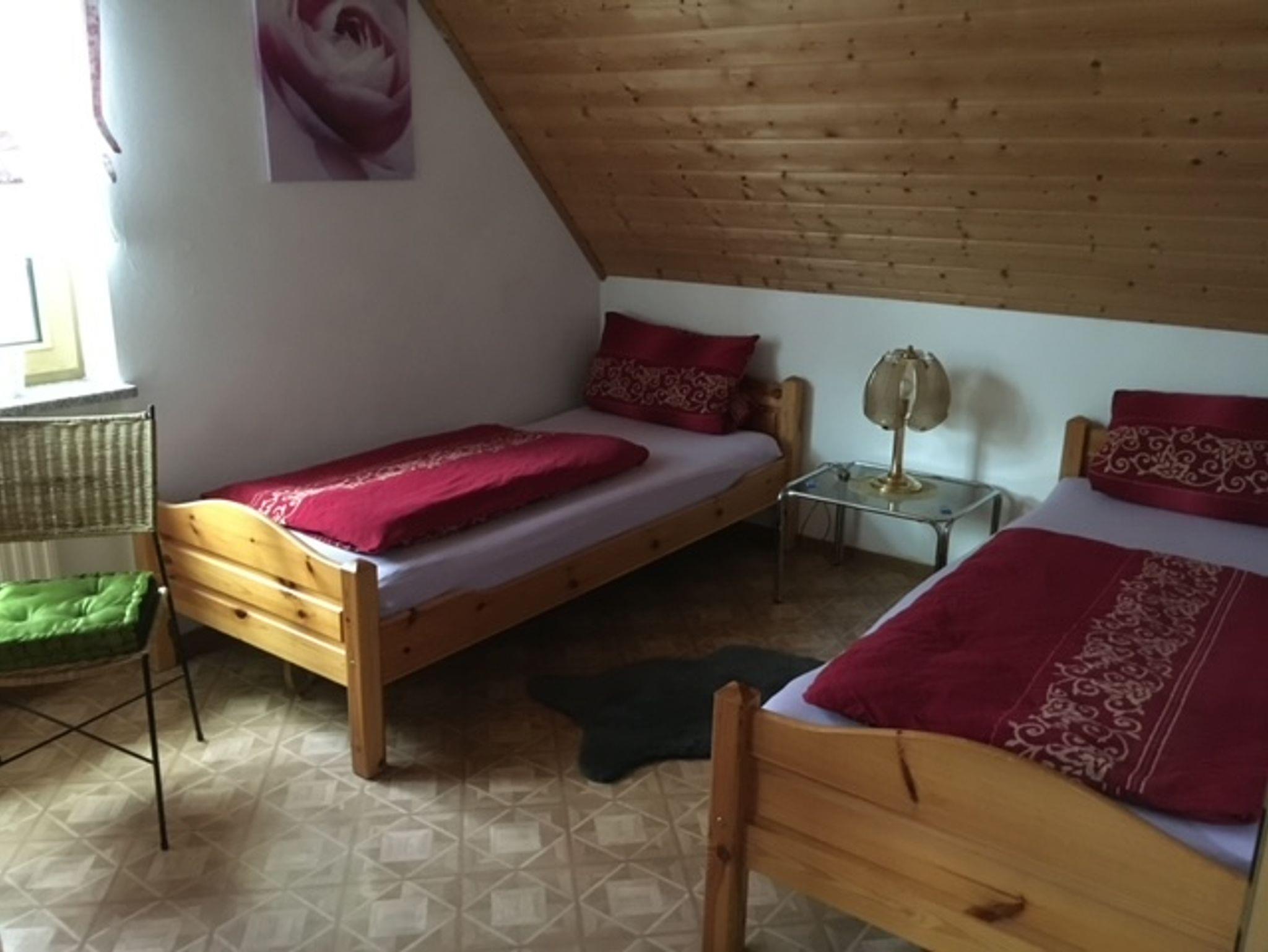 Wir bieten 2 gemütliche Nichtraucher-Ferienwohnungen im 1. Stock unseres Einfamilienhauses. In der idyllischen Dorflage, direkt an einem Weiher. Die Wohnungen sind freundlich, teilweise mit Echtholzmöbeln eingerichtet. Eine große Wohnküche mit reichlich Geschirr, Spülmaschine, Mikrowelle, Toaster, Wasserkocher, Kaffeemaschine, Flachbild-TV, kostenlosem Wlan und Türsprechanlage. Beide Ferienwohnungen verfügen jeweils über zwei Schlafräume und vier Betten bei Bedarf Schlafsofa in der Wohnküche. Die Badezimmer sind mit Badewanne, Dusche, WC, Hand- und Badetüchern sowie Fön, Radio ausgestattet. Unser Garten bietet schöne, ruhige Sitzecken und Sonnenliegen zum relaxen. Grill, Tischtennisplatte und Fahrräder auf Anfrage. Autostellplätze finden Sie direkt vor dem Haus. Aktivitäten sind im nahegelegenen Wald mit ausgebauten Wegen sehr gut möglich. Ob Wandern, Radfahren, Joggen oder erholsame Spaziergänge in der Natur - Genießen Sie Ihren Urlaub! Monteure und Wochenendheimfahrer sind ebenfalls herzlich willkommen.