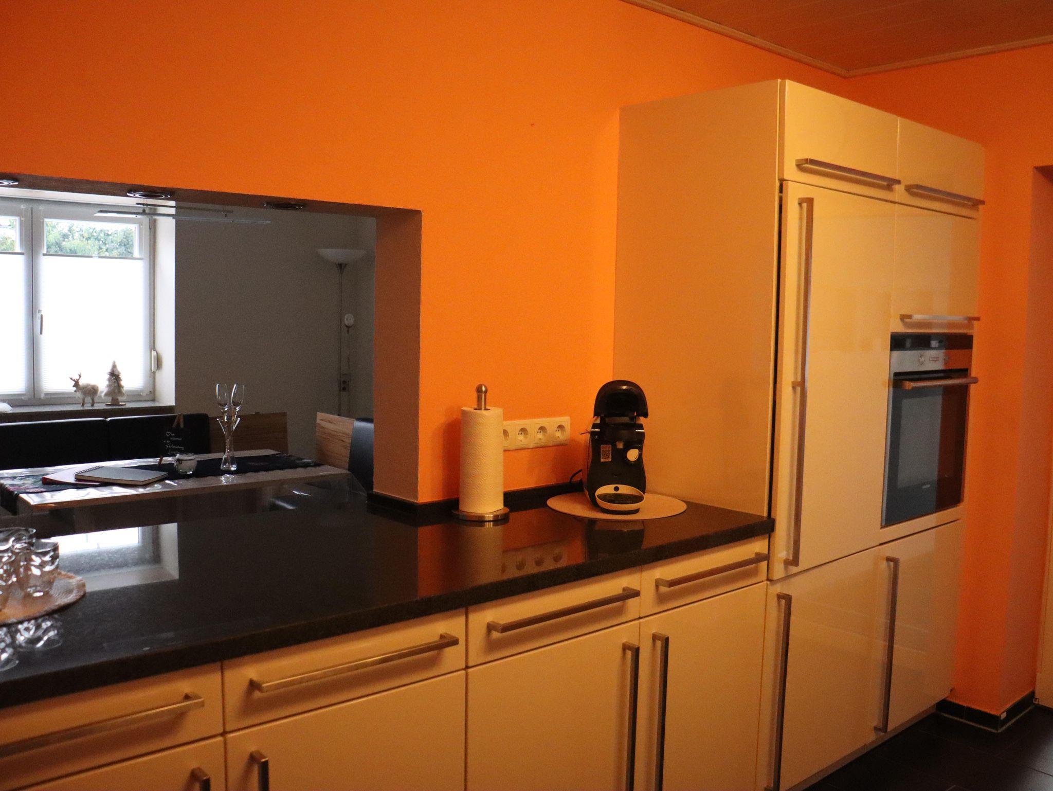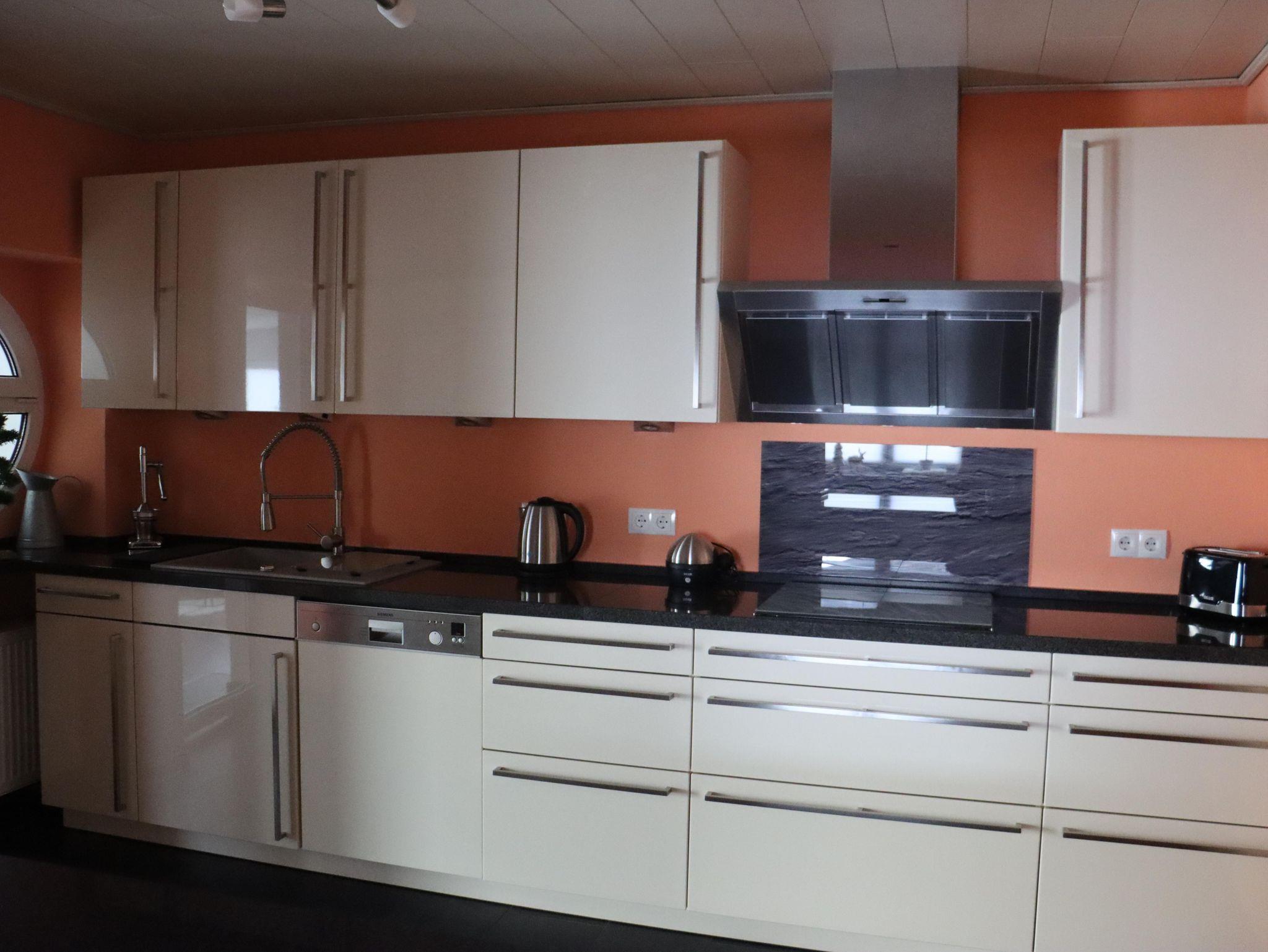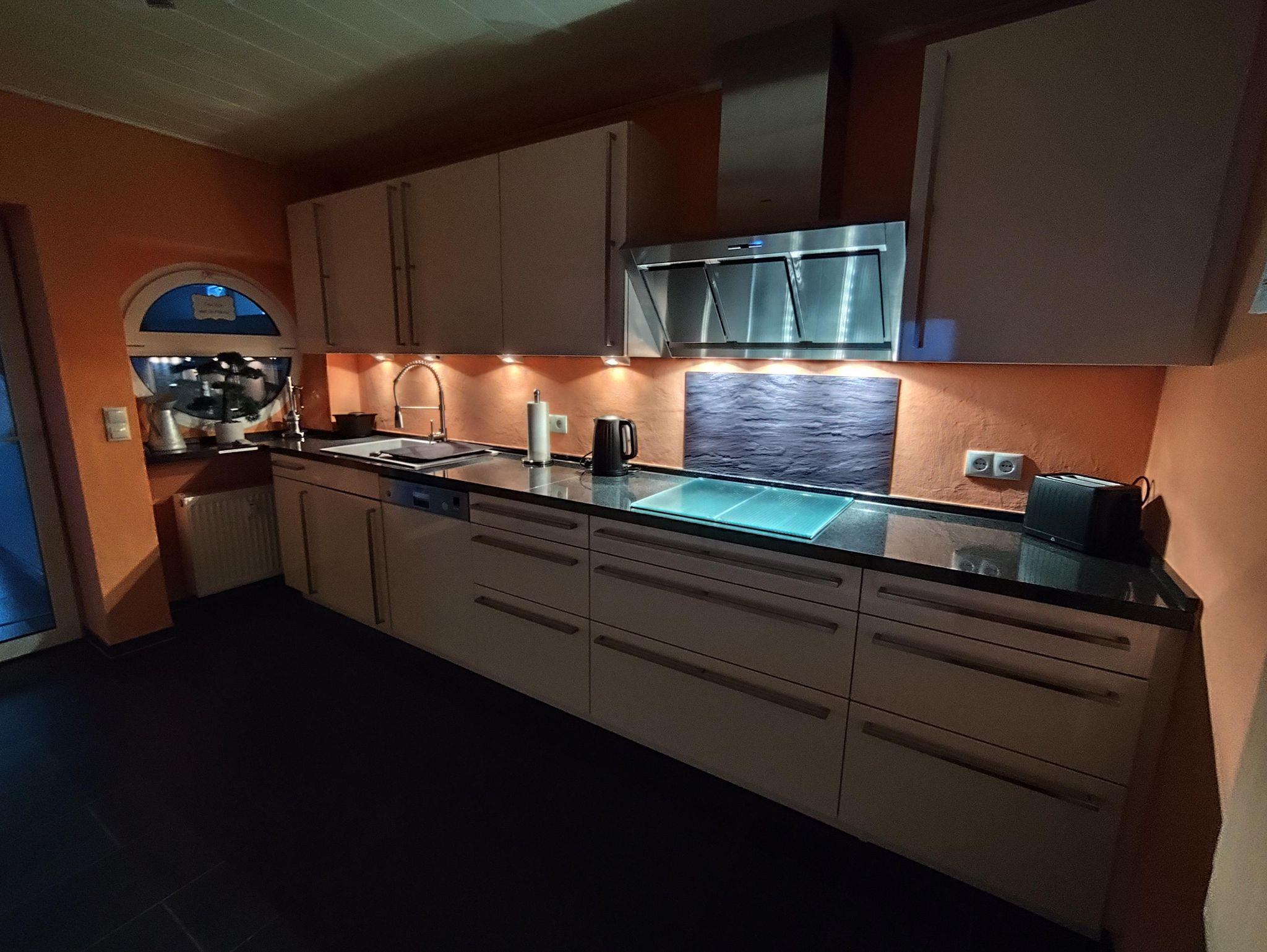Die großzügige Ferienwohnung verfügt auf ca. 120 qm über ein helles Wohnzimmer mit Glaskuppel, ein Esszimmer mit Durchreiche zur Küche, eine voll ausgestattete Küche mit Gefrierschrank, mit Kaffeemaschine, Toaster, Wasserkocher, Eierkocher, Spülmaschine, Mikrowelle mit Grillfunktion, Induktionskochfeld sowie Backofen, eine Diele, 2 getrennte Schlafzimmer (für bis zu 4 Personen), ein modernes Badezimmer mit barrierefreier Regendusche und WC, Föhn und diverse Hygieneartikel, Schreibtisch sowie eine Terrasse (kleine Sitzgelegenheit) mit Lounge Möbeln und Kontaktgrill für den Außenbereich. Die beiden Schlafzimmer sowie das Wohnzimmer sind mit 55-Zoll und 32-Zoll-TVs ausgestattet. Zur Temperierung steht Ihnen in den Sommermonaten ein mobiles Klimagerät zur Verfügung.