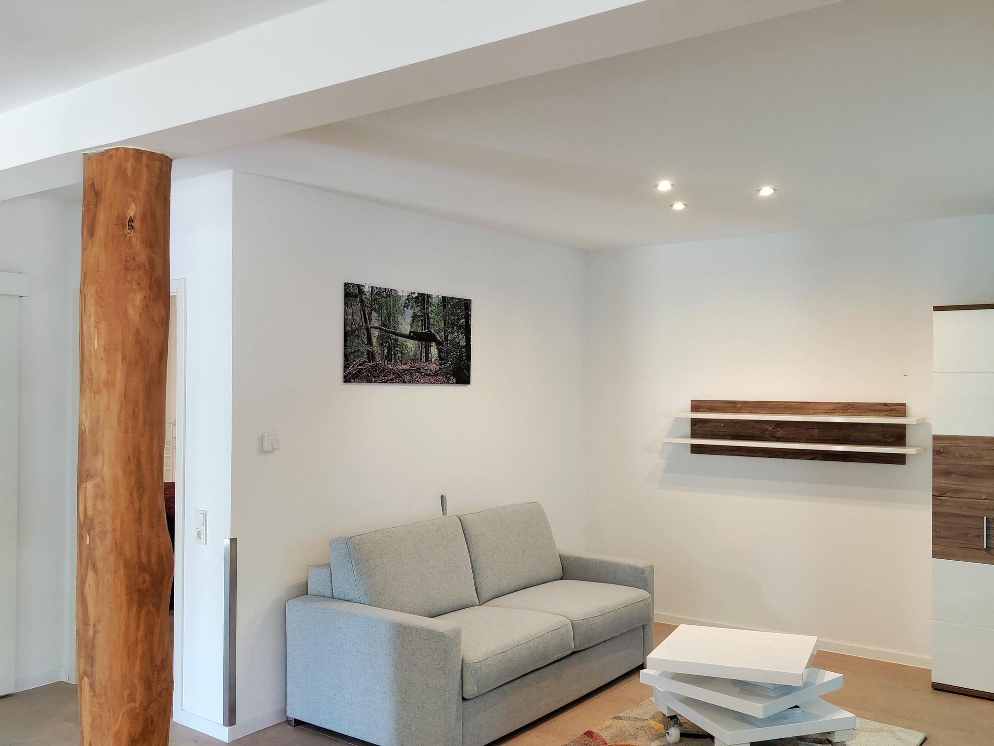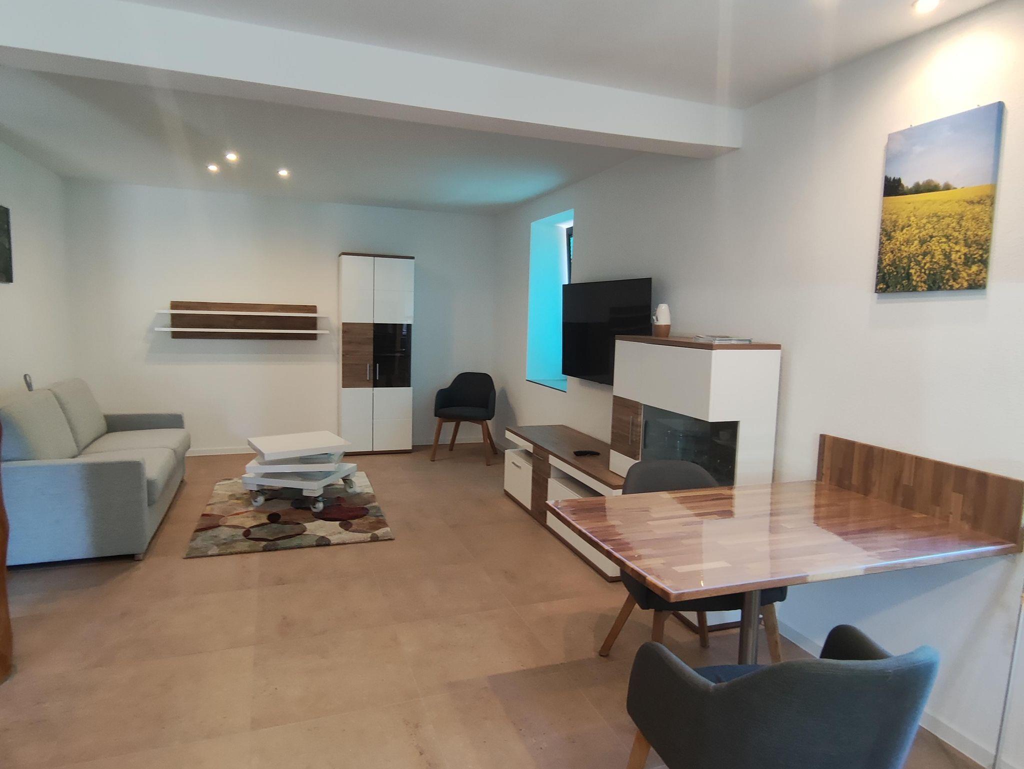 Die Wohnung im EG hat 62 m² und ist für Rollstuhlfahrer geeignet. Sie verfügt über 1 Schlafzimmer, ein barrierefreies Tageslichtbad 2 Abstellräume sowie einen großzügigen offenen Raum mit Küche, Wohn- und Essbereich. Sie kann mit 2-3 Personen gebucht werden. Die Schlafcouch im WZ kann zu einem bequemen Bett mit einer Liegefläche von 2,00 x 1,50 m ausgeklappt werden.