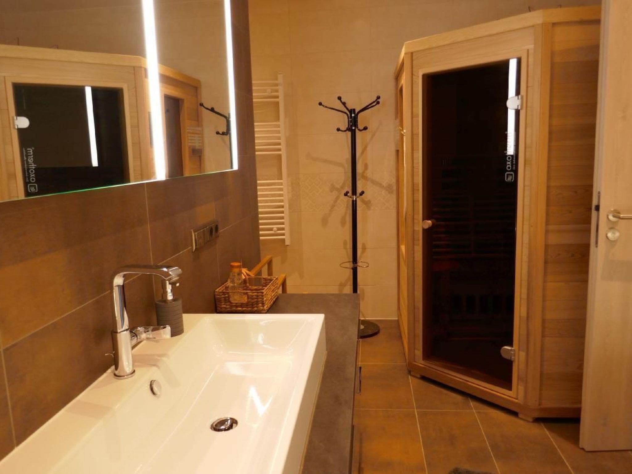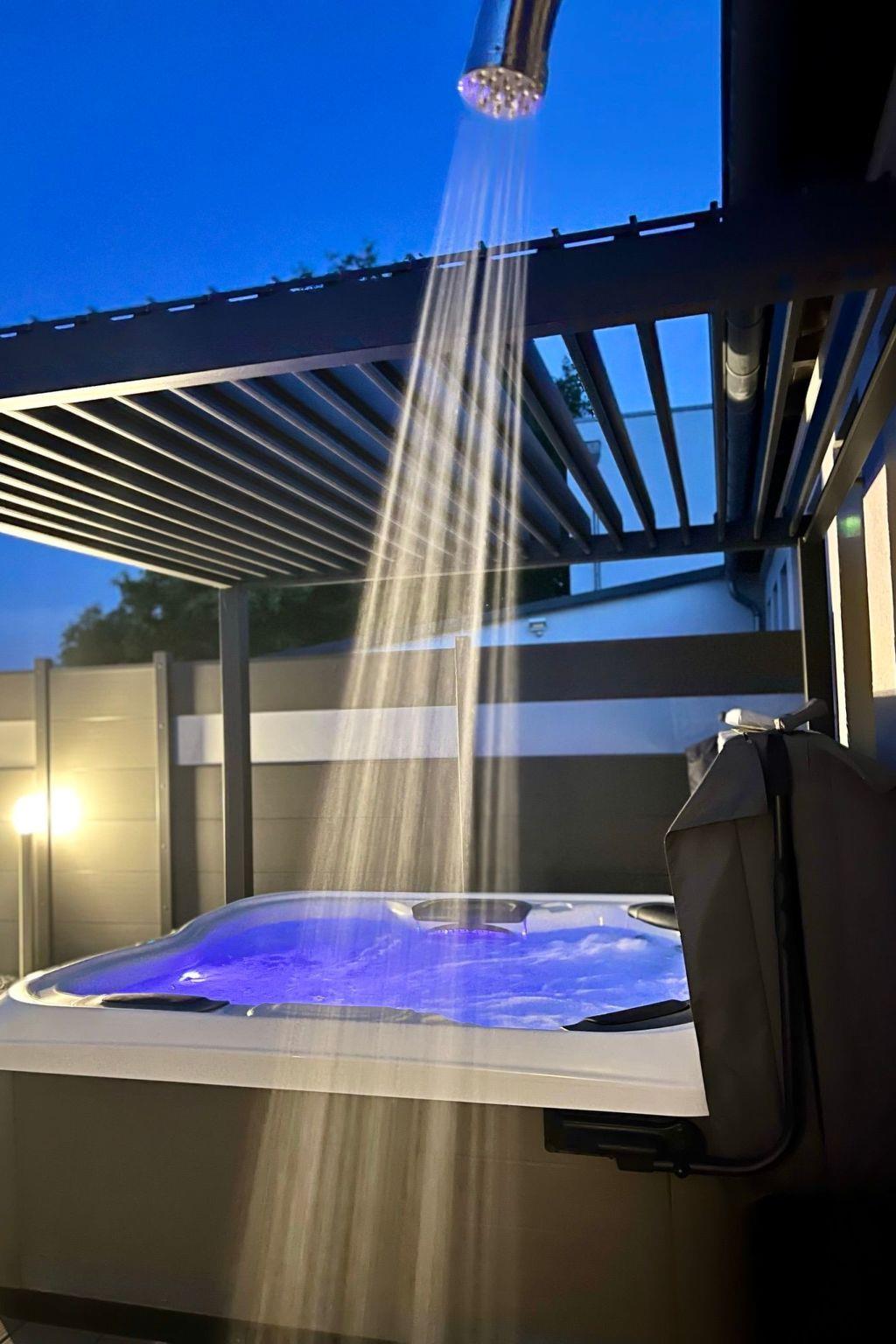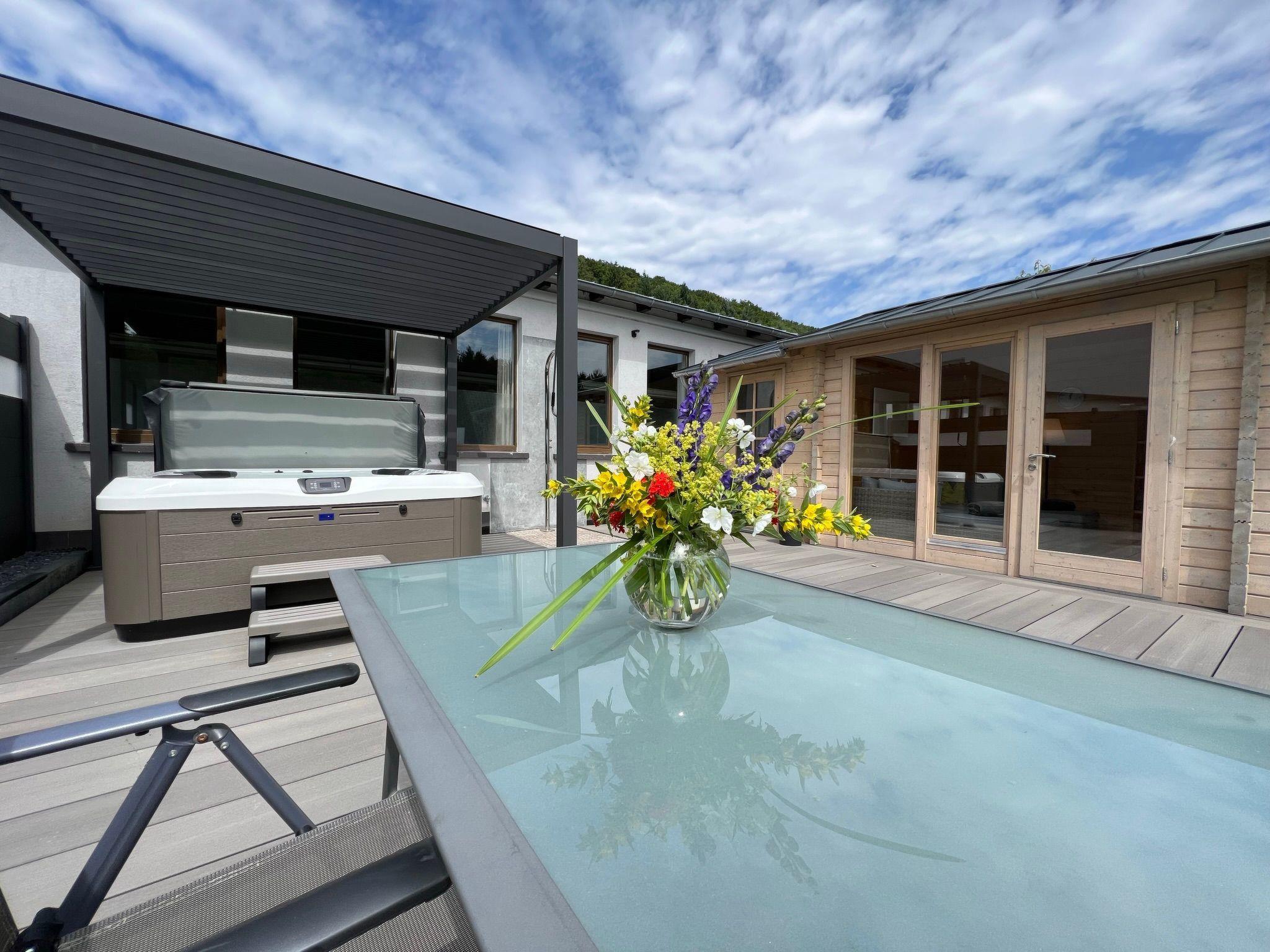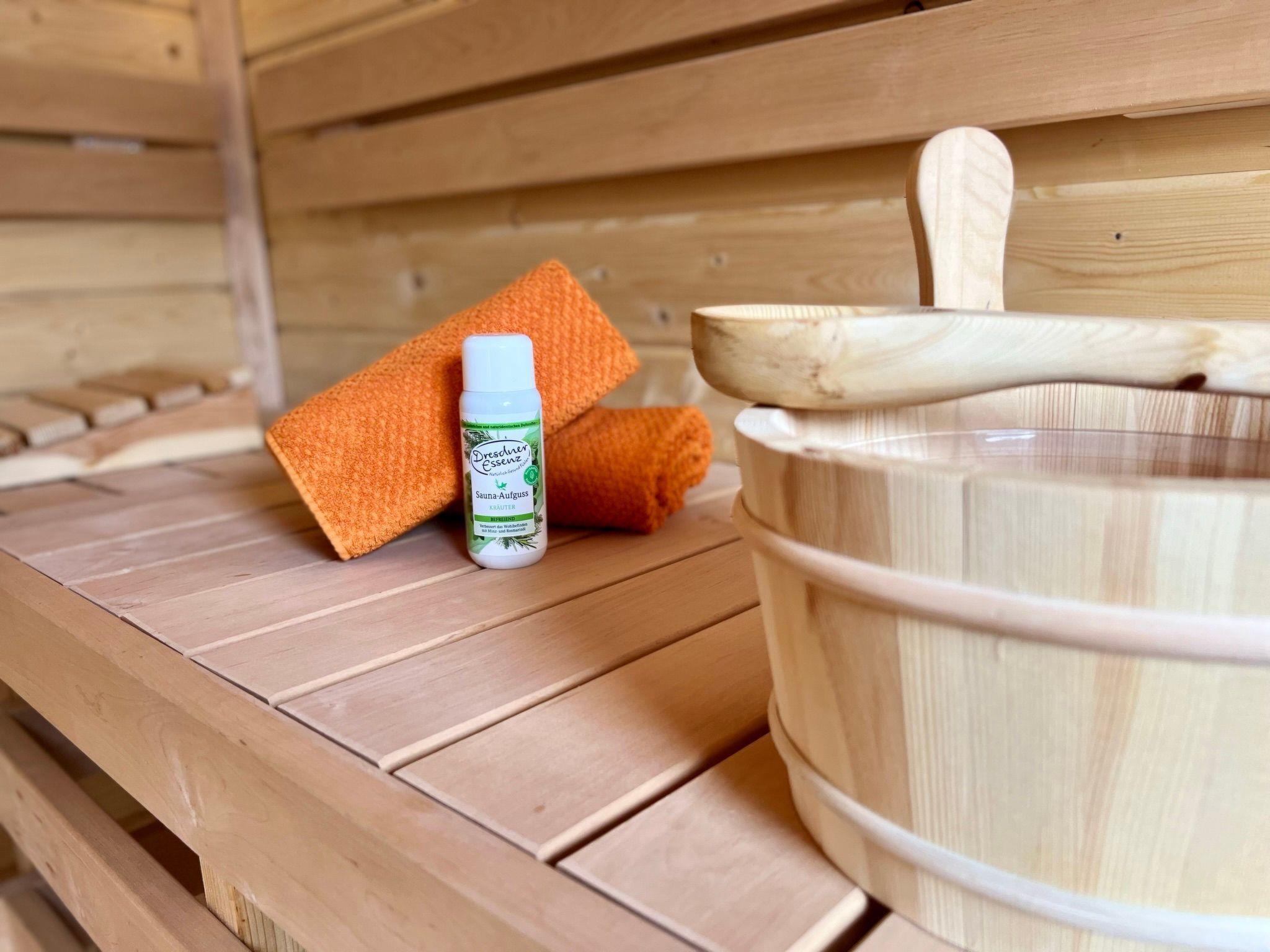 Outside, a generously designed wellness area awaits you, inviting you to relax. This area includes a sauna house, a jacuzzi and a terrace and is open daily from 9 am to 10 pm. Garden furniture, a barbecue area with a large barbecue as well as a well-tended lawn and a wide meadow offer additional space for activities or relaxing hours outdoors.