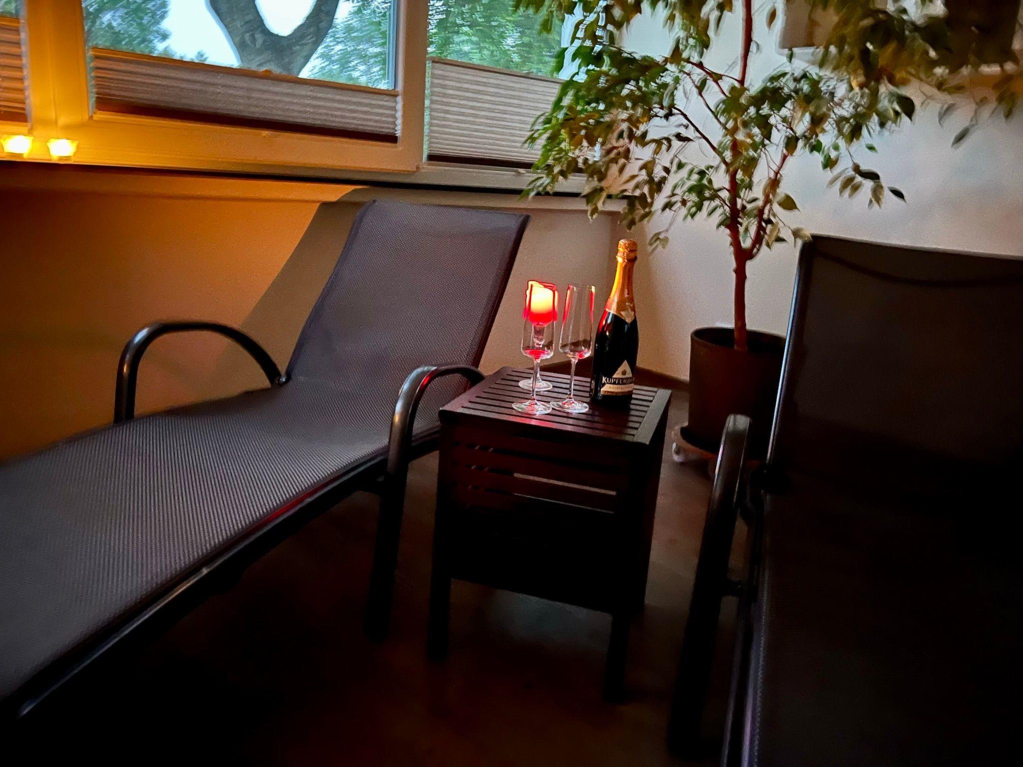 Inside, an exclusive, shared wellness area awaits you, which invites you to relax and can be used by the guests of our two holiday flats. The area includes a bio-sauna, which serves as both a Finnish sauna and a steam sauna, a whirlpool with massage jets, a relaxation room and a conservatory - for carefree relaxation at no extra cost. The option to pre-book private wellness sessions guarantees personalised moments of relaxation.