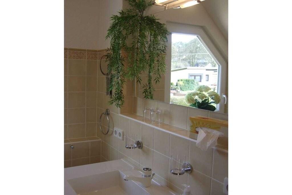 Ground floor: (hallway(Mirror, Wardrobe Coatrack), Kitchen(stove, hob, dishwasher, fridge), Living/diningroom(Sofa, TV, dining table, fireplace), bedroom(Bed Linen, Wardrobe, double bed), bathroom(Mirror, toilet, shower, washbasin), relaxation area(sauna), storage) On the 1st floor: (hallway, bedroom(Bed Linen, Wardrobe, double bed), bedroom(Bed Linen, Wardrobe, single bed, single bed), bathroom(Mirror, toilet, bath tub, washbasin)) Hot Water, Vacuum Cleaner, Internet access, washing machine, balcony(garden furniture), terrace(garden furniture, awning), garden(Barbecue center, Lawn, garden furniture, sun loungers, Garden shed), ironing board, iron, drying cabinet