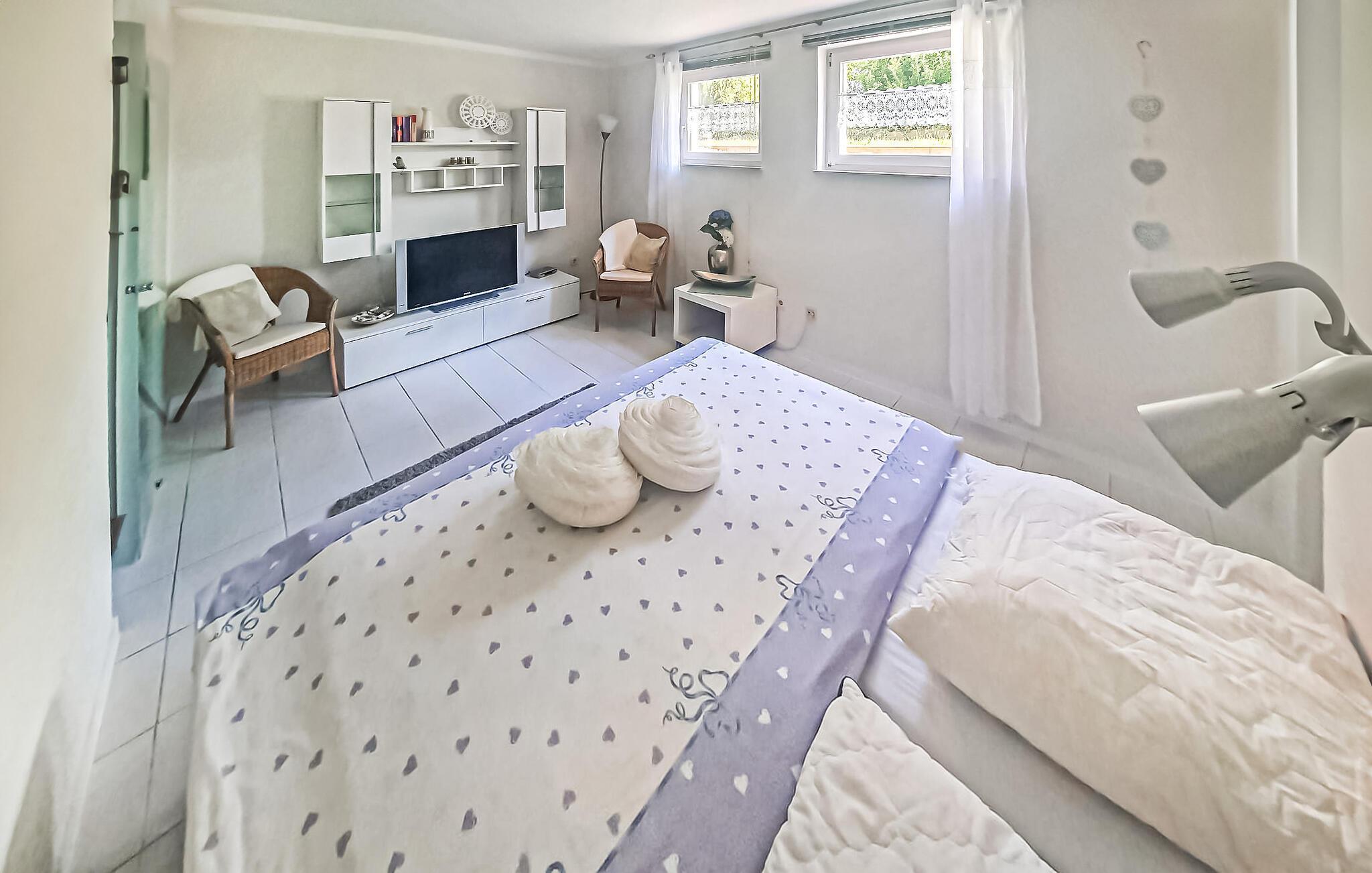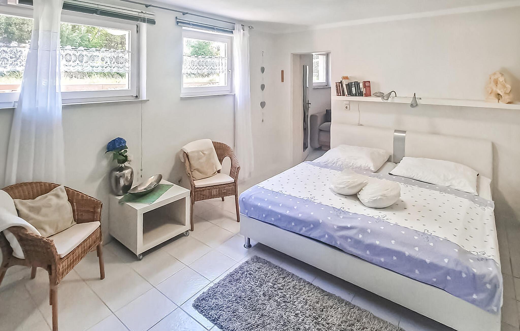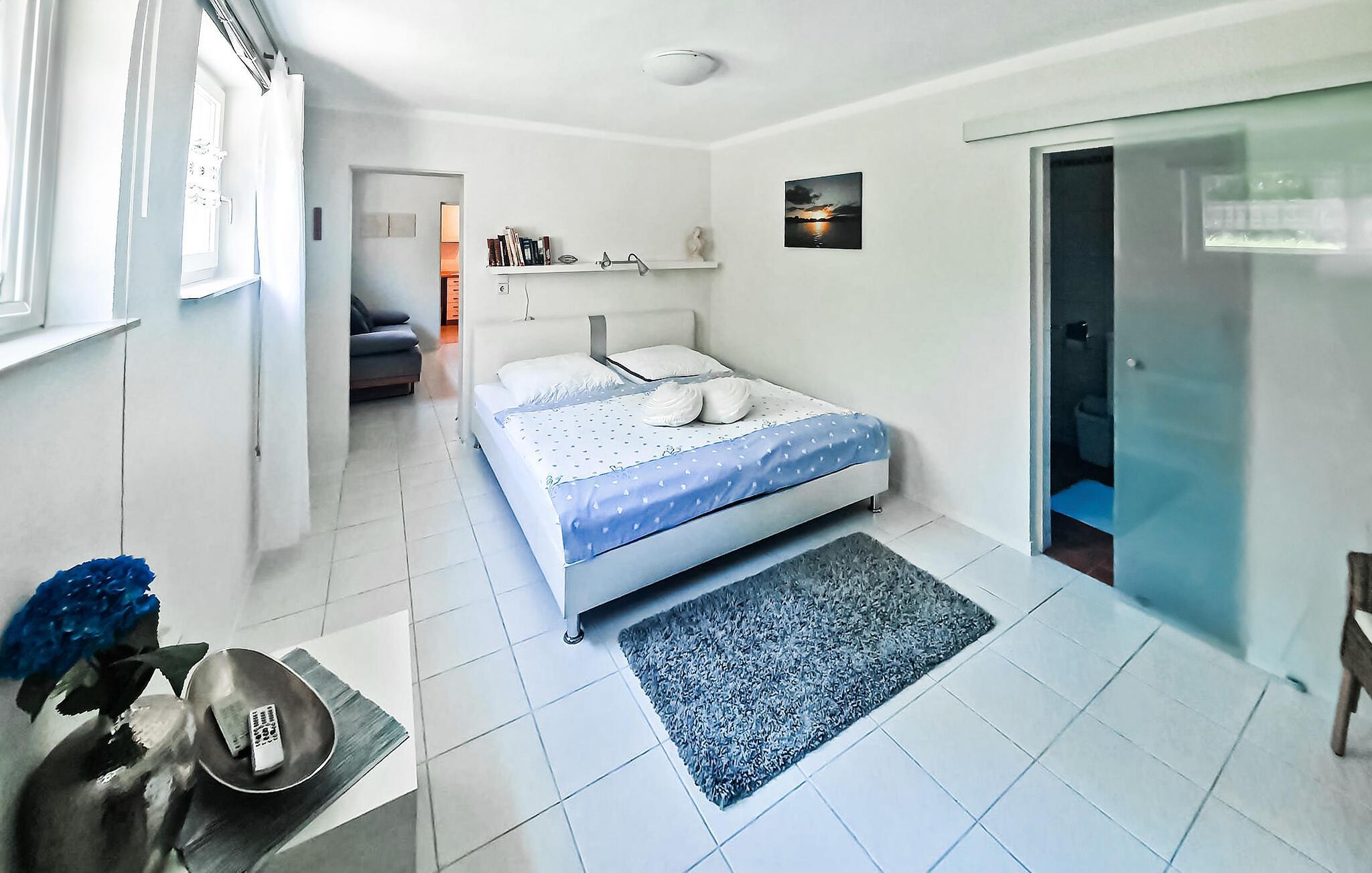 Die Ferienwohnung mit separatem Zugang befindet sich im Souterrain eines Wohnhauses auf dem 1500 Quadratmeter großen Wohngrundstück des Eigentümers. Die kleine Wohnsiedlung liegt am Rande eines Landschaftsschutzgebietes, nur ca. 300 me von einer Badestelle am Plauer See entfernt. Die 2020 letztmalig renovierte Wohnung ist ausgestattet mit einem kombiniertem Wohn-/ Schlafraum (Doppelbett, kleine Sitzecke, TV, Radio), einem kleinen Durchgangszimmer (Schlafcouch, Zustellmöglichkeit für ein Kinderbett), einer komplett neu eingerichteten Küche (E-Herd mit Backofen, Geschirrspüler, Kühlschrank, Mikrowelle, Essecke, div. Küchenkleingeräte) sowie einem Bad (DU/WC mit Fußbodenheizung). Weiterhin stehen eine möblierte Sitzecke im Freien mit Liegemöbeln, Grill- und Lagerfeuerplatz, Liegefläche und Parkplatz und gegen Gebühr Sauna (ab 01.04.) sowie W-LAN zur Verfügung. Im Gesamtpreis enthalten sind Wasser, Energie und Endreinigung. Bettwäsche und Handtücher können mitgebracht oder wahlweise gemietet werden. Vor Ort zu zahlen: Wäschepaket (wenn gewünscht), W-LAN 8 EUR.