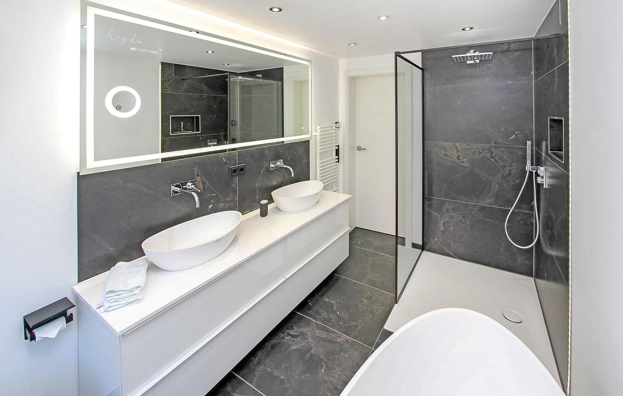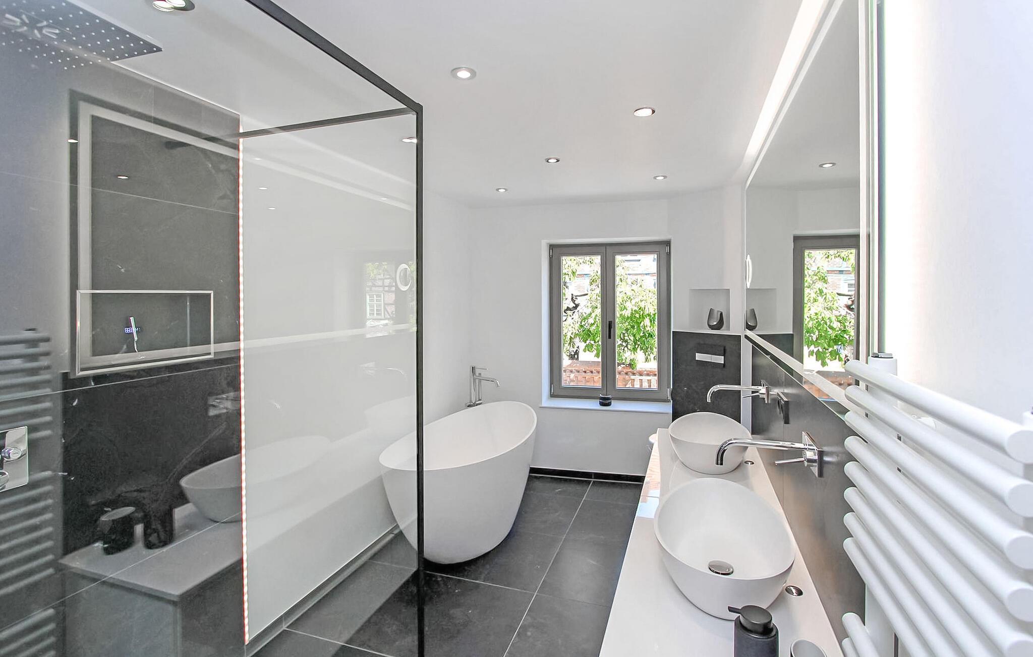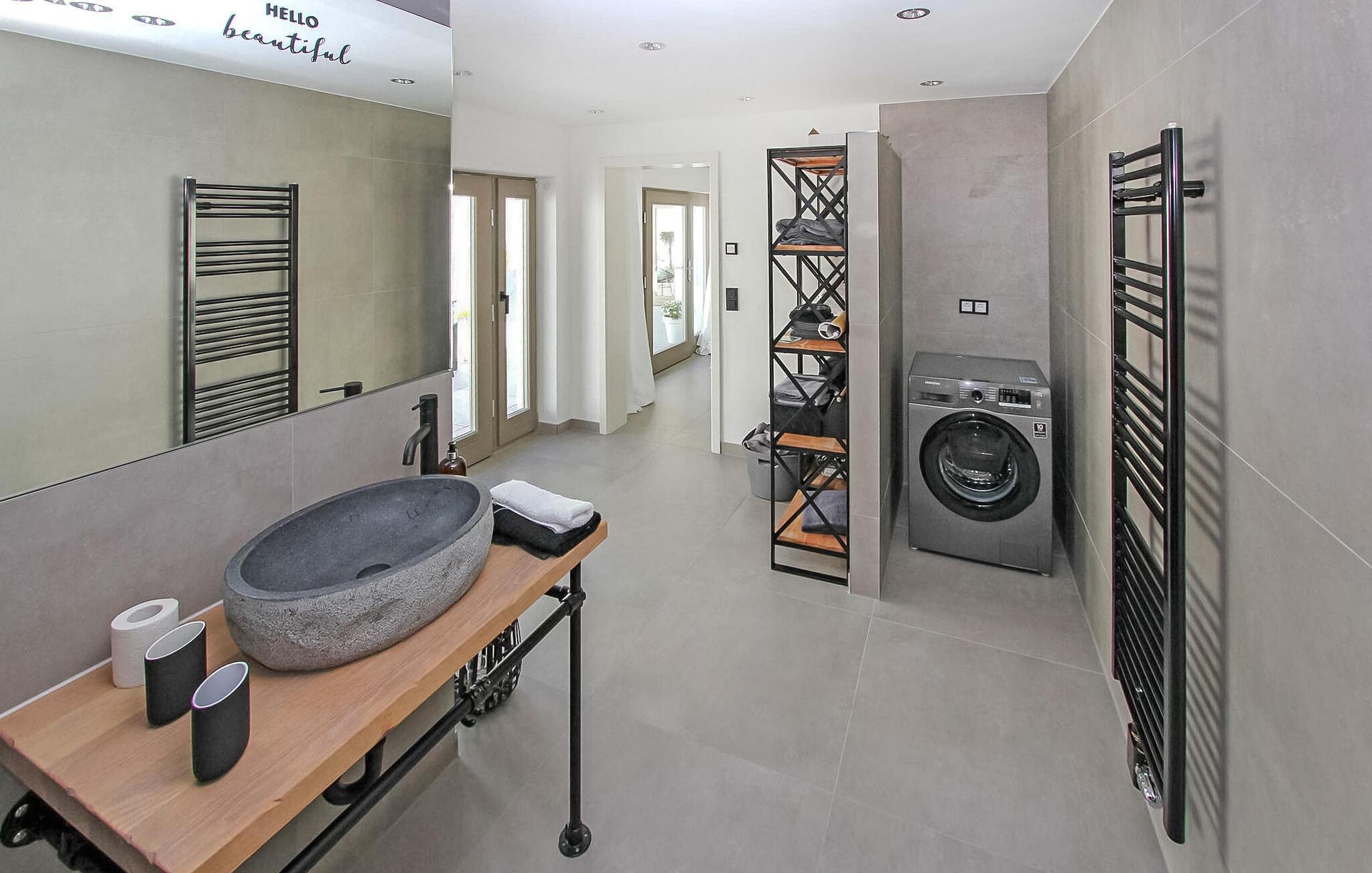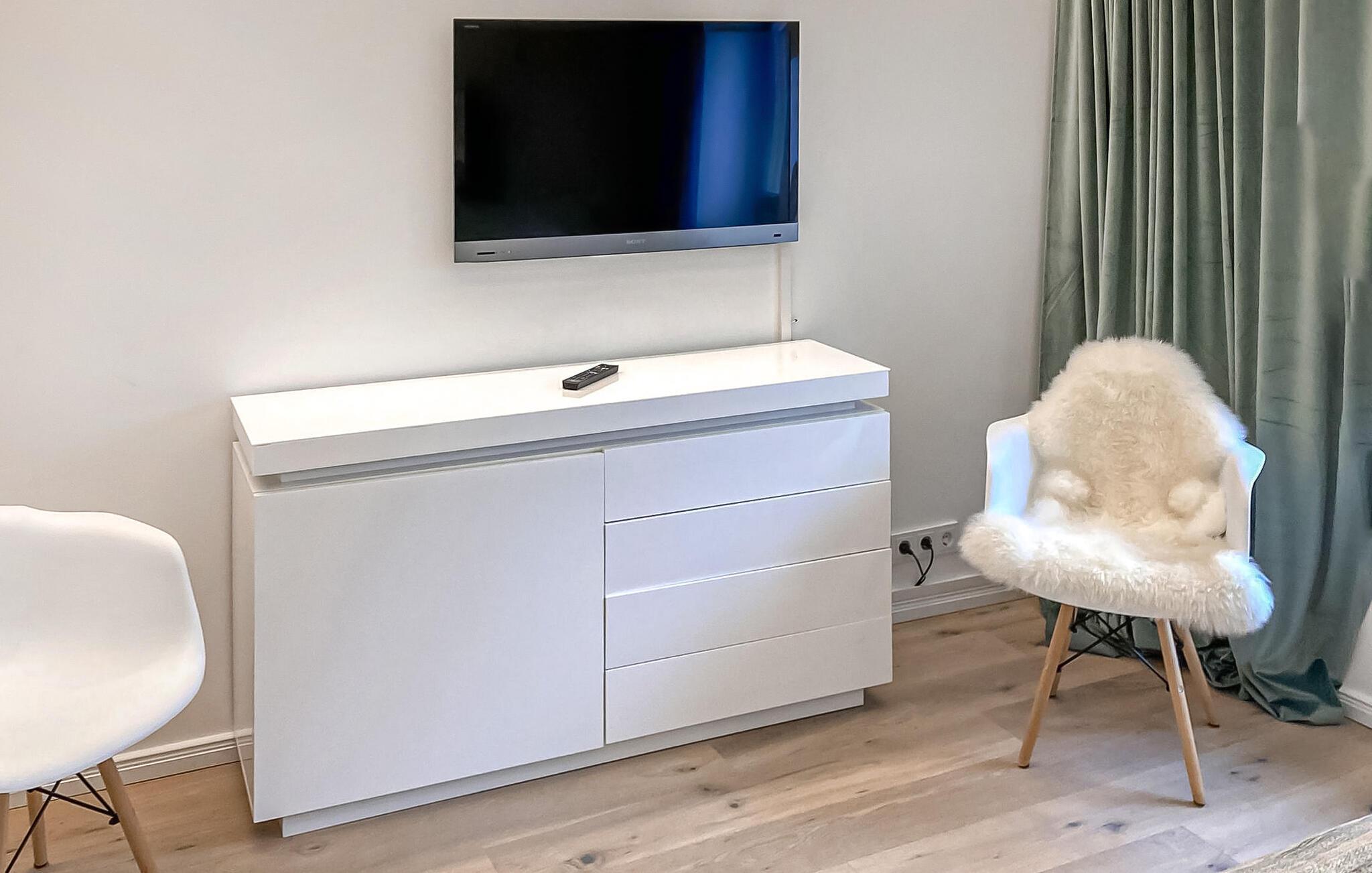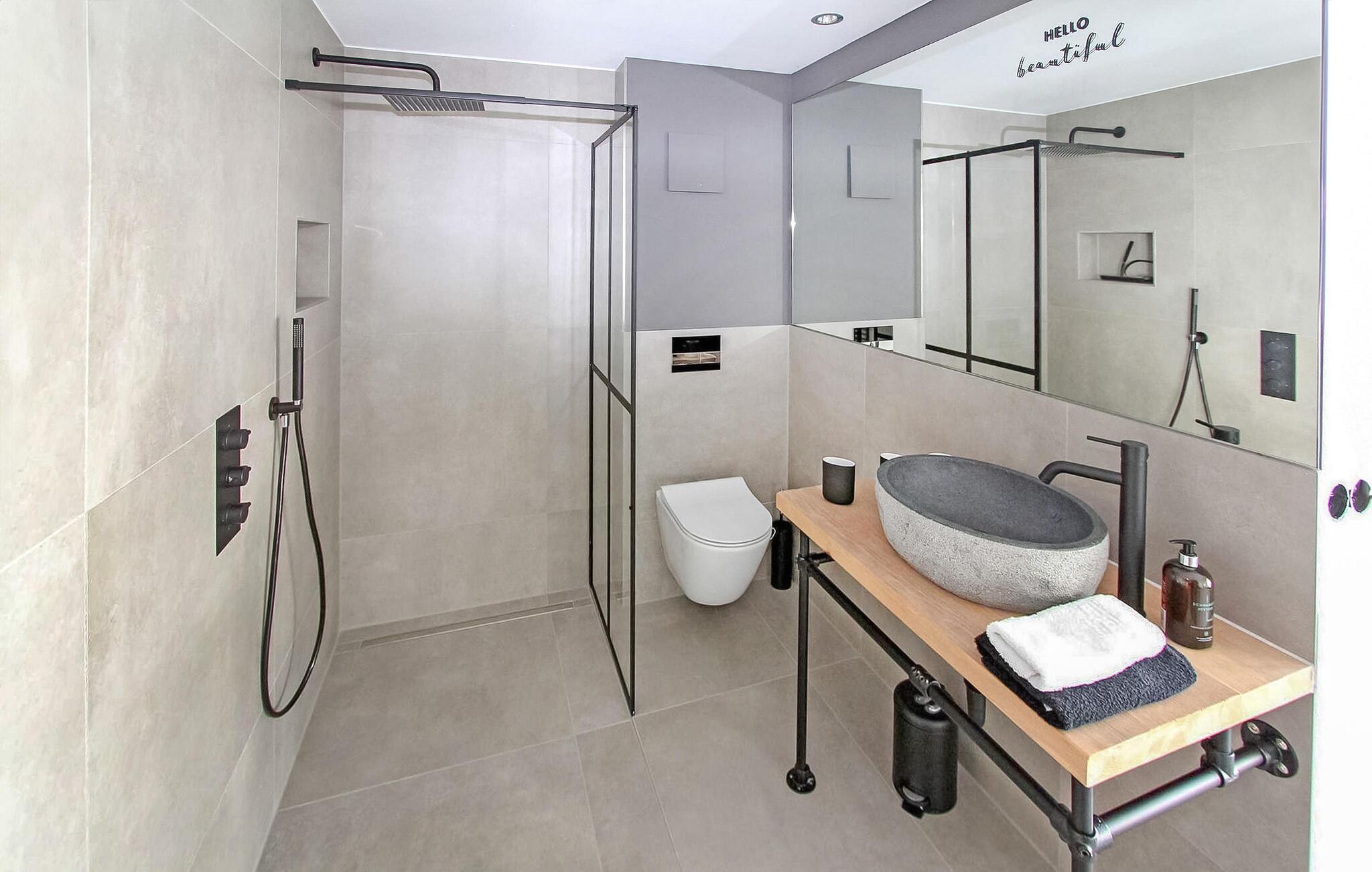 Das historische Gebäude wurde bis 2021 sehr aufwändig saniert und im modern-minimalistischen Stil eingerichtet. Die hochwertige Ausstattung genügt gehobenen Ansprüchen. Erstbezug Juli 2021. Das Erdgeschoss verfügt über einen offenen Zuschnitt. Hier befinden sich zwei Wohnbereiche (Polstermöbel, Sitzecken, Smart-TV), eine hochmoderne Küche (u.a. E-Kochfeld mit integriertem Bora Dunstabzug, Backofen, internetfähiger Kühlschrank mit Eiswürfelspender, großer Esstisch, div. Küchengeräte), ein kleines Gäste-WC, 1 Schlafraum mit Doppelbett (Durchgangszimmer zum Bad) und ein Bad mit offener Dusche und Waschmaschine. Im Obergeschoss gibt es zwei weitere Schlafräume (je Doppelbett, Flachbild-TV) und ein Bad mit freistehender Badewanne, offener Dusche und LED-Spiegel mit integriertem Kosmetikspiegel. Für Kleinkinder stehen ein Kinderbett und ein Kinderhochstuhl bereit. Für größere Kinder bis 10 Jahre können zusätzlich Gästebetten zugestellt werden.