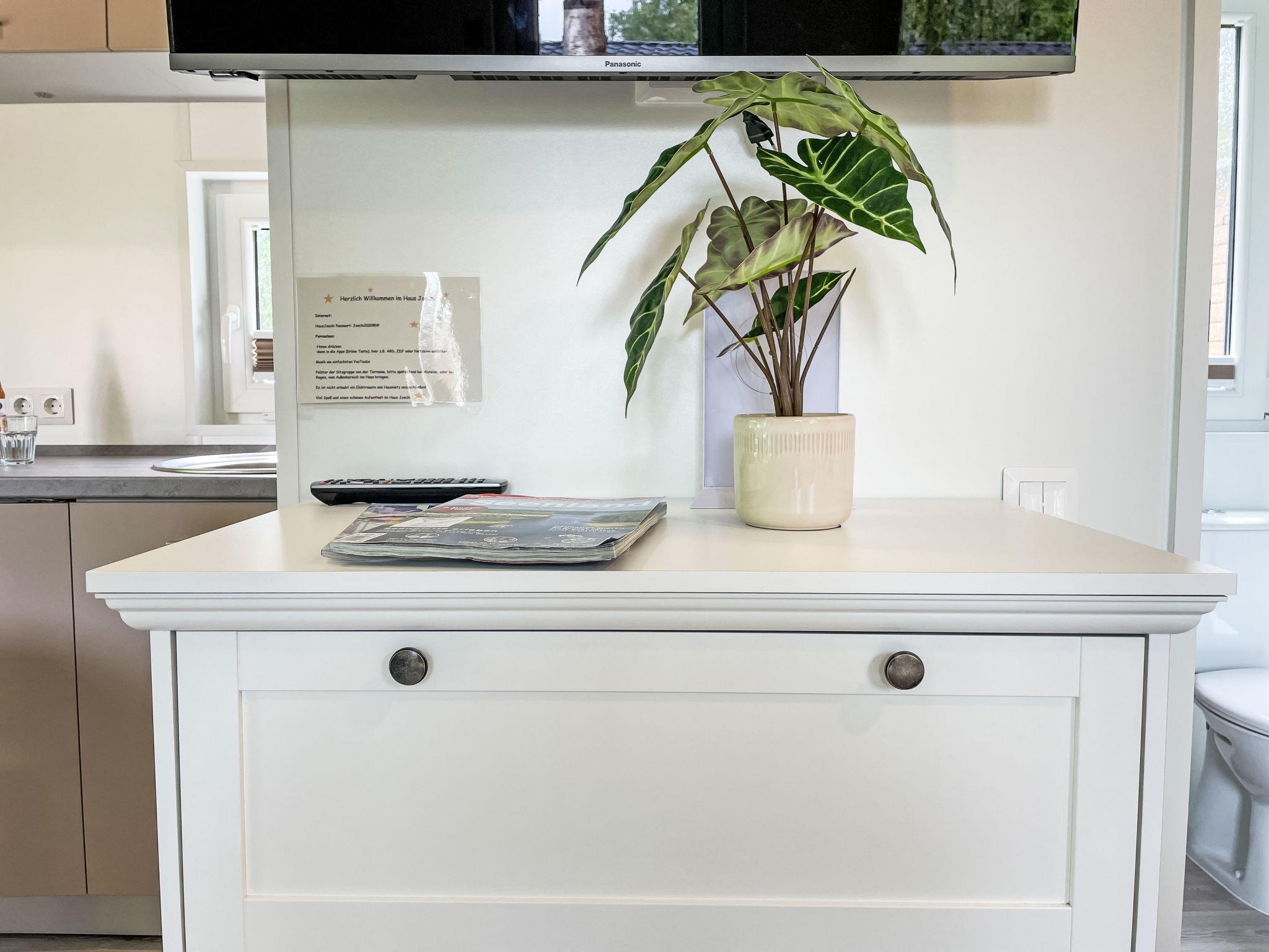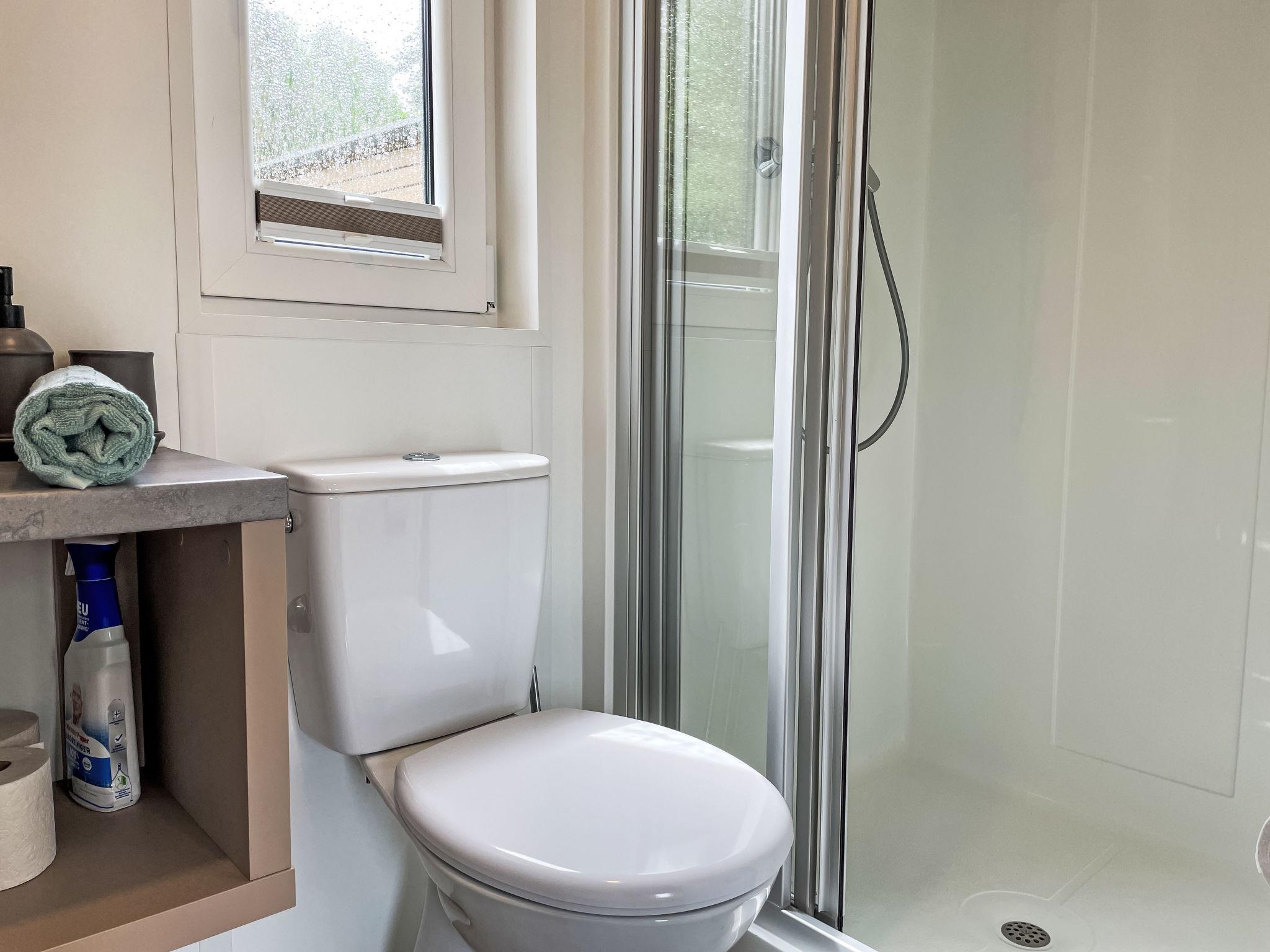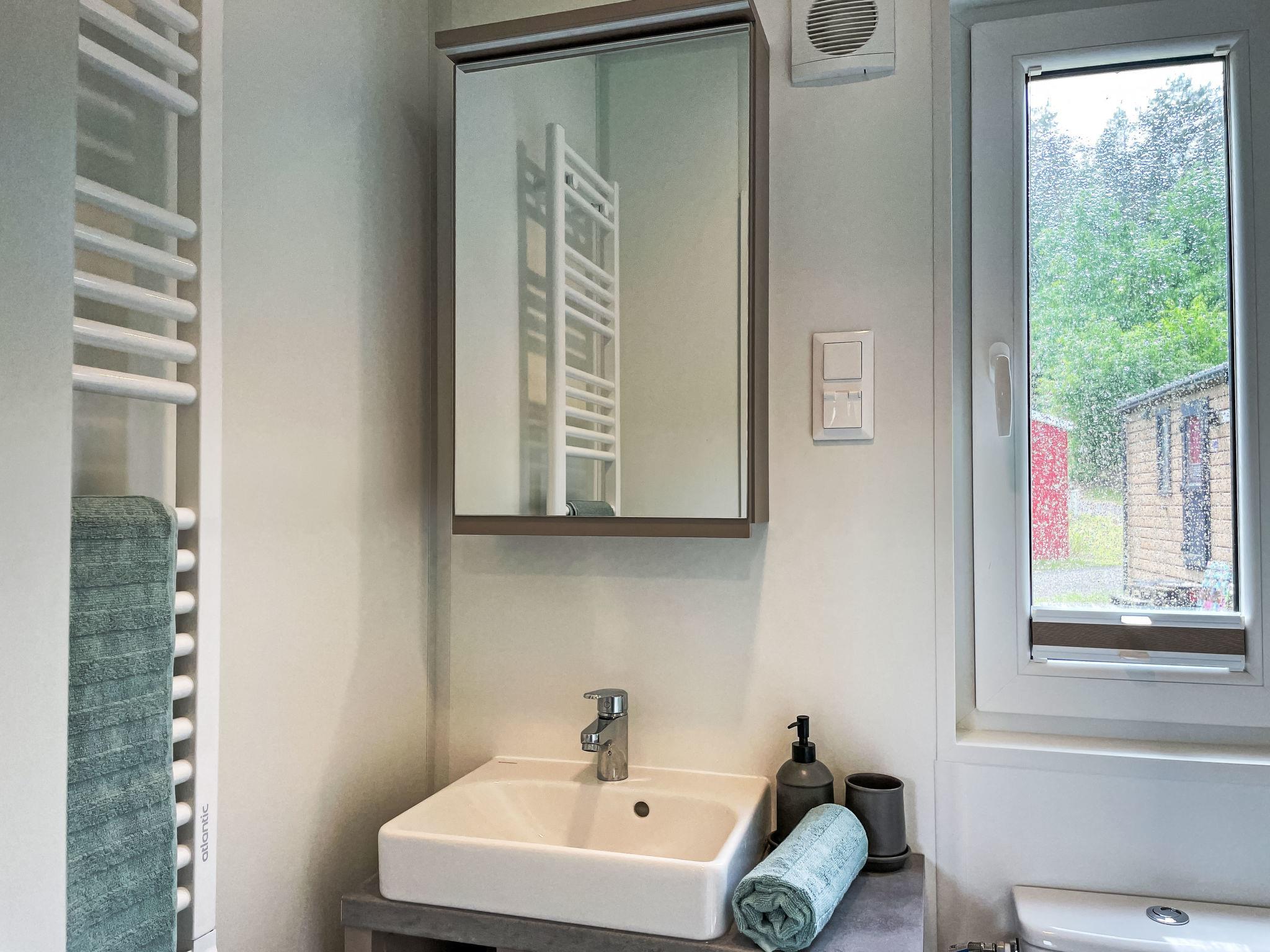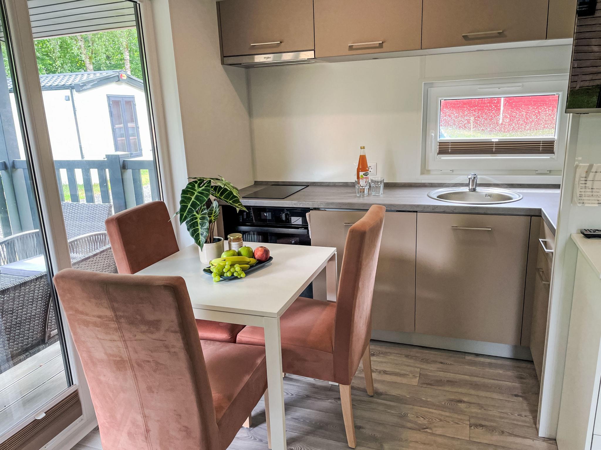 1-room mobile home 30 m2. Modern and cosy furnishings: living/sleeping room with 1 double bed (160 cm, length 200 cm), satellite TV and digital TV (flat screen). Exit to the terrace. Open kitchen (oven, 2 induction hot plates, kettle). Shower/WC. Electric heating. Terrace roofed. Terrace furniture. Beautiful view of the forest. Facilities: Internet (WiFi, extra). Parking at the house. Please note: non-smoking house. Maximum 1 pet/ dog allowed. Smoke alarm.
