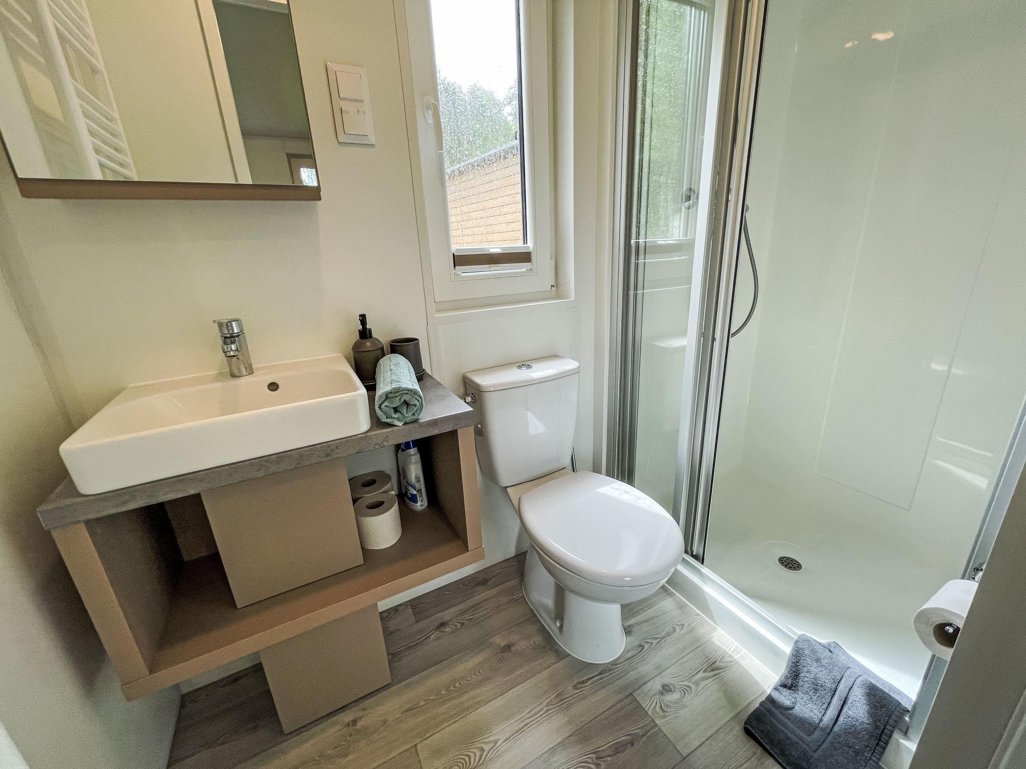 Bad Stuer 11 km from Plau am See: Mobile home "Joschi", built in 2023, surrounded by trees and meadows. In a central, sunny position, 300 m from the lake, 300 m from the beach, direct access to the beach. For shared use: property (fenced), lawn and trees. Table tennis, volleyball, children's playground (swing, sandbox). In the complex: reception, bar. Supermarket 10 km, café 100 m, bus stop "Bad Stuer" 600 m, sandy beach 300 m, bathing lake "Plauer See" 300 m. Minigolf 300 m. Nearby attractions: Bärenwald.
