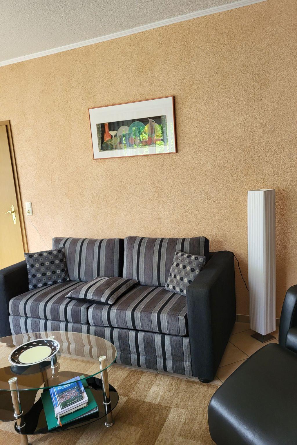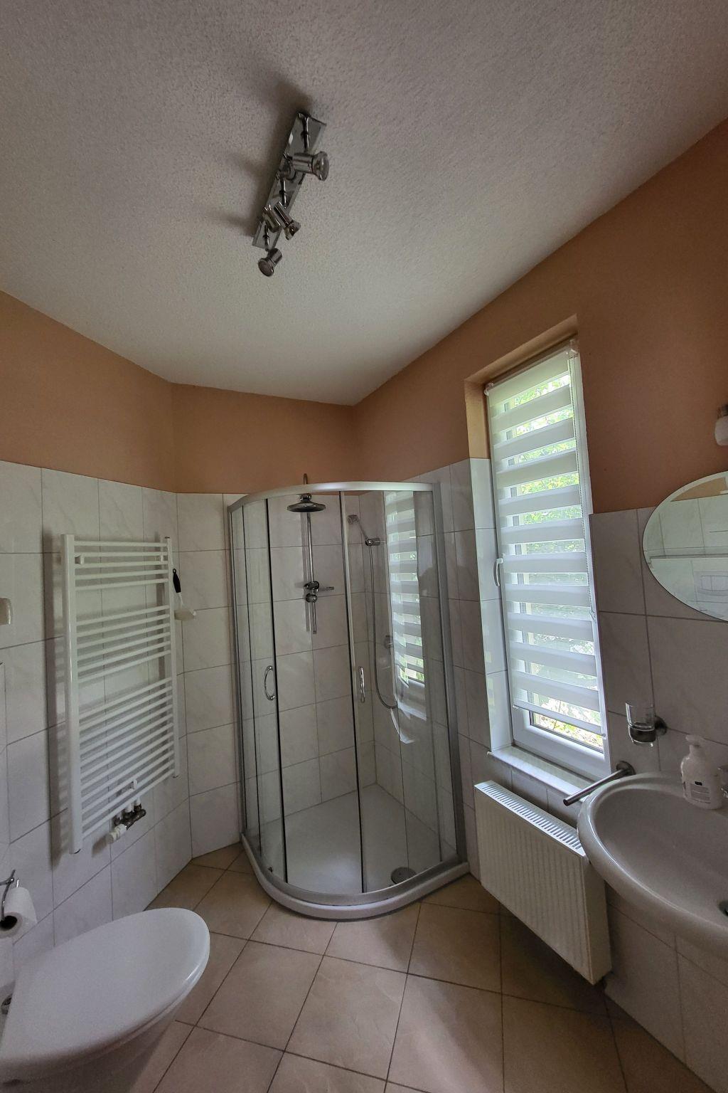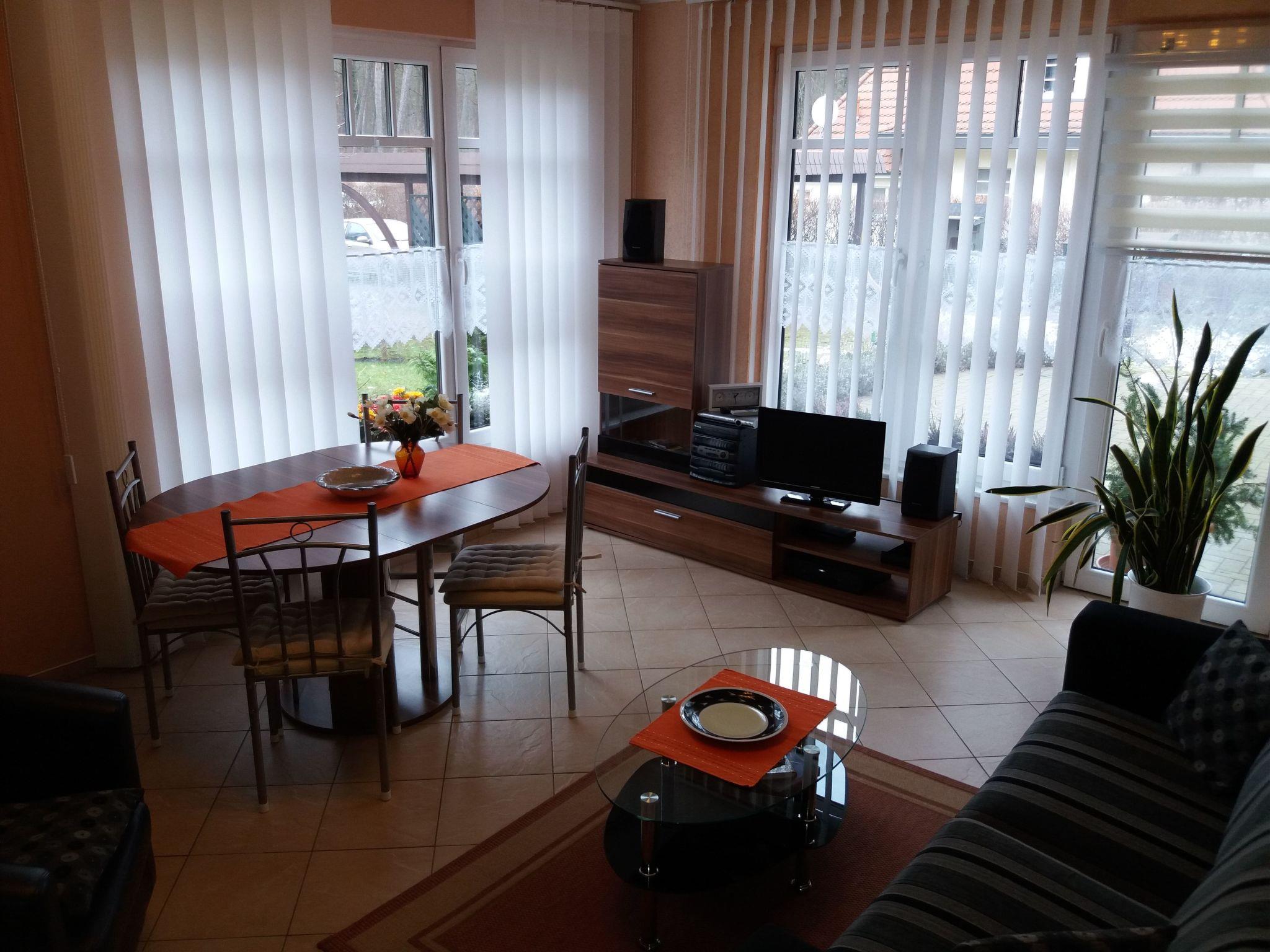 Your holiday home is located directly on Lake Plau in the "Seelust" district in the middle of a privileged villa area. The holiday home "Haus am Seeufer" extends over 2 floors, comfortably and tastefully furnished. Living/dining room on the ground floor with DVD + CD player, radio, satellite TV. Kitchen on the ground floor, cooker with ceramic hobs and oven, dishwasher, coffee machine, fridge with three freezer compartments, microwave and kettle. A shower/WC is located on the ground floor. In the living area there are two comfortable armchairs and a pull-out sofa bed.