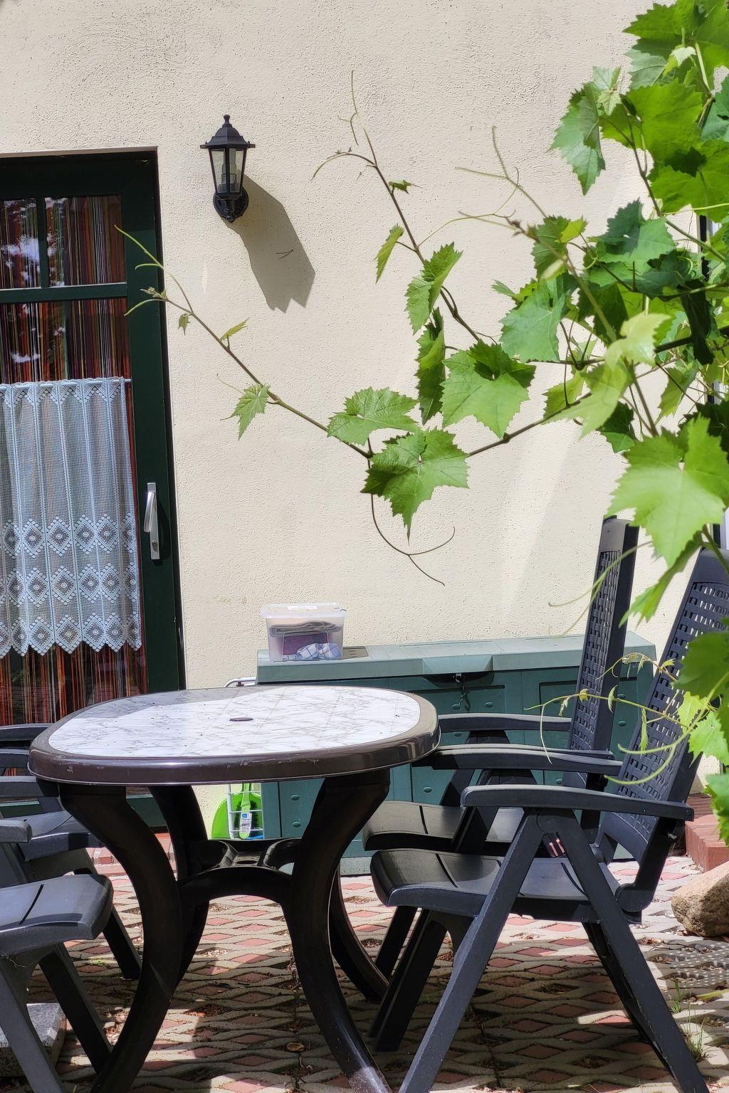 The bedroom is located on the upper floor (1 bed + 1 bed + 1 double bed). There is also a shower/WC on the upper floor. The upper floor can be reached via a spiral staircase. In the outdoor area of the property you can use two terraces, one of which faces the lake. You also have the option of using the garden benches in the garden facing the lake and enjoying the marvellous view over the lake.