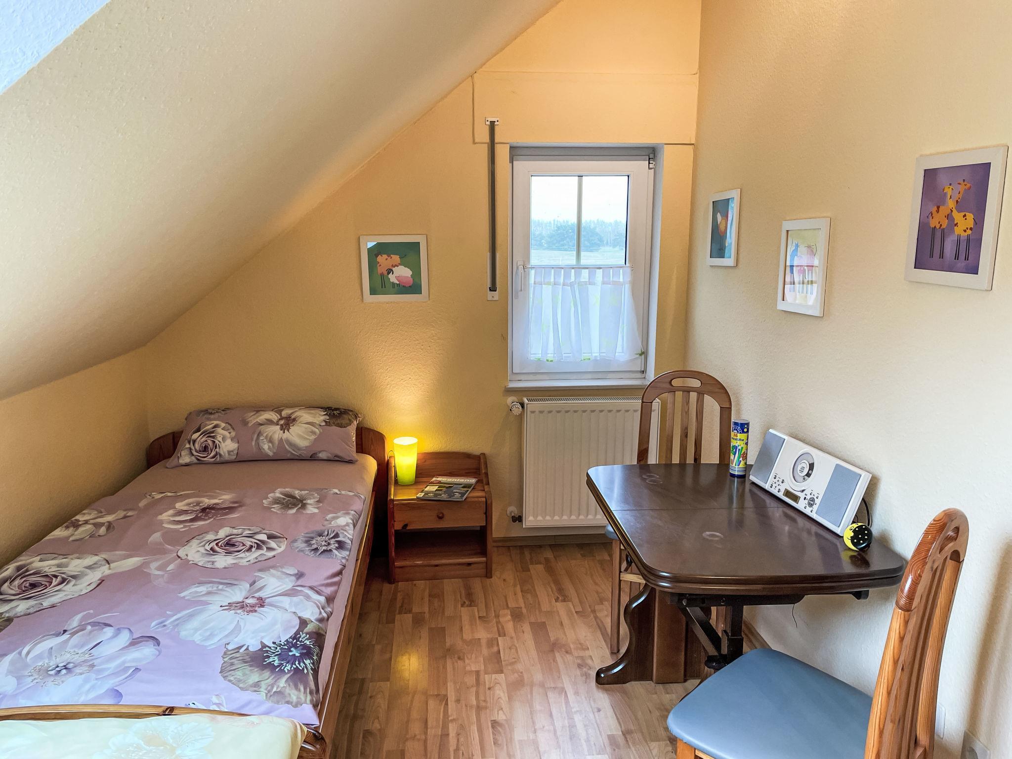 4-room semi-detached house 89 m2 on 2 levels. Cosy furnishings: living/dining room with cable TV (flat screen). Exit to the terrace. 1 double bedroom. Kitchenette (oven, dishwasher, 4 ceramic glass hob hotplates, toaster, kettle, electric coffee machine). Sep. WC. Upper floor: 1 double bedroom with sloping ceilings. 1 room with sloping ceilings with 2 beds. Shower/WC. Gas heating. Terrace. Terrace furniture. Parking (1 car). Please note: non-smoking house. Maximum 1 pet/ dog allowed. Smoke alarm.
