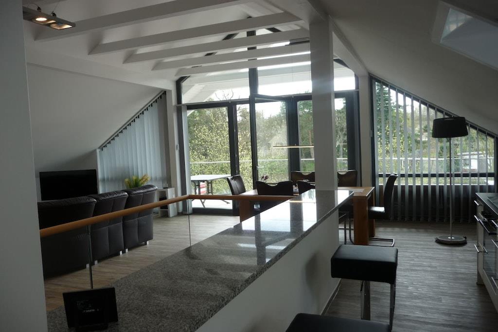 2023 met bootligplaats, dichtbij het centrum, rustig, hoogwaardig & charmant, 25 m² terras met uitzicht op het water, 2 slaapkamers, 3 TV's, kano, internet + parkeerplaats