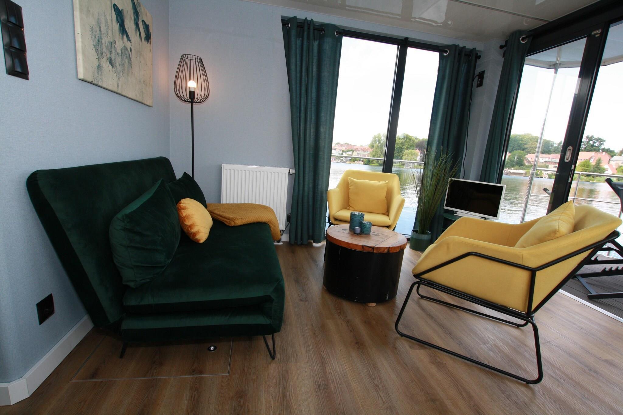 This new stationary houseboat is a floating holiday home and is permanently moored in the harbour town of Plau am See directly on Lake Plaer See. Lovers of the lake district will get their money's worth here! You spend your time on the water and are still close to the hustle and bustle of the small town. Enjoy the view of the passing boats from your terrace. Above all, living on a houseboat means being in direct contact with nature. When the weather is nice, you can enjoy the sun on the roof terrace with a cool drink or start the day with a hearty breakfast. Highlights included: All consumption-related energy costs, bed linen and towels Please note: The TV shown can only play DVDs. No TV channels can be received! The houseboat is located in the island town of Malchow until January 2026. Therefore the photos do NOT show the current berth. Bookings for 2025 can be made under the property number DE-17213-137.