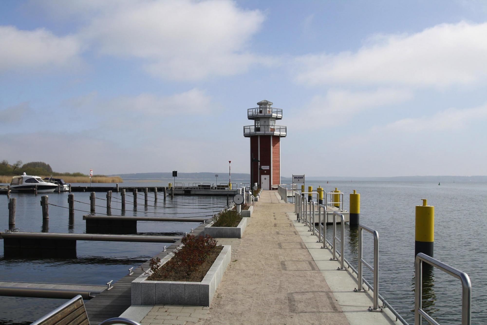 High-quality furnished apartment in a terraced house newly built in 2017 directly on the pleasure boat harbor of the former fishing town of Plau am See. There is a boat rental right outside the front door and you can enjoy a wonderful view over the vastness of the lake from the balcony. You live directly in the harbor village of Plau am See - the water and the boats splash quietly in front of your front door and you enjoy the soothing atmosphere of the climatic health resort. You can reach the center and old town of this charming town on foot from here. Various restaurants and cafés serve Mecklenburg specialties. Highlights included: All consumption-based energy costs Bedding WIRELESS INTERNET ACCESS Activities nearby: Go on a guided fishing trip or a boat trip, take a trip on one of the passenger ships or discover the lake on a paddling tour - the options are incredibly diverse! If you prefer to travel with dry feet, you can take a city tour on the small Plauer Bahn or discover the beauty of the landscape on a bike tour or a horse-drawn carriage ride. Those with sporting ambitions can test their skills in the climbing park. Excursion tips: the Müritz Bear Forest, the Wangeliner Garden and the Lübzer Kunstspeicher.