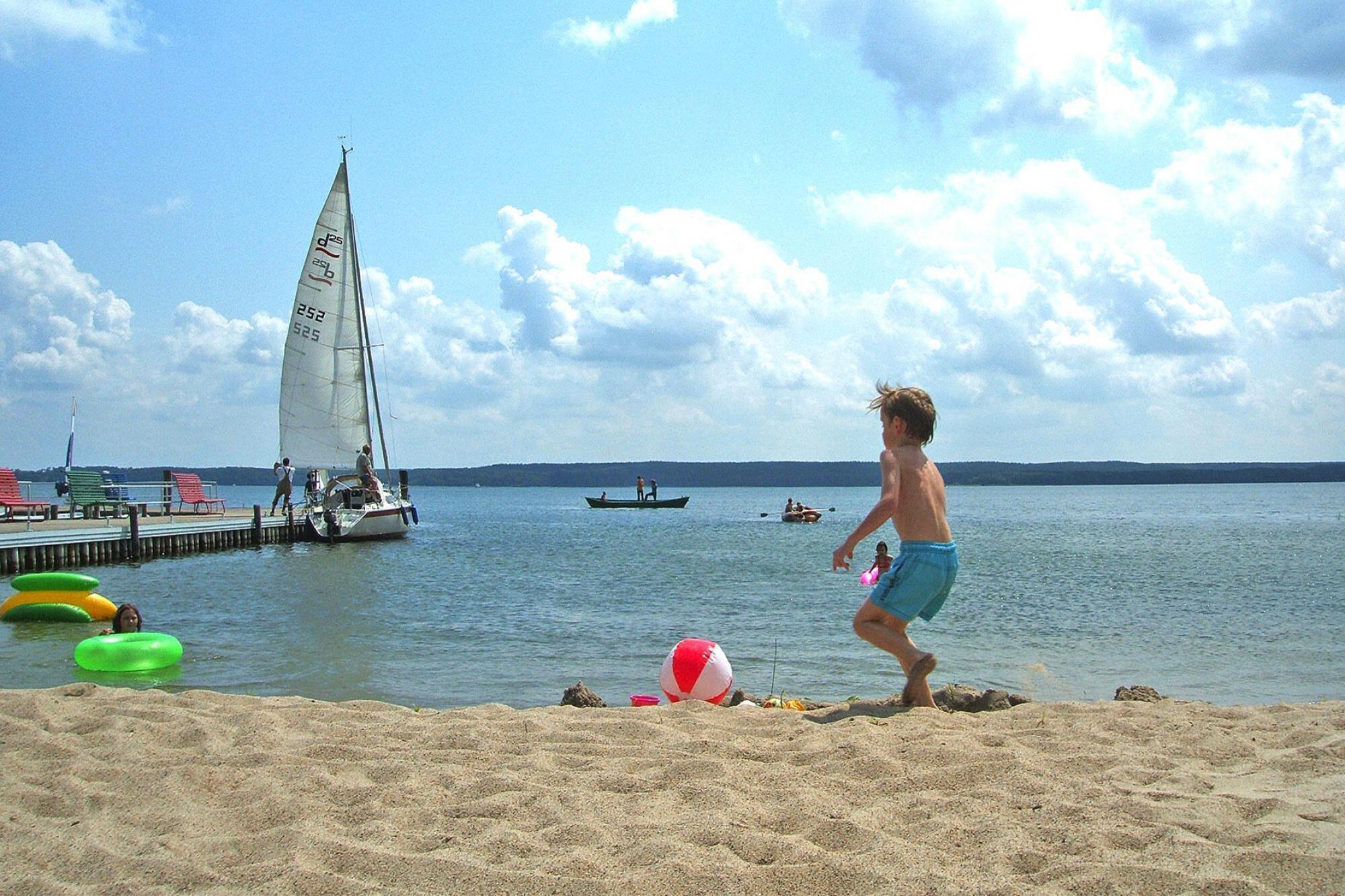 Directly on Lake Plau: Family-friendly holiday park with its own lake access, bathing beach with pier and a wonderful indoor swimming pool with wellness oasis in the beautiful climatic health resort of Plau am See. In the car-free holiday park near the Müritz-Elde waterway, none of your wishes will go unfulfilled. Let yourself be pampered in the restaurant with a cozy café terrace and try the excellent fish dishes from local waters. You will also be offered home-baked cakes, delicious ice cream specialties as well as breakfast, half board and bread roll service. A beach volleyball court, outdoor bowling alley, table tennis table, mini golf course and a garden chess field ensure fun and entertainment in the natural paradise on the north shore of Lake Plau. Your children will have great fun at the petting zoo and carriage rides with the little ponies. At the end of an eventful day, you can then relax in the spacious wellness area with indoor pool. Highlights included: water, WiFi, extensive baby equipment, 1 rowing boat for 1 day 15% discount on the rental of boats from the Müritz fishermen at their fishing farms in Plau am See, Krakow am See and Waren Note: A laundry package can be booked optionally at . Please also register your dog beforehand.
