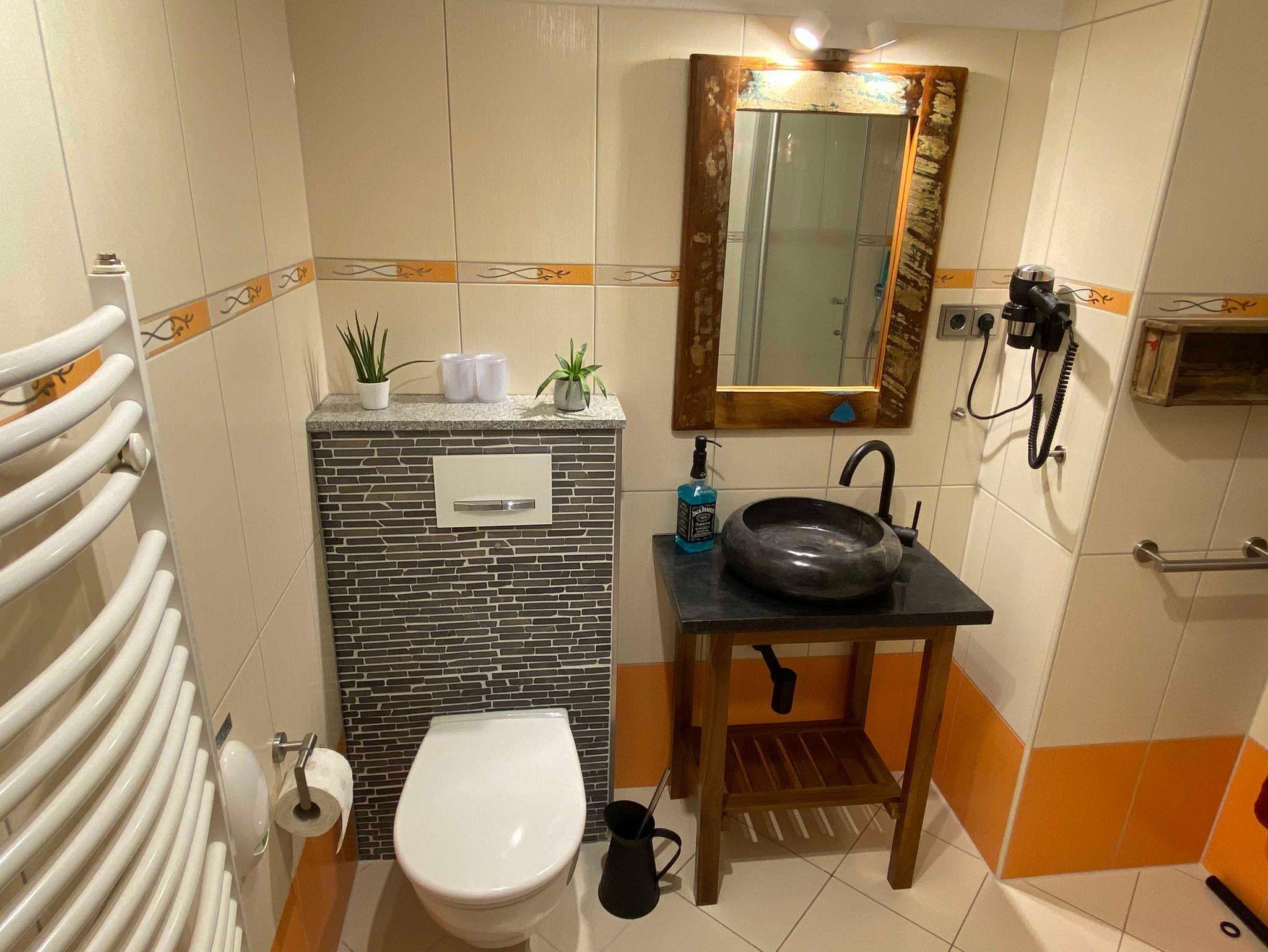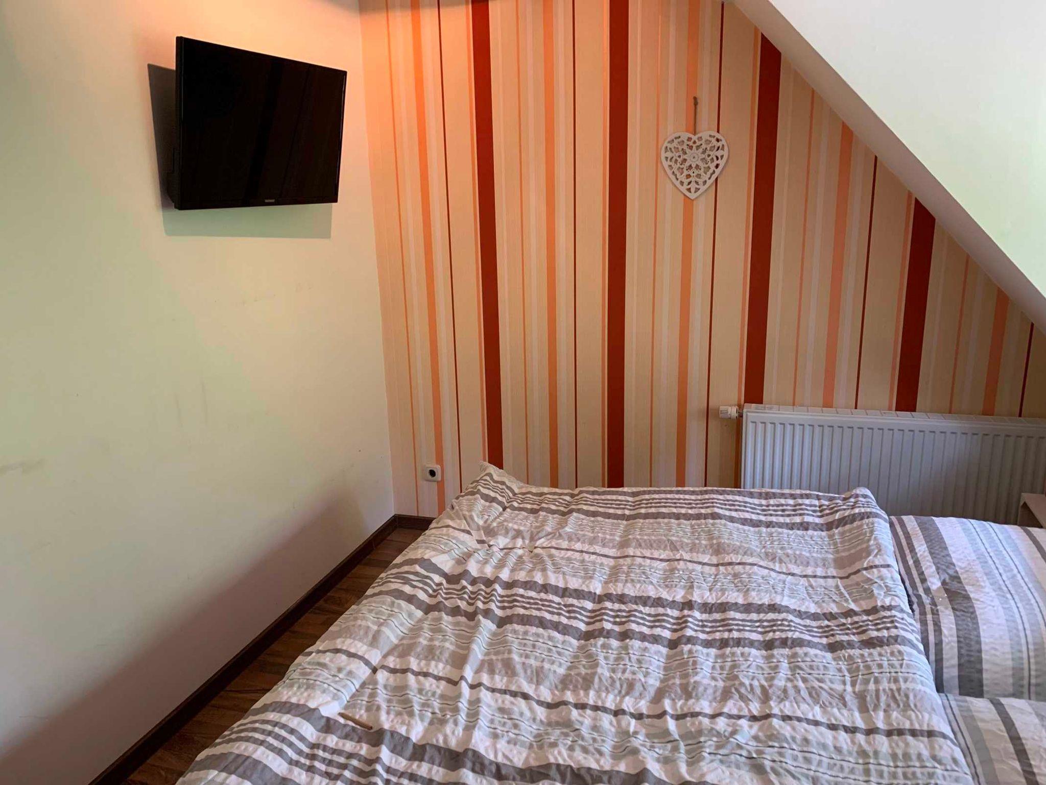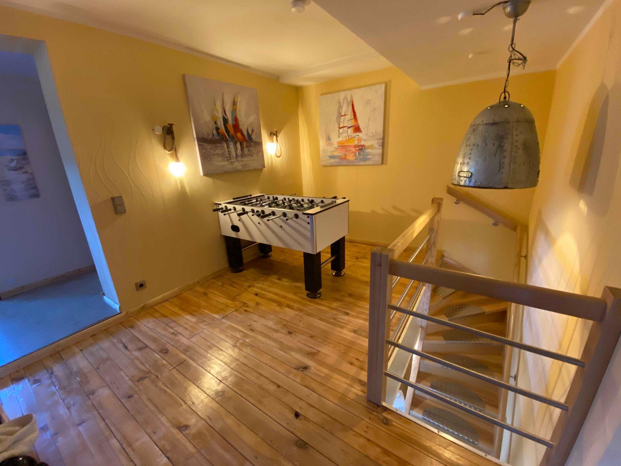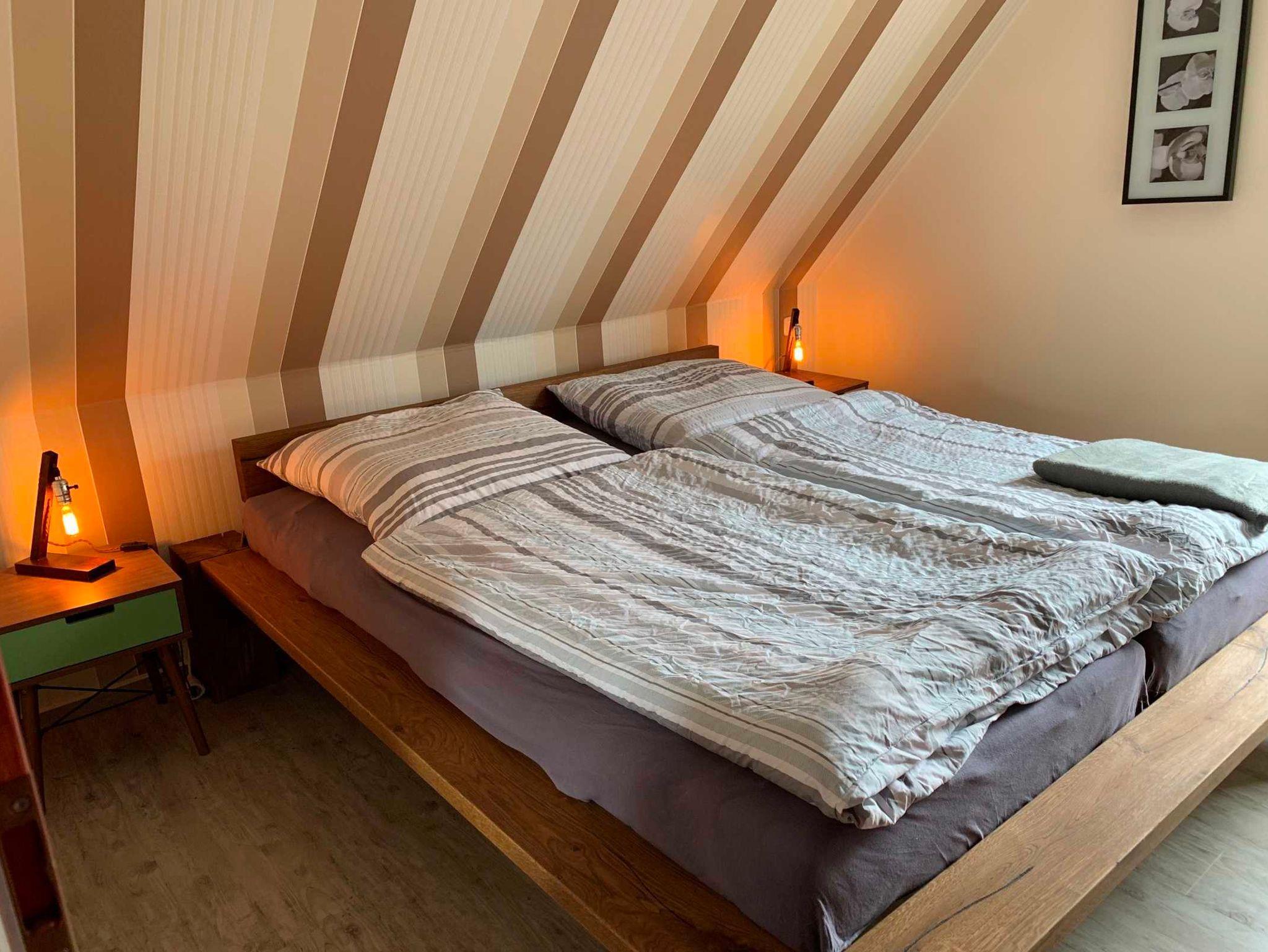 Das Ferienhaus( bis 6 Personen mit 3 Schlafzimmern) besteht aus Erdgeschoss und Obergeschoss, Terrasse mit Grill und Sitzfläche im Garten. Im Untergeschoss befindet sich das Wohnzimmer mit Essbereich und Kamin, 1 separate voll eingerichtete Küche, 1 Bad mit Dusche/WC und ein Hauswirtschaftsraum mit Waschmaschine und Trockner. Ins Obergeschoss führt eine Treppe. Im Obergeschoss befinden sich alle 3 Schlafzimmer( 2 x Doppelbetten, 1 x 2 Einzelbetten, die auch zusammengestellt werden können) und das große Bad mit ebenerdiger Dusche, freistehender Wanne und WC. Die Ausstattung des gesamten Hauses ist hochwertig, sowie modern und komfortabel. Bettwäsche/Handtücher sind im Preis enthalten, genau wie alle Nebenkosten, wie Strom , Wasser, Heizung, Holz für Kamin. Der Preis für die Endreinigung beträgt 150,00 € und ist vor Ort in Bar zu entrichten (bitte von der Restzahlung abziehen). W-LAN ist kostenfrei vorhanden.
