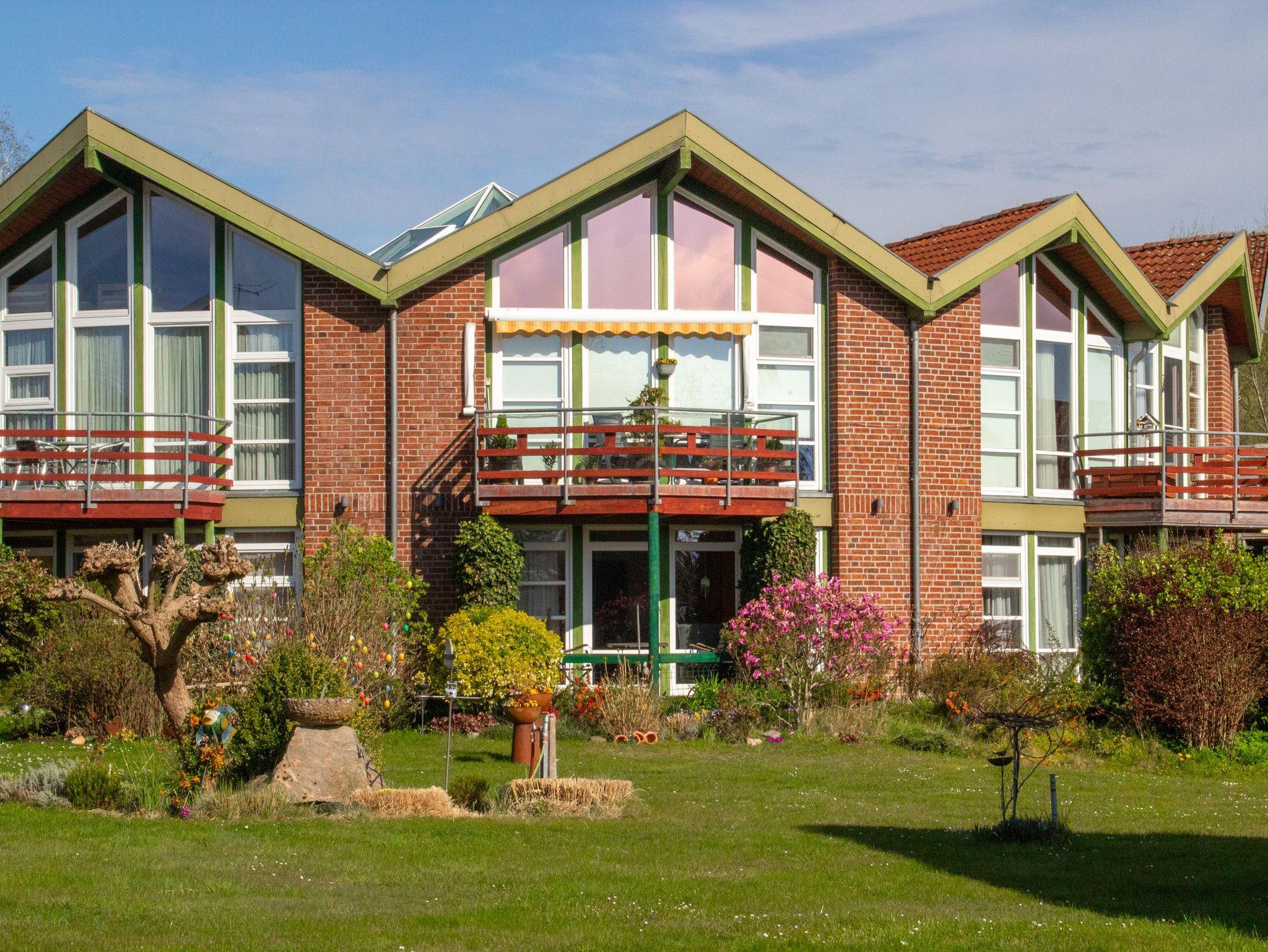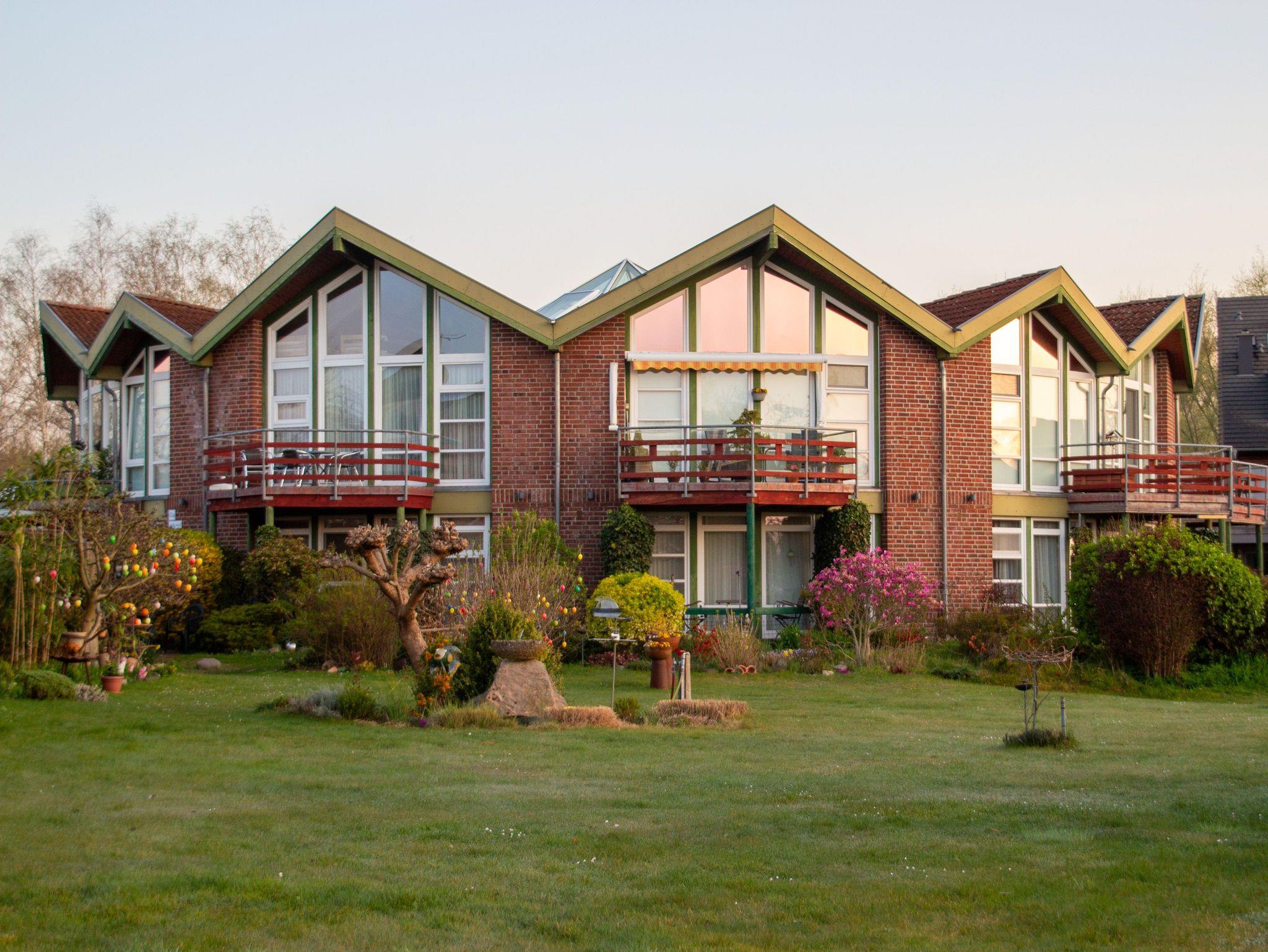 Der Zugang erfolgt bequem über einen gemeinschaftlichen, schwellenarmen Eingangsbereich. Rundherum bietet dir der Ferienpark eine Vielzahl an Freizeitmöglichkeiten: Spielplätze, Tischtennisplatten, Kicker, Beachvolleyball, Riesenschach, ein Kaninchengehege und weitläufige Rasenflächen zum Entspannen. Fahrräder, Bollerwagen, SUPs und führerscheinfreie Boote kannst du direkt vor Ort mieten, und auch Angelkarten für den Plauer See erhältst du an der Rezeption. Ein liebevoll gestalteter Saunabereich kann exklusiv gebucht werden.
