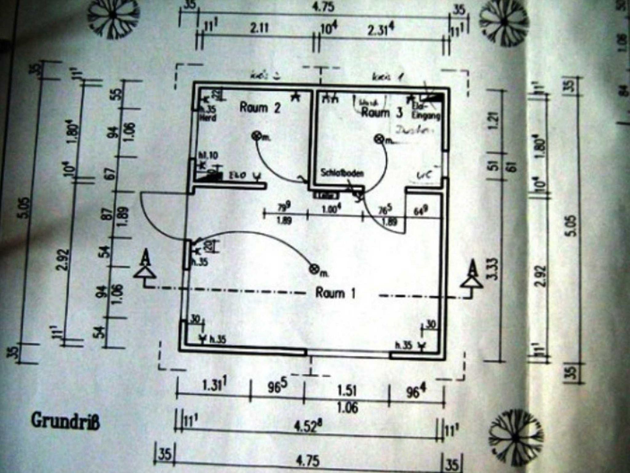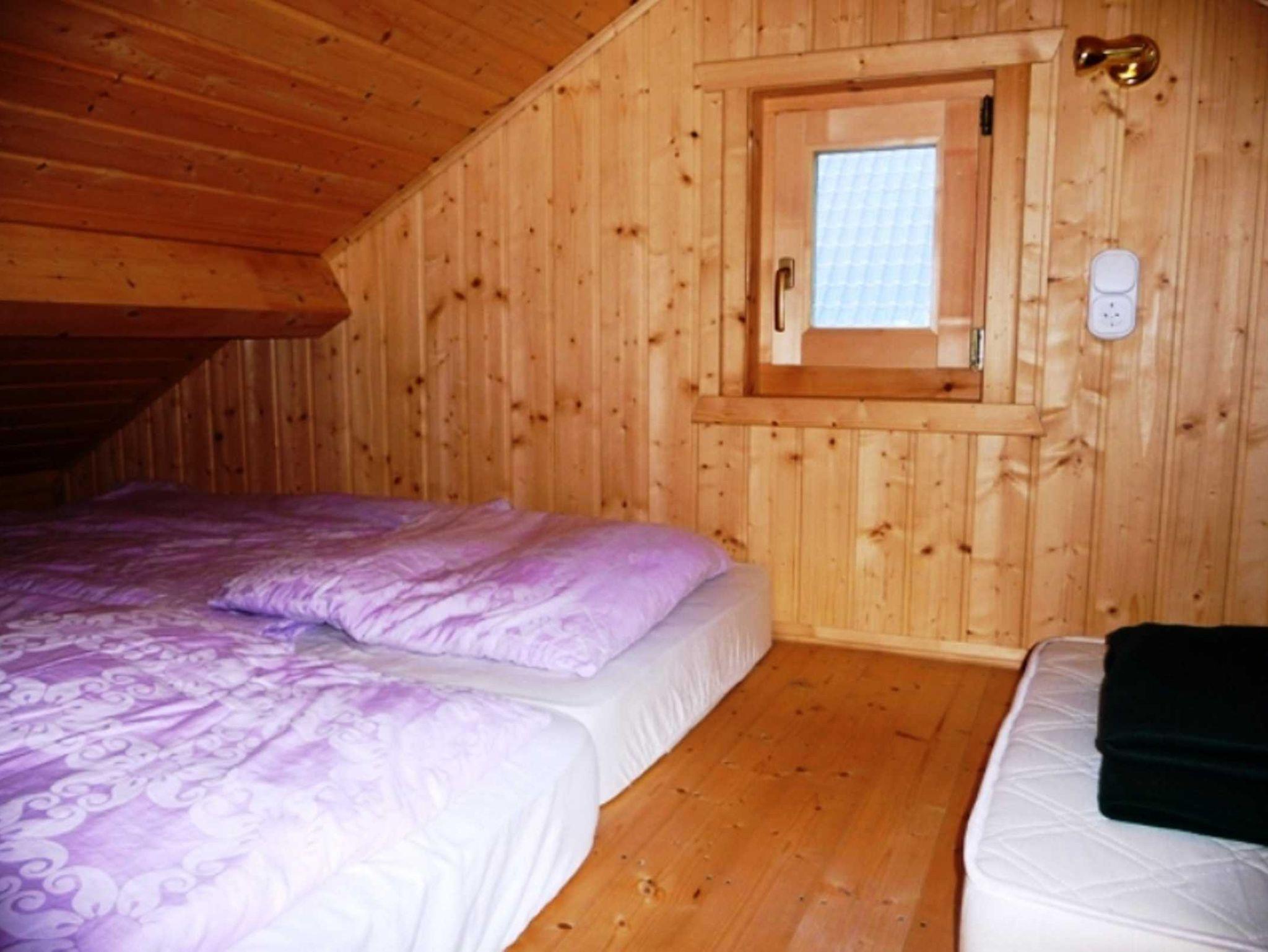 Ferienhaus bis 3 Personen, Wohnbereich mit Essecke, Schlafboden mit 3 Matratzen, sep. Küche, Dusche/WC.