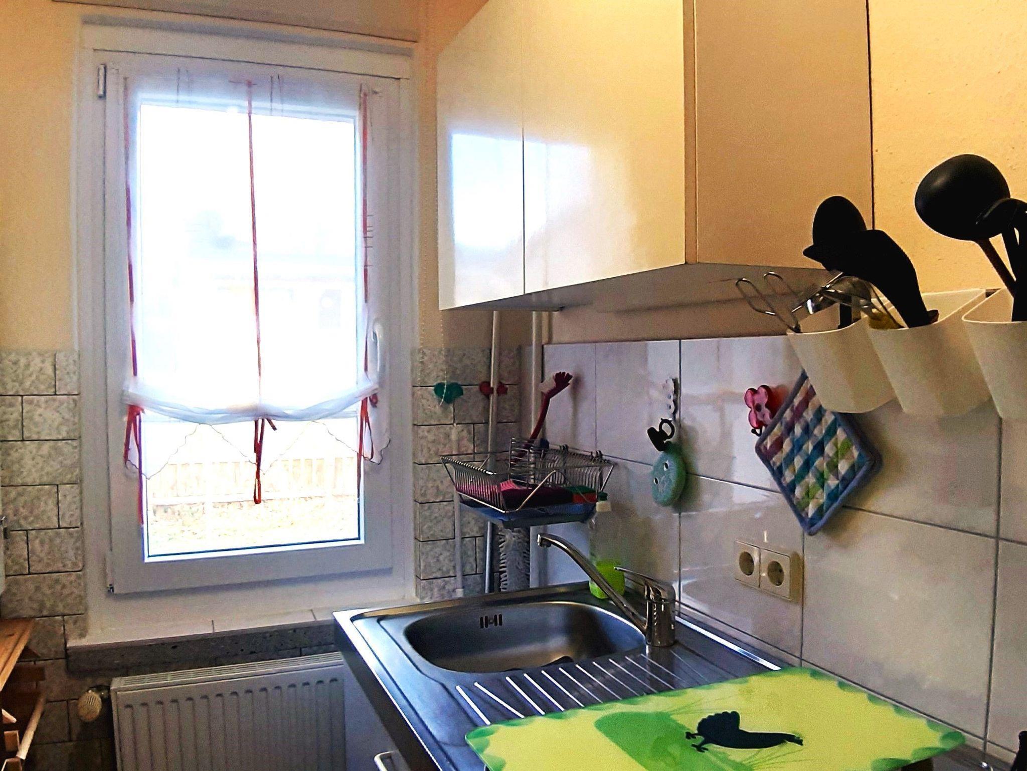 In der Küche befinden sich ein 2-Plattenkocher, ein kleiner Backofen, ein Kühlschrank mit Gefrierfach, eine Mikrowelle, eine Kaffeemaschine, ein Wasserkocher, ein Eierkocher, ein Toaster sowie ein Handmixer.