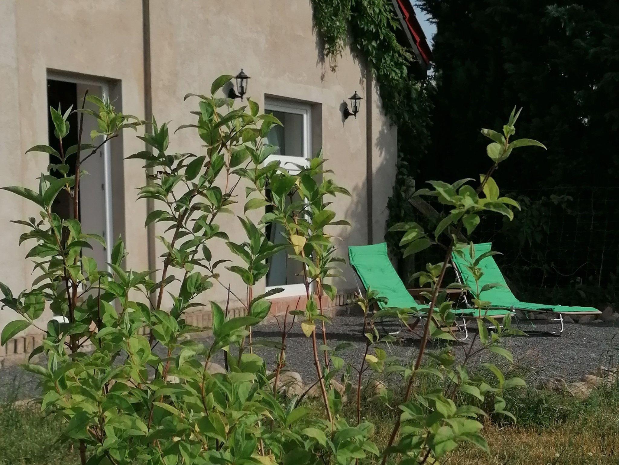 Auf der eigenen Terrasse mit weiter und freier Sicht auf Wald und Feld können Sie dem Vogelgezwitscher und den Rufen von Kranich, Reh und Fuchs lauschen.