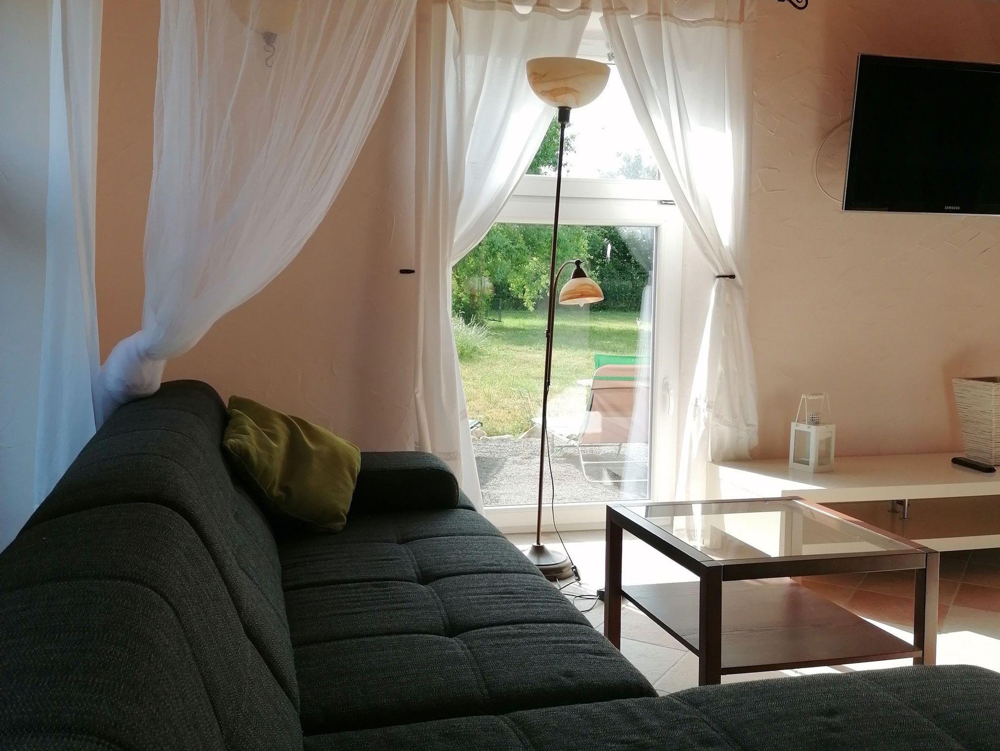 Frische Landluft, Ruhe, Tiere und viel Platz bietet die wunderschöne Ferienwohnung mit mediterranem Flair. Auf dem familiär geführten Anwesen leben Hunde, Tauben und Schafe.