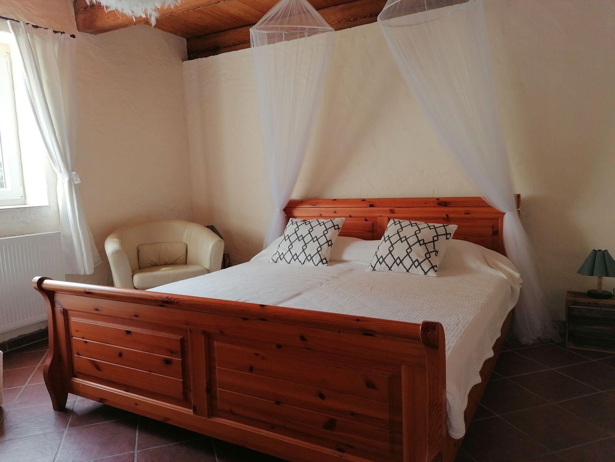 Sie wohnen in einer liebevoll eingerichteten Ferienwohnung, die aus dem über 100 Jahre alten Stallgebäude mit aufwendig erhaltener Holzarchitektur entstanden ist.