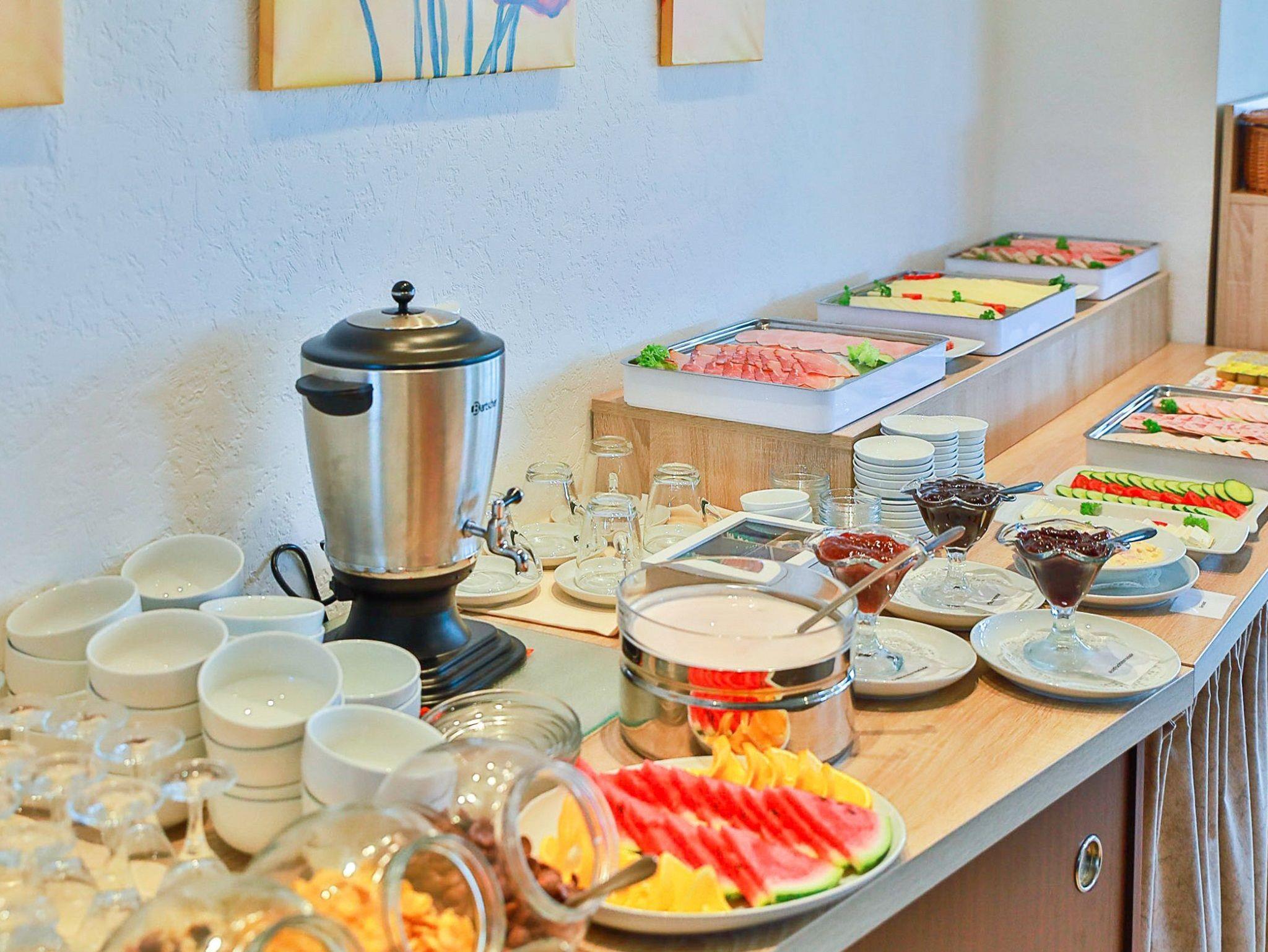 Ferienhausgästen bieten wir ein reichhaltiges Frühstücksbüfett an, für 12,50 Euro pro Person/Tag, Kinder zahlen pro Altersjahr 0,80 Euro.